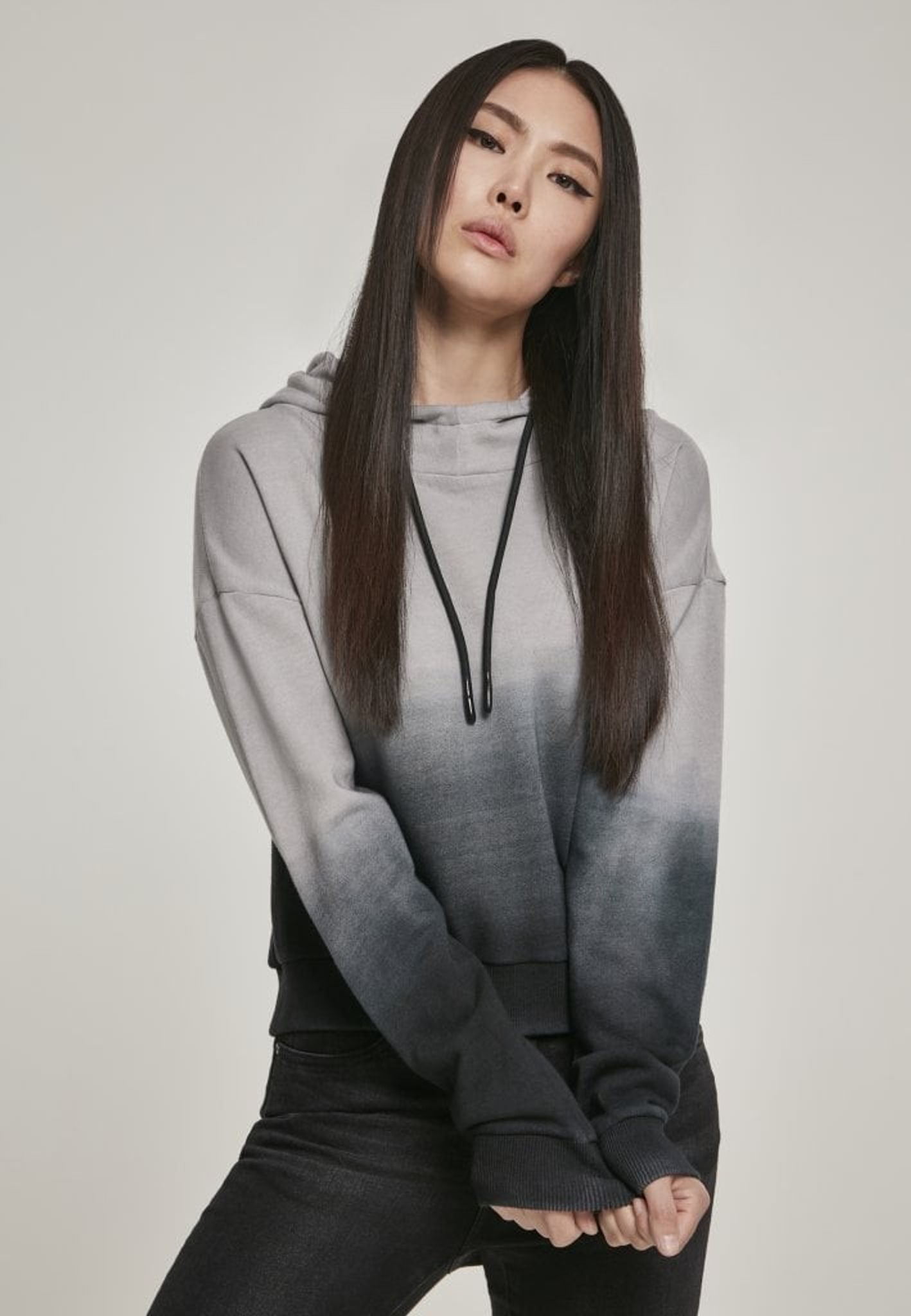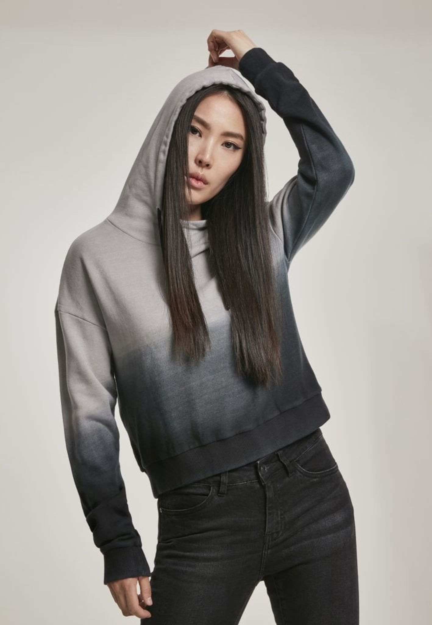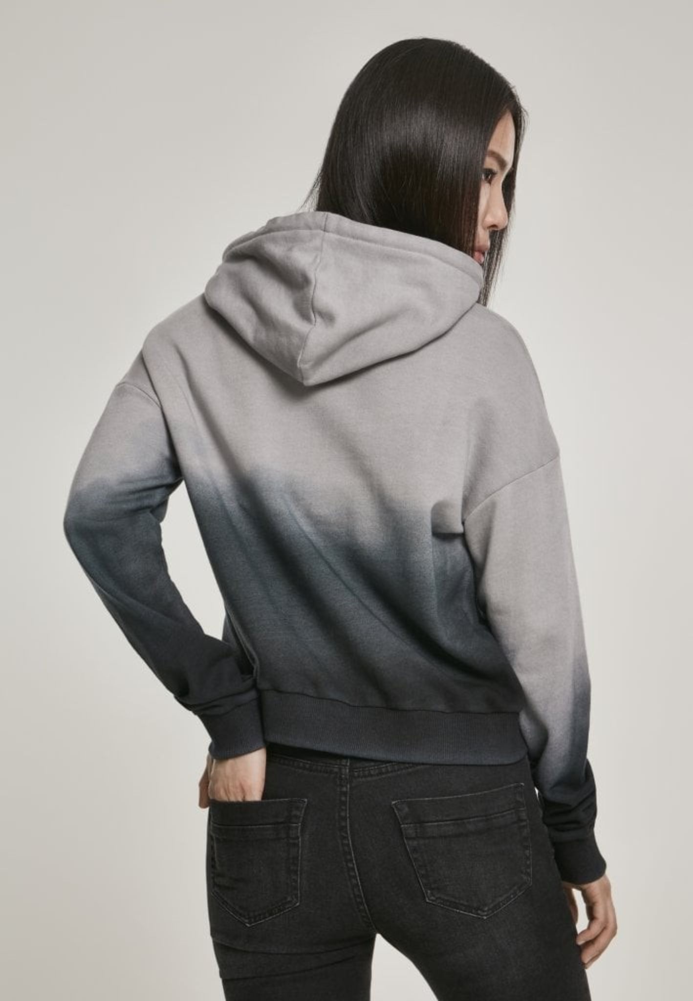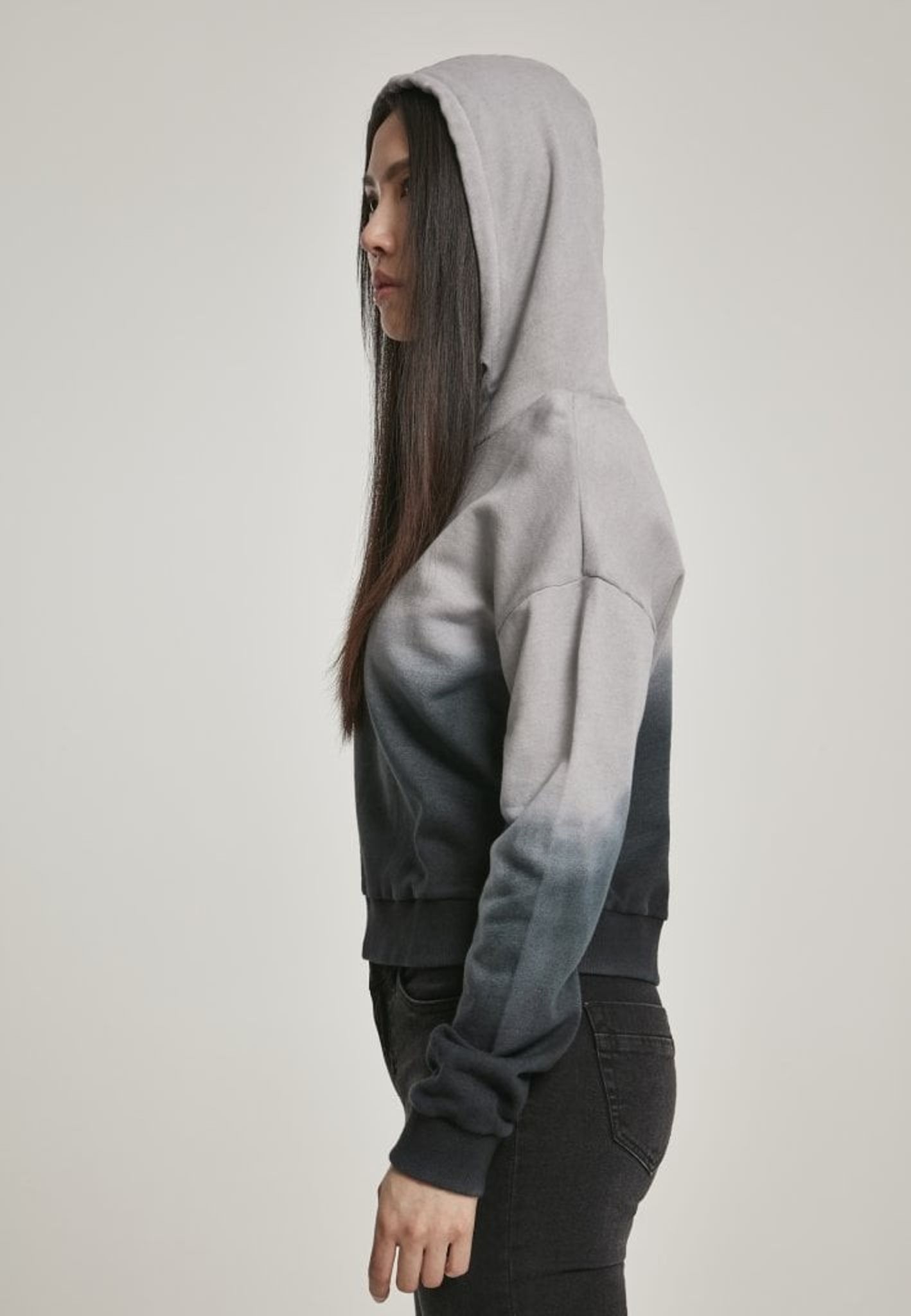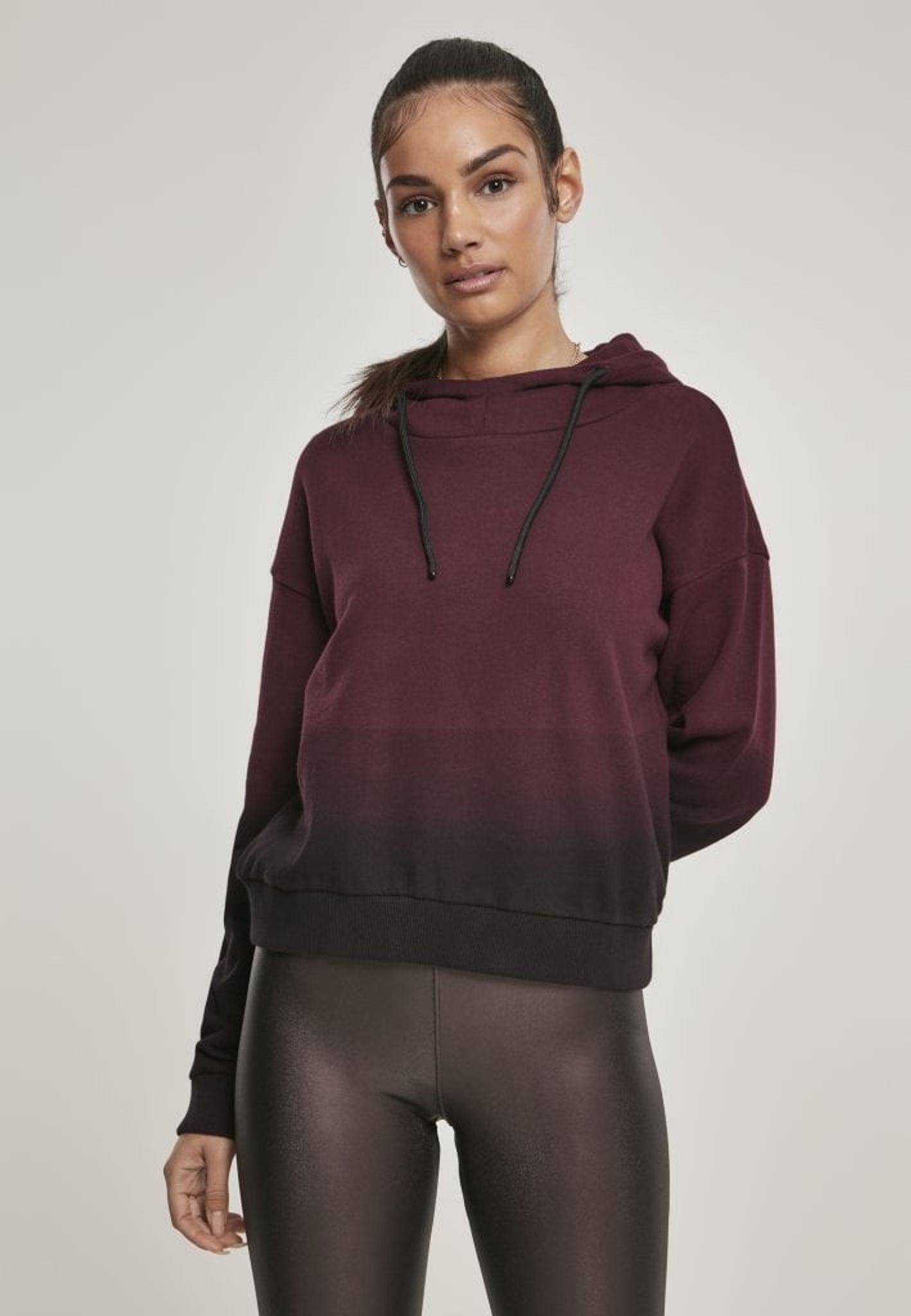 Dette er en hættetrøje med en speciel farvelægning. Hættetrøje fås i nuancer af grå og bordeaux. Farven går fra lysegrå øverst og bliver mørkere grå / sort i bunden. Den burgundertrøje bliver gradvis mørkere i bunden for at blive sort i manchetterne.