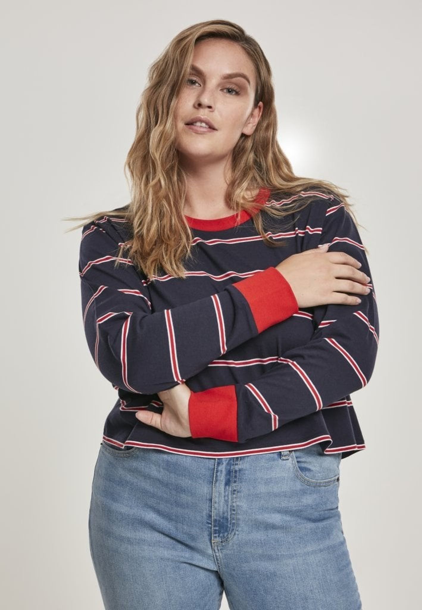 Kort sweater med striber