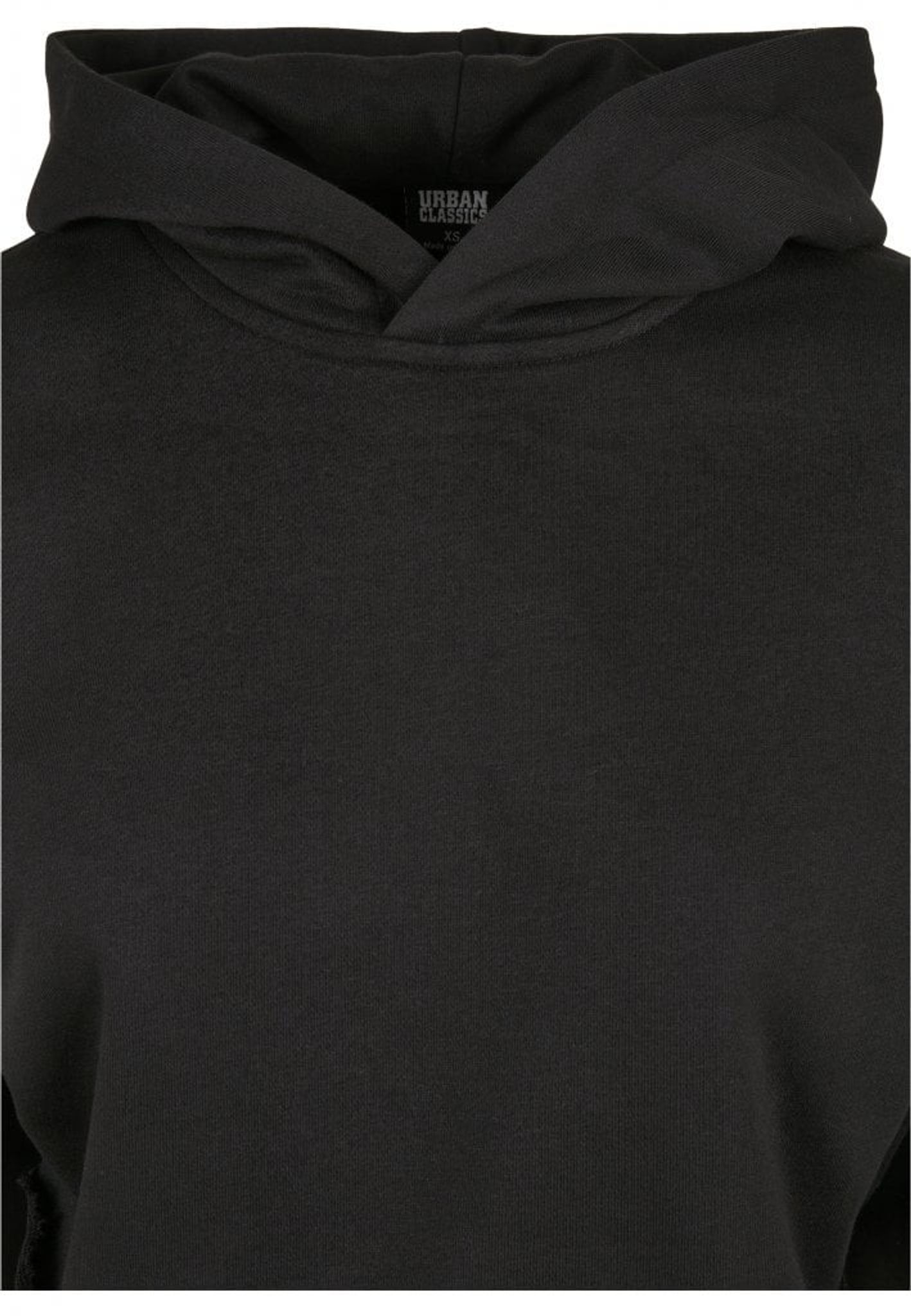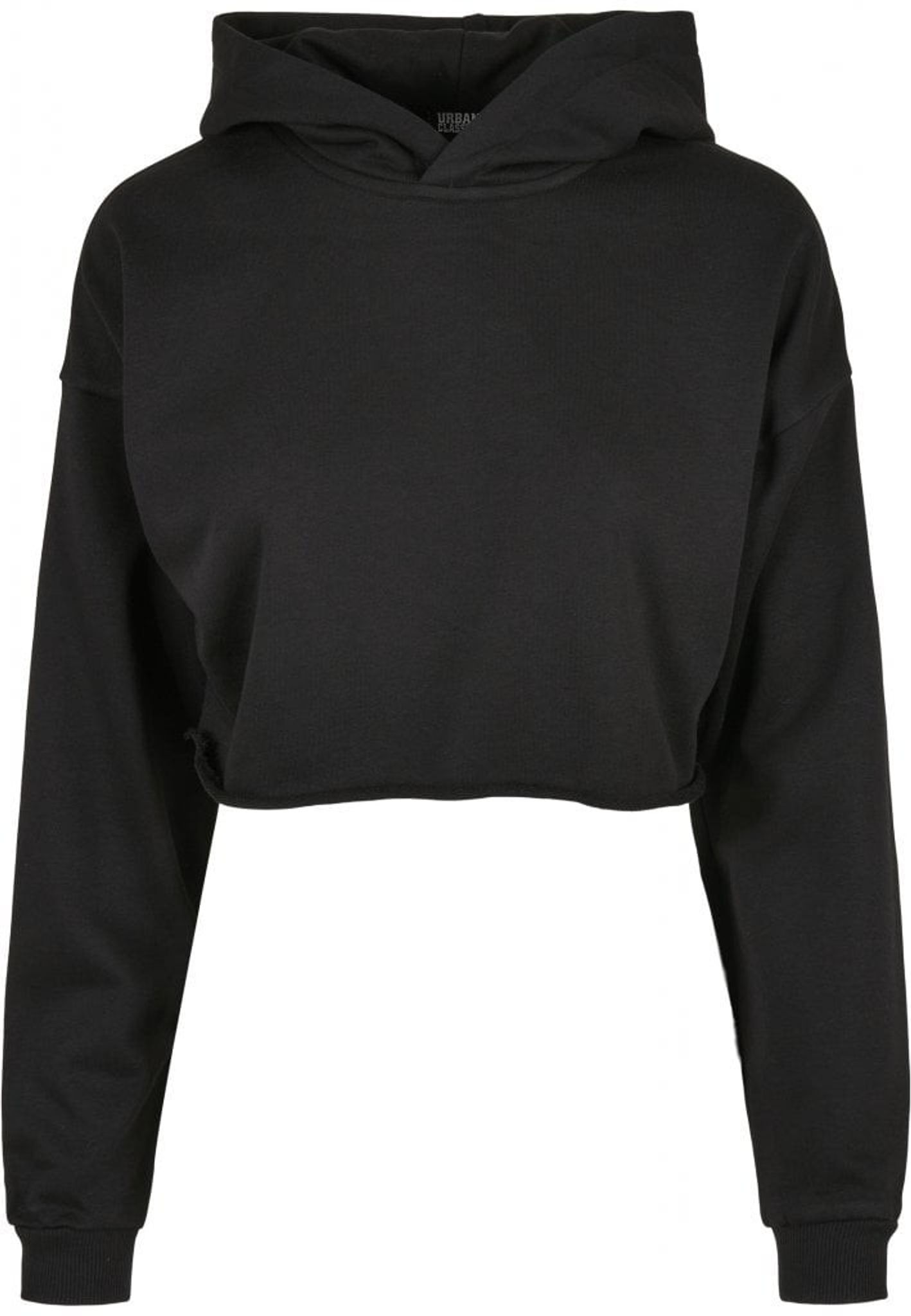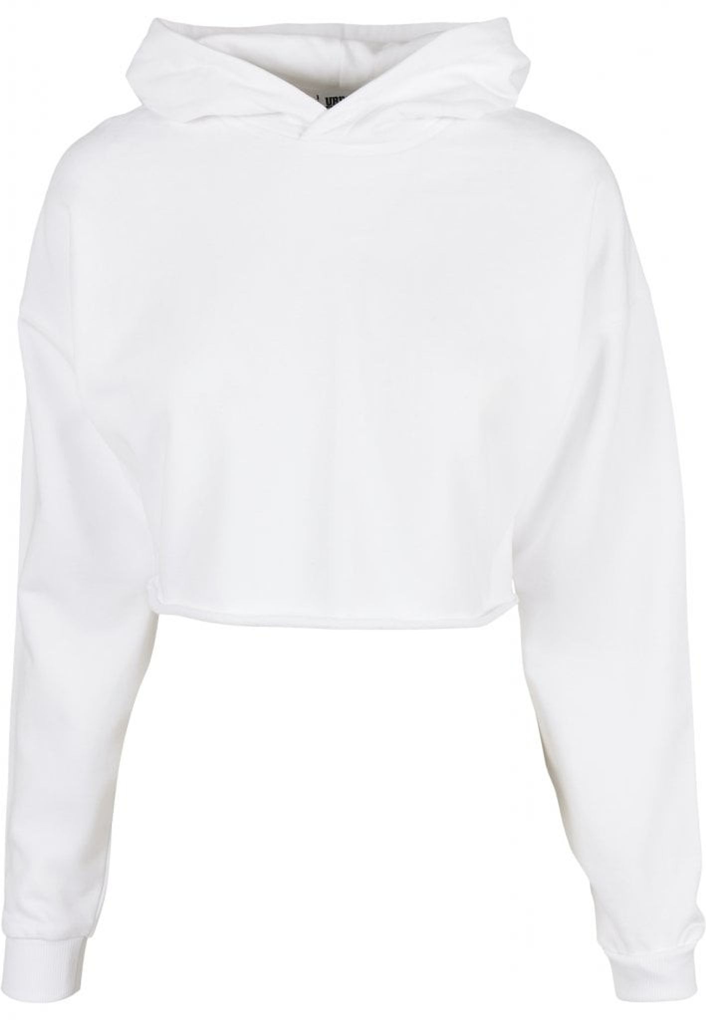 Sweateren har skåret arme med en manchet i enden af armen, og modellen er overdimensioneret.