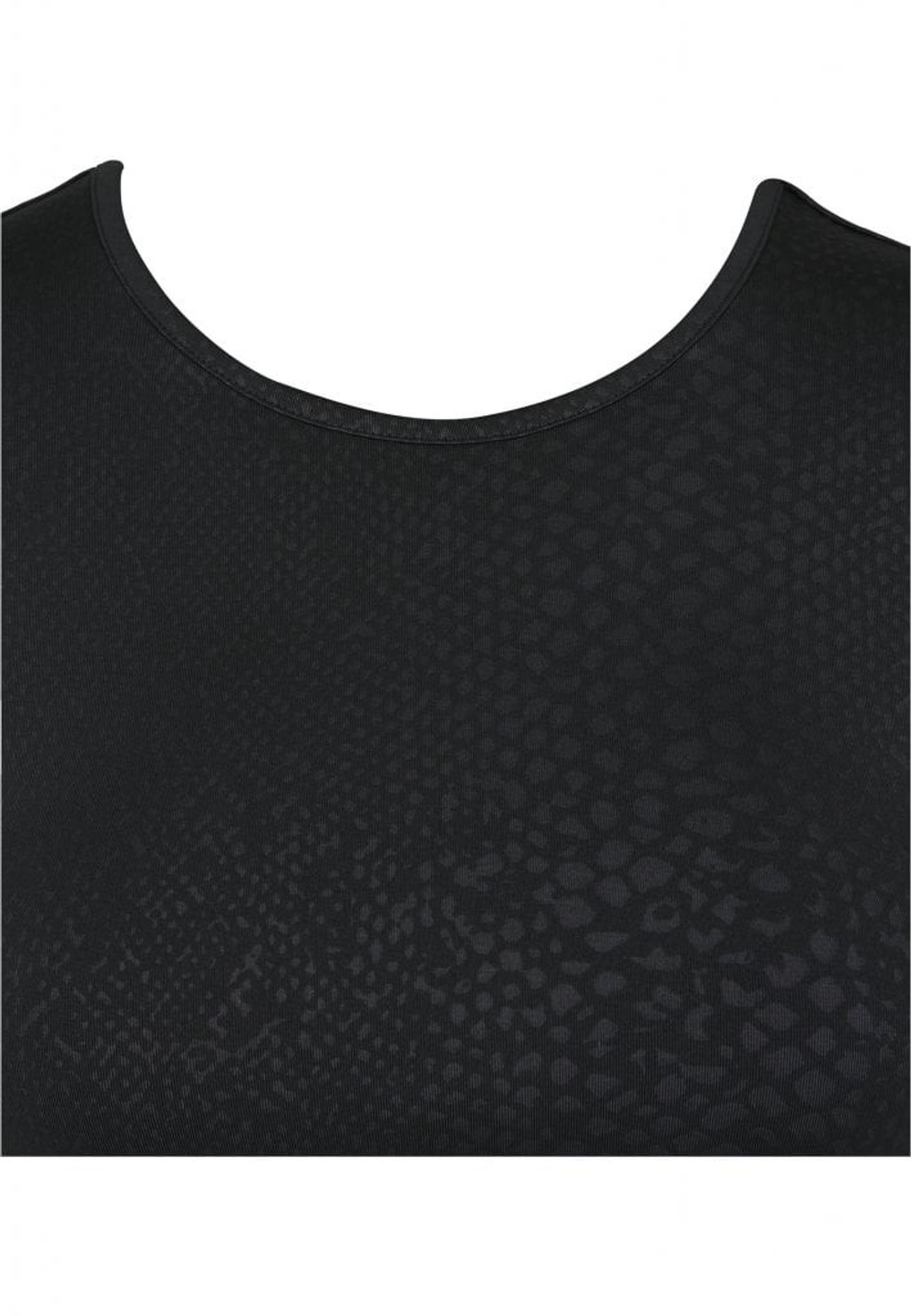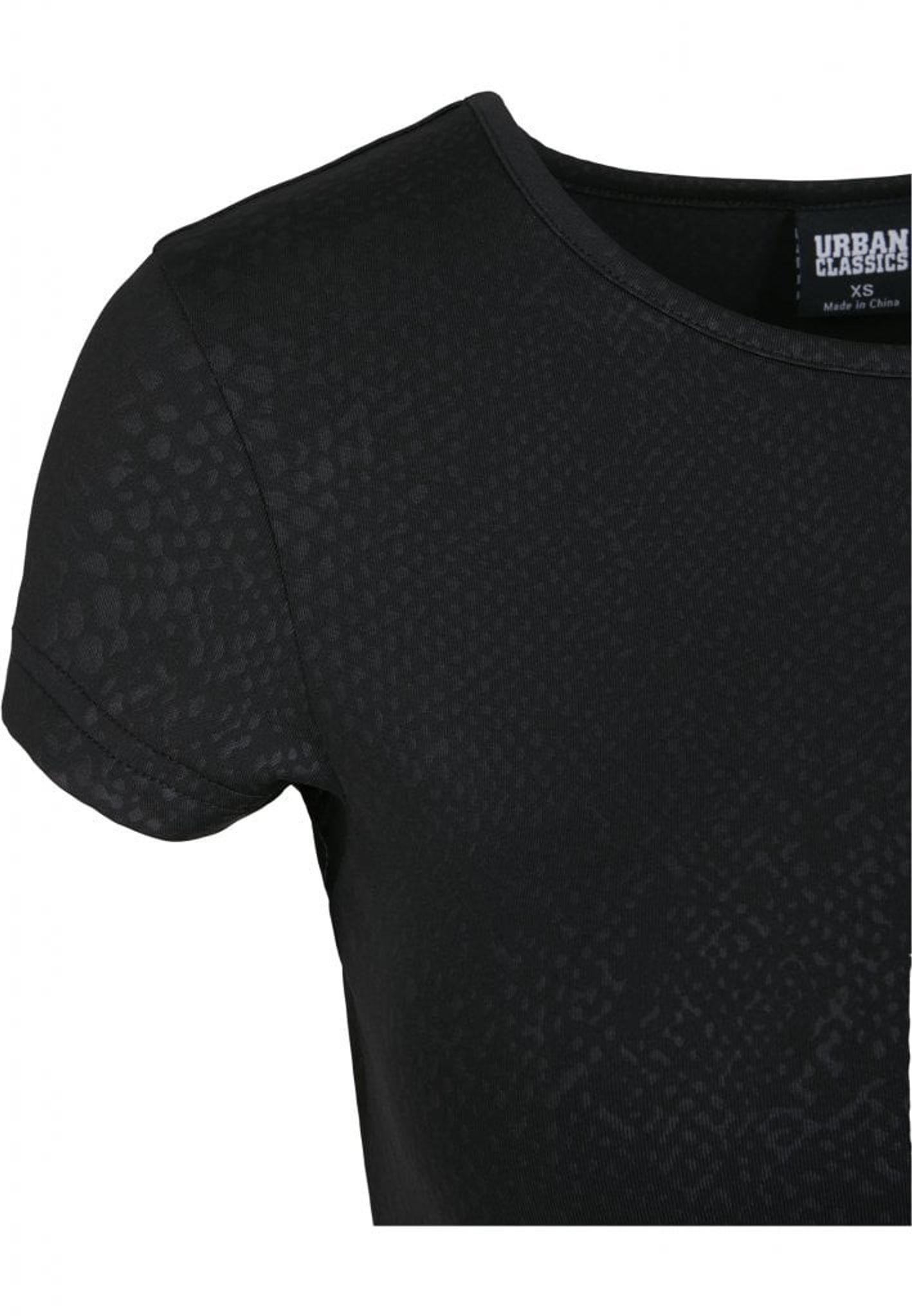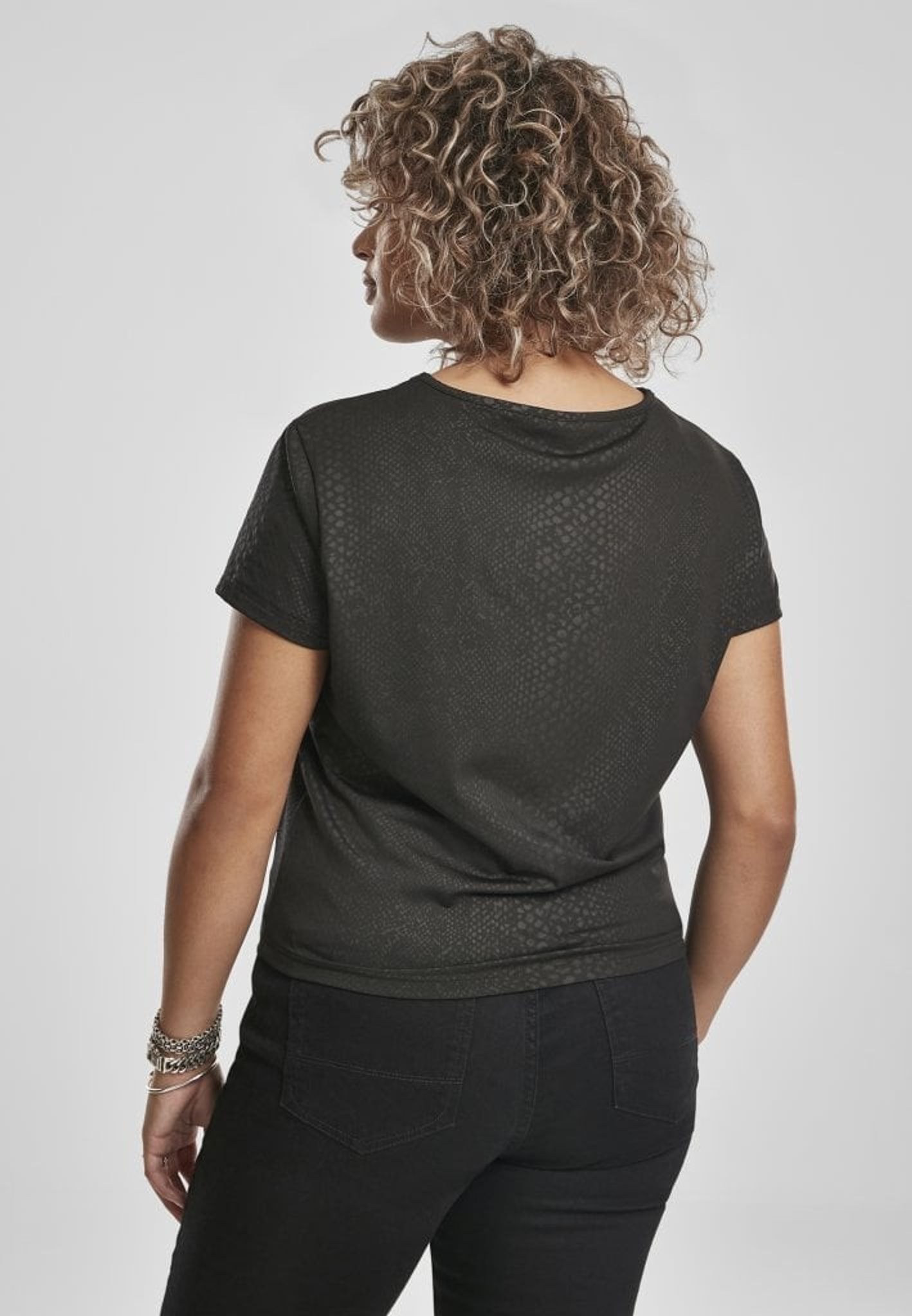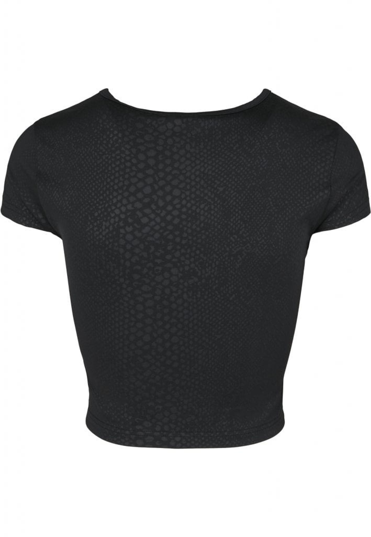 En sort t-shirt i en smuk kombination. En klassisk t-shirt lavet i et smukt sort skinnende stof.