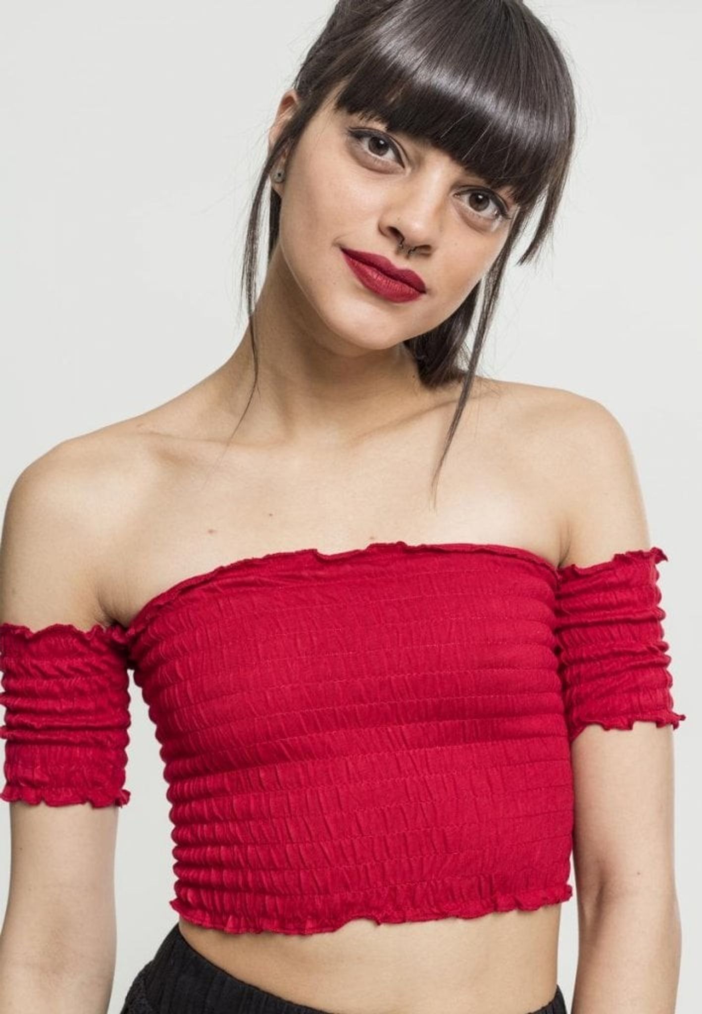 Kort stretch top med bare skuldre