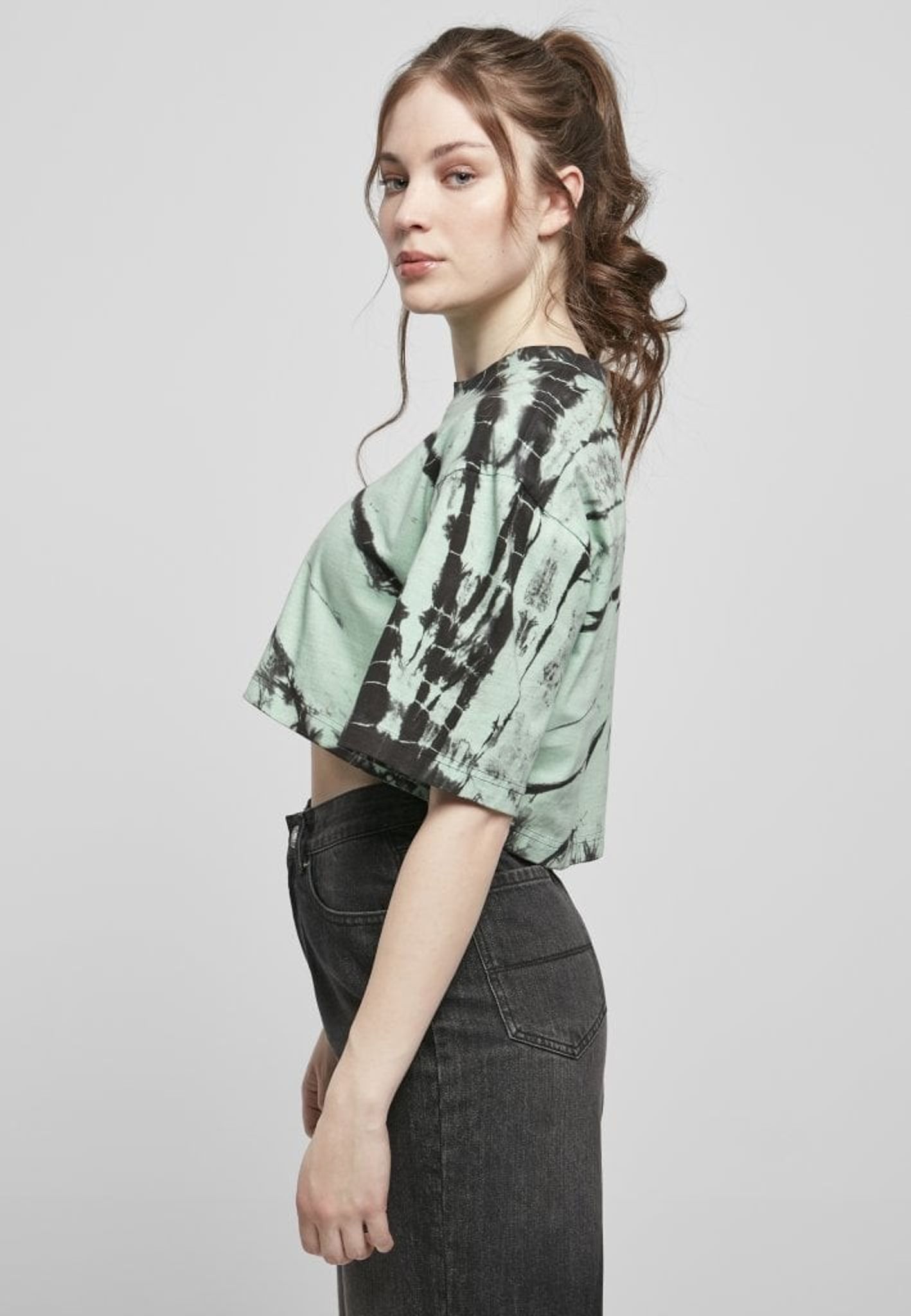 Kort t-shirt oversize og batikmønster