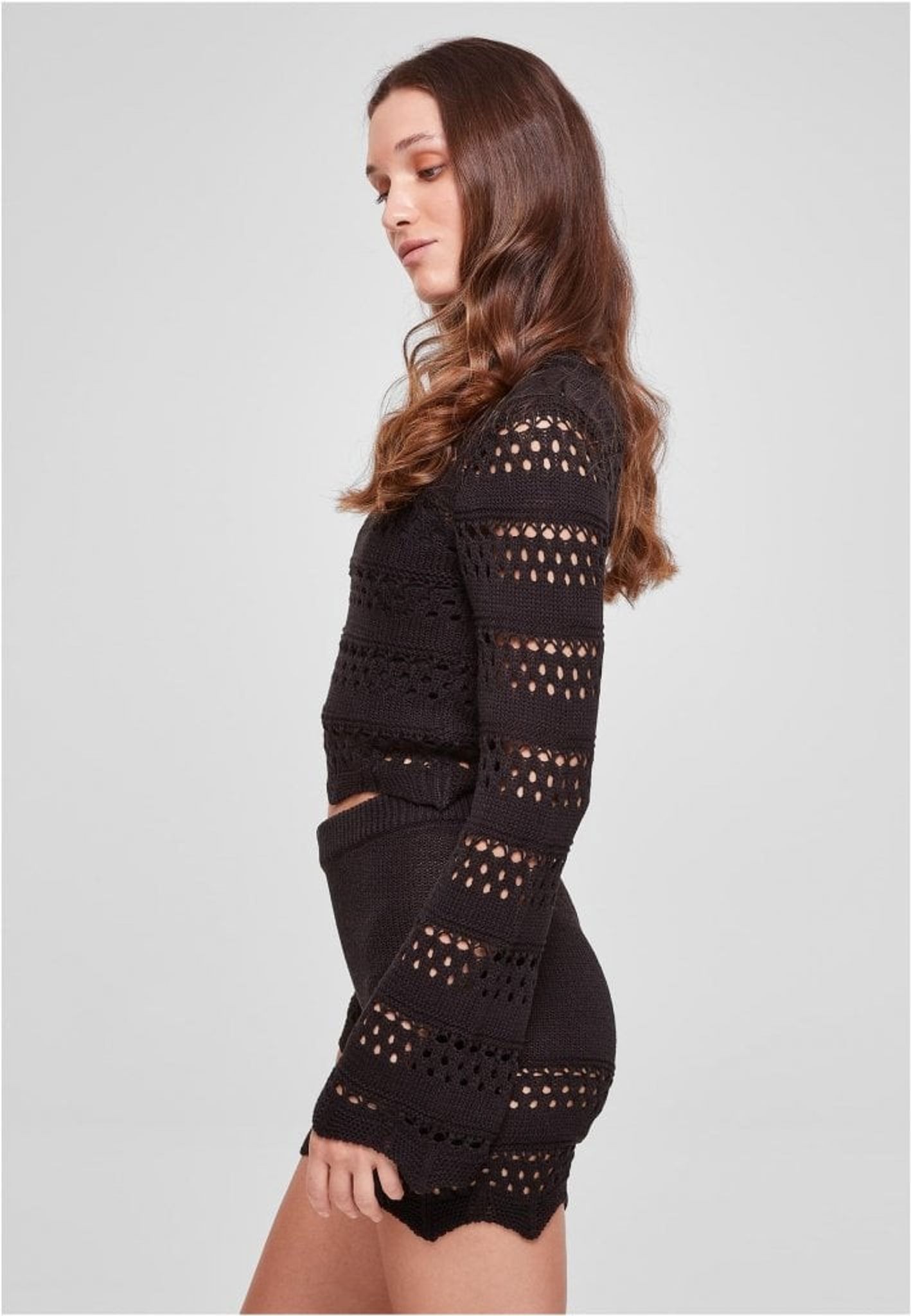 Denne korte trøje til damer viser et smukt strik- og hæklemønster. Den har også trumpetærmer med en kantet kant, en matchende talje og et Converse-designet rundhalsudskæring med markante detaljer. Denne trøje til damer er slim fit.