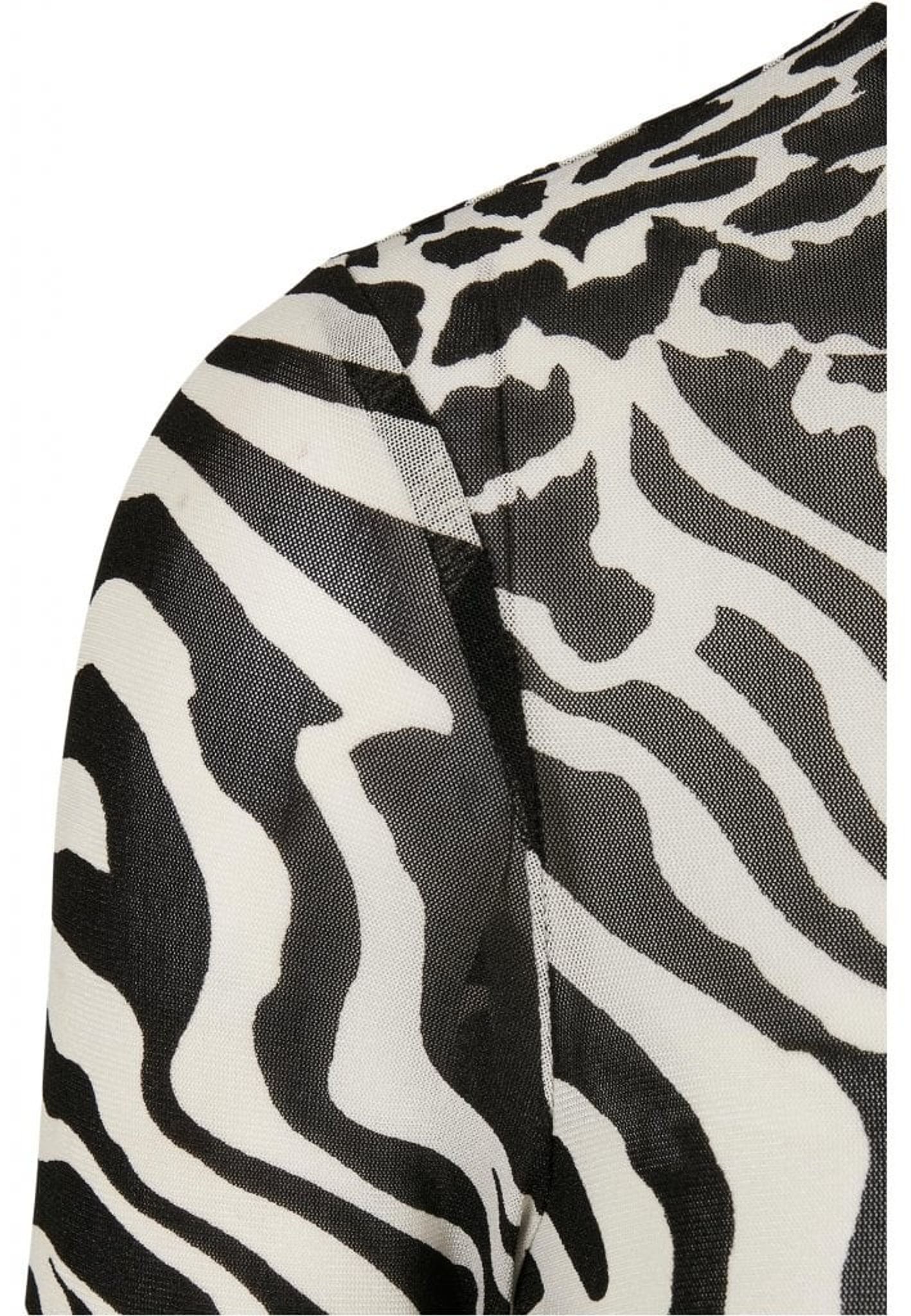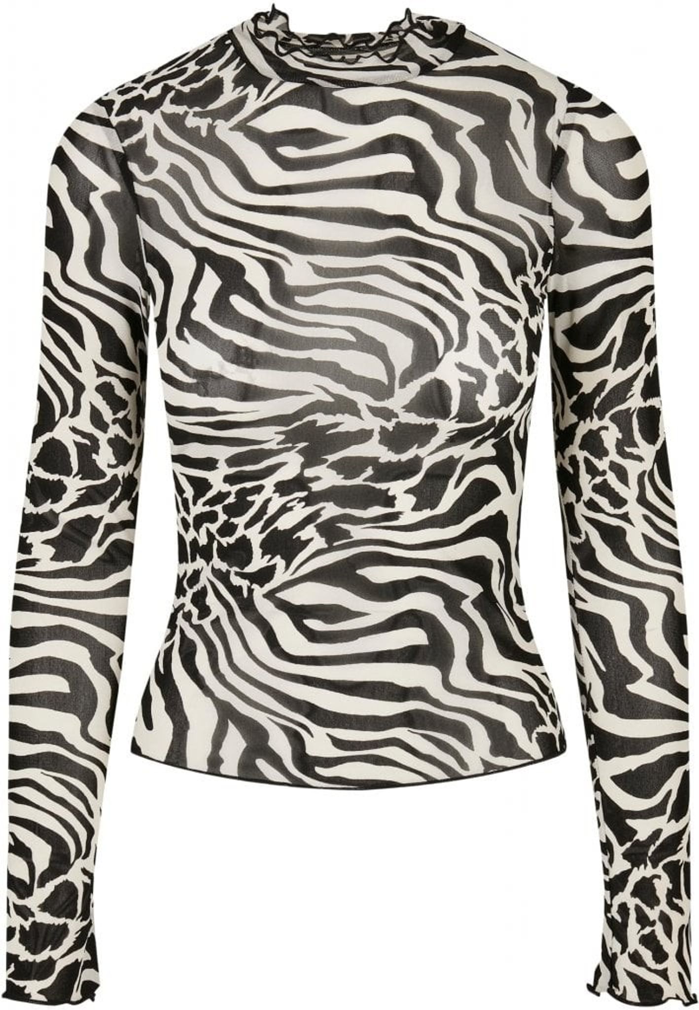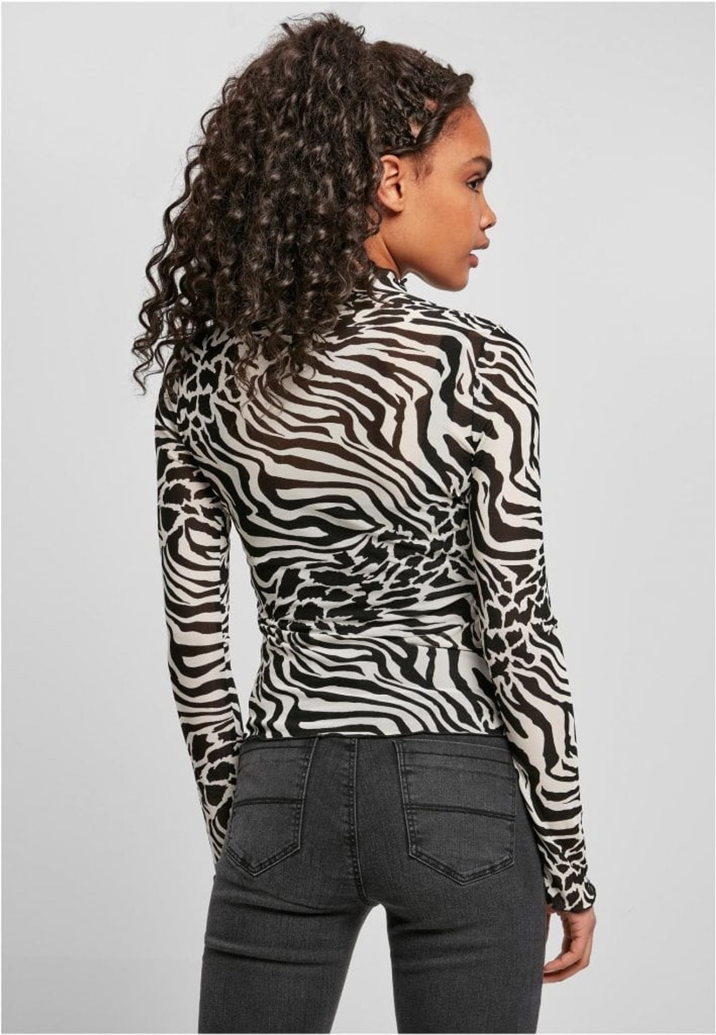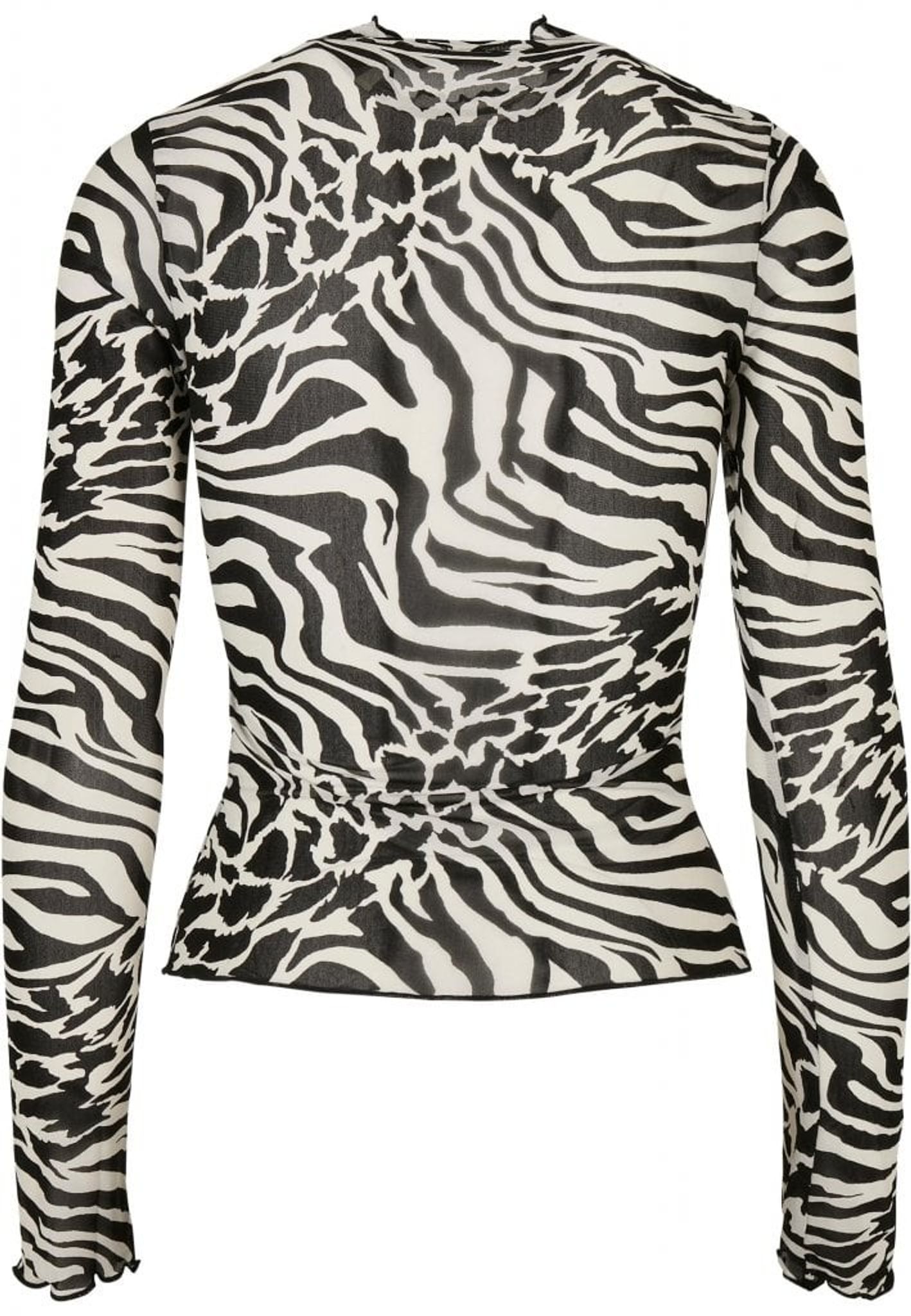 Denne spændende langærmede top er lavet af delvist gennemsigtigt mesh stof, der giver et unikt og dragende look. Allover-printet minder om det dristige og slående mønster af en zebras striber, hvilket giver tøjet et strejf af vildskab.