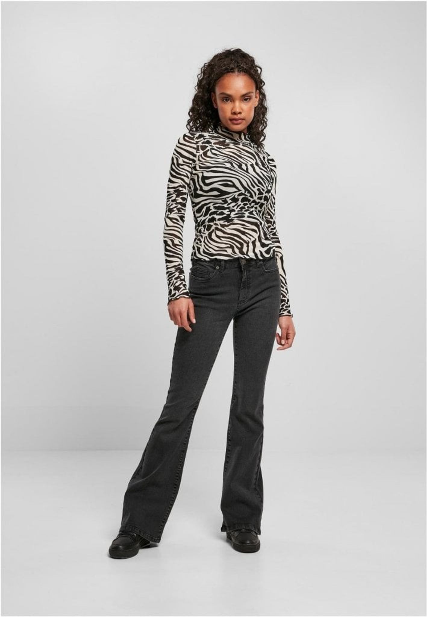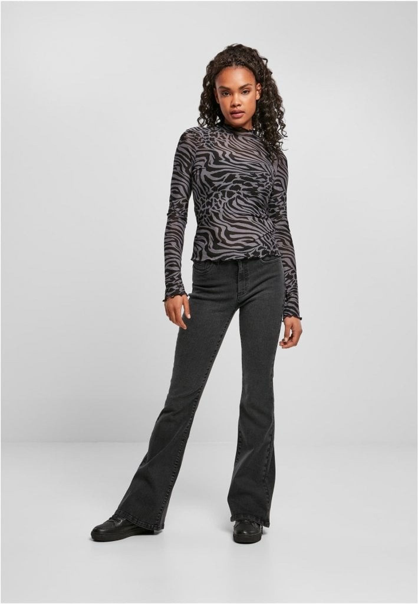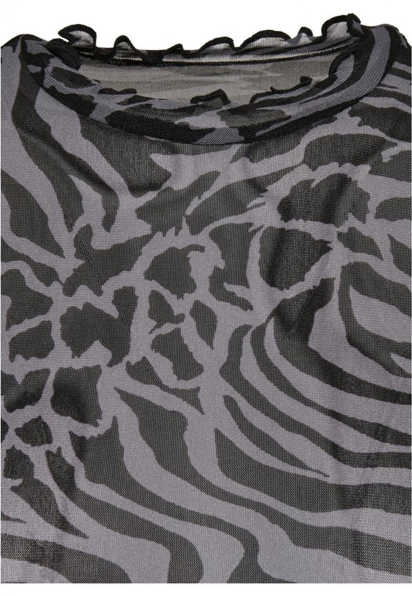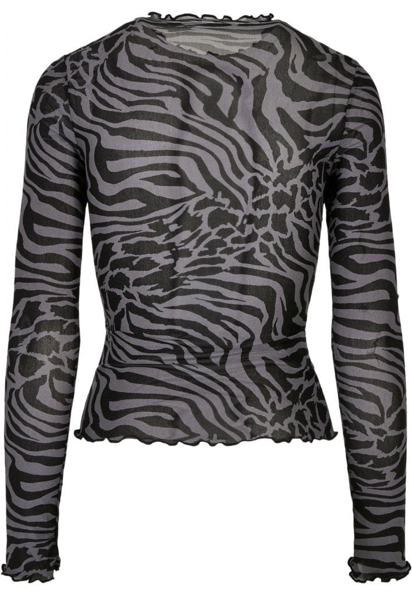 Denne spændende langærmede top er lavet af delvist gennemsigtigt mesh stof, der giver et unikt og dragende look. Allover-printet minder om det dristige og slående mønster af en zebras striber, hvilket giver tøjet et strejf af vildskab.