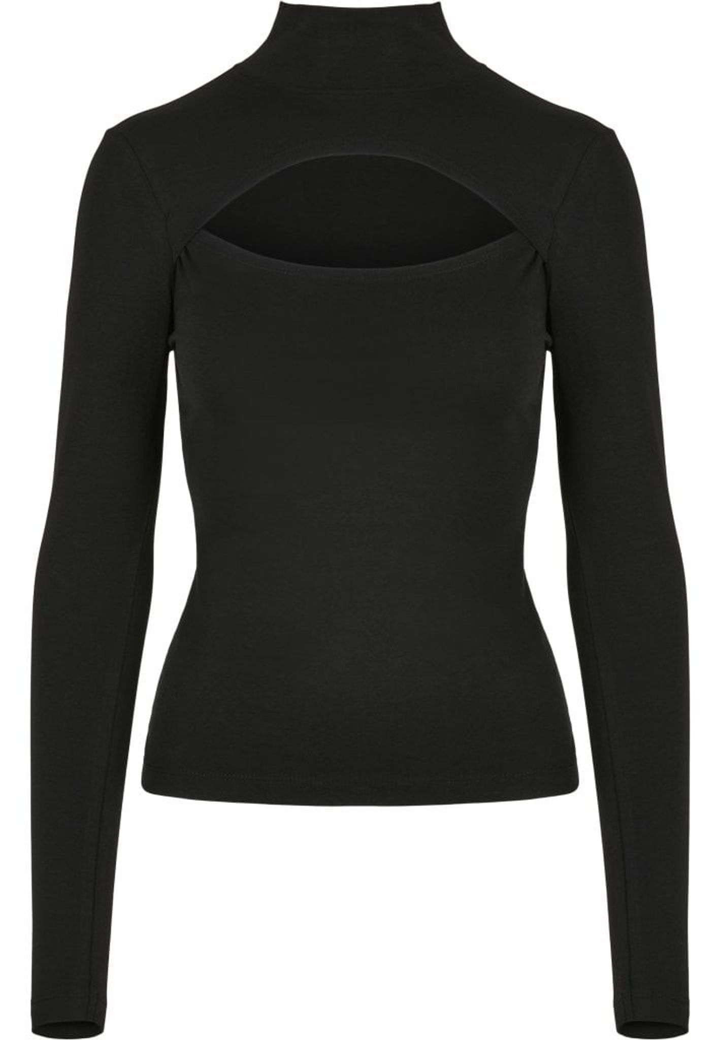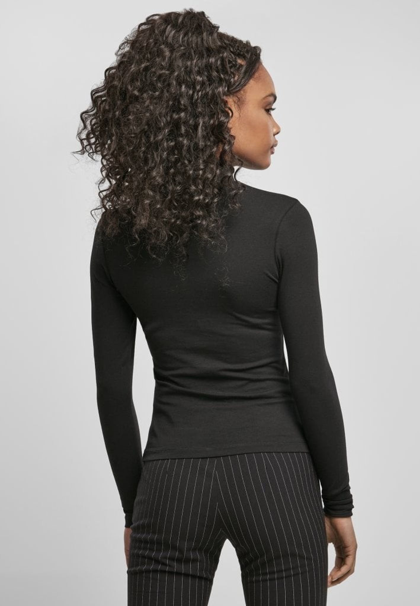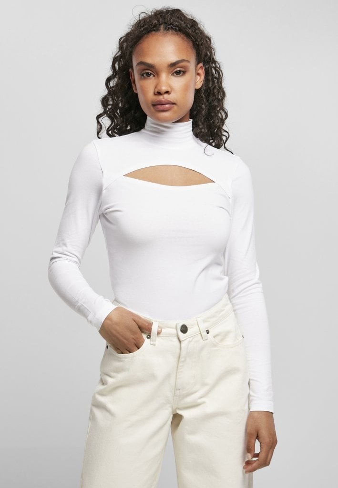Den langærmede top er udstyret med en polokrave og spalte over brystet i form af en lang udskæring.