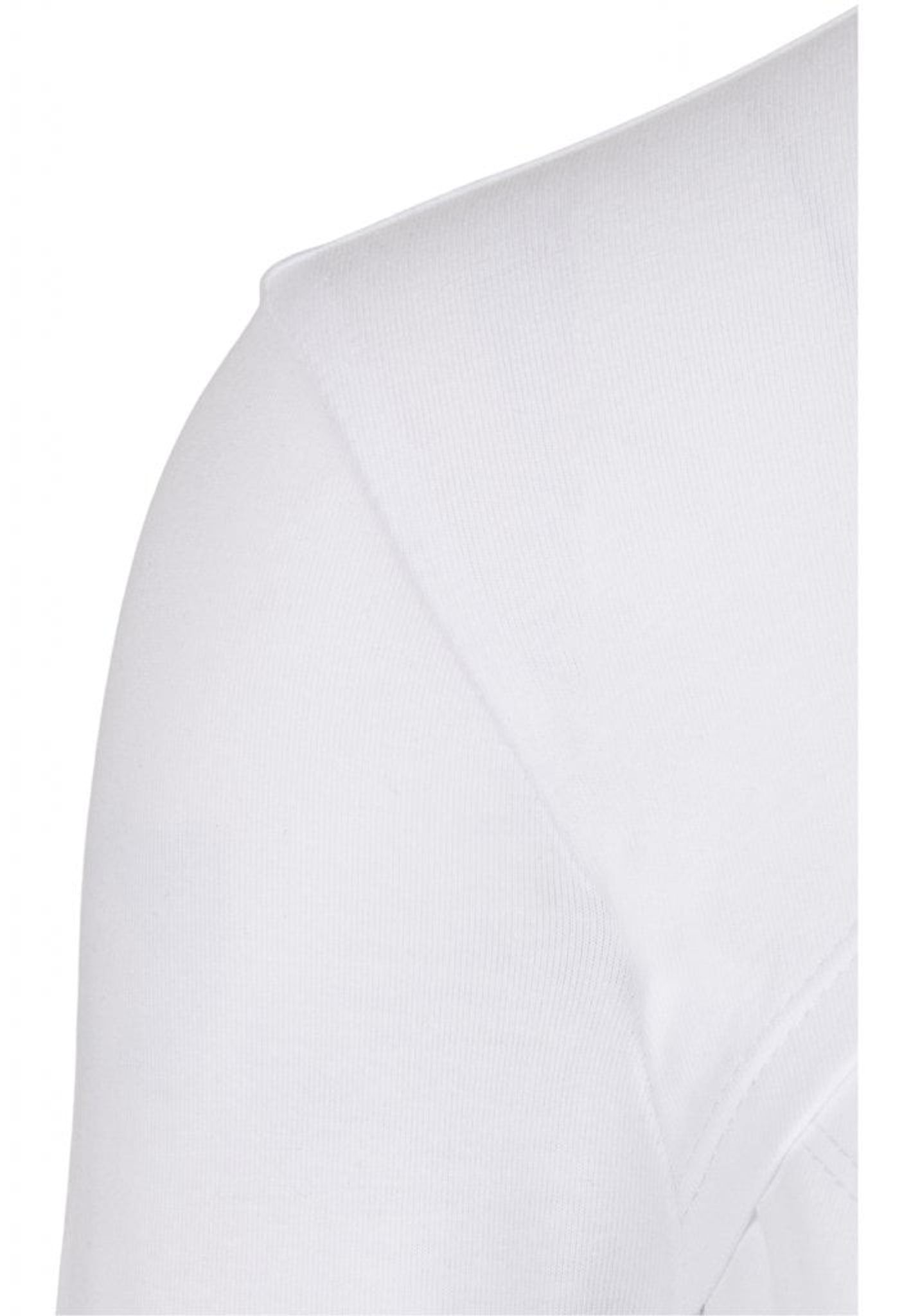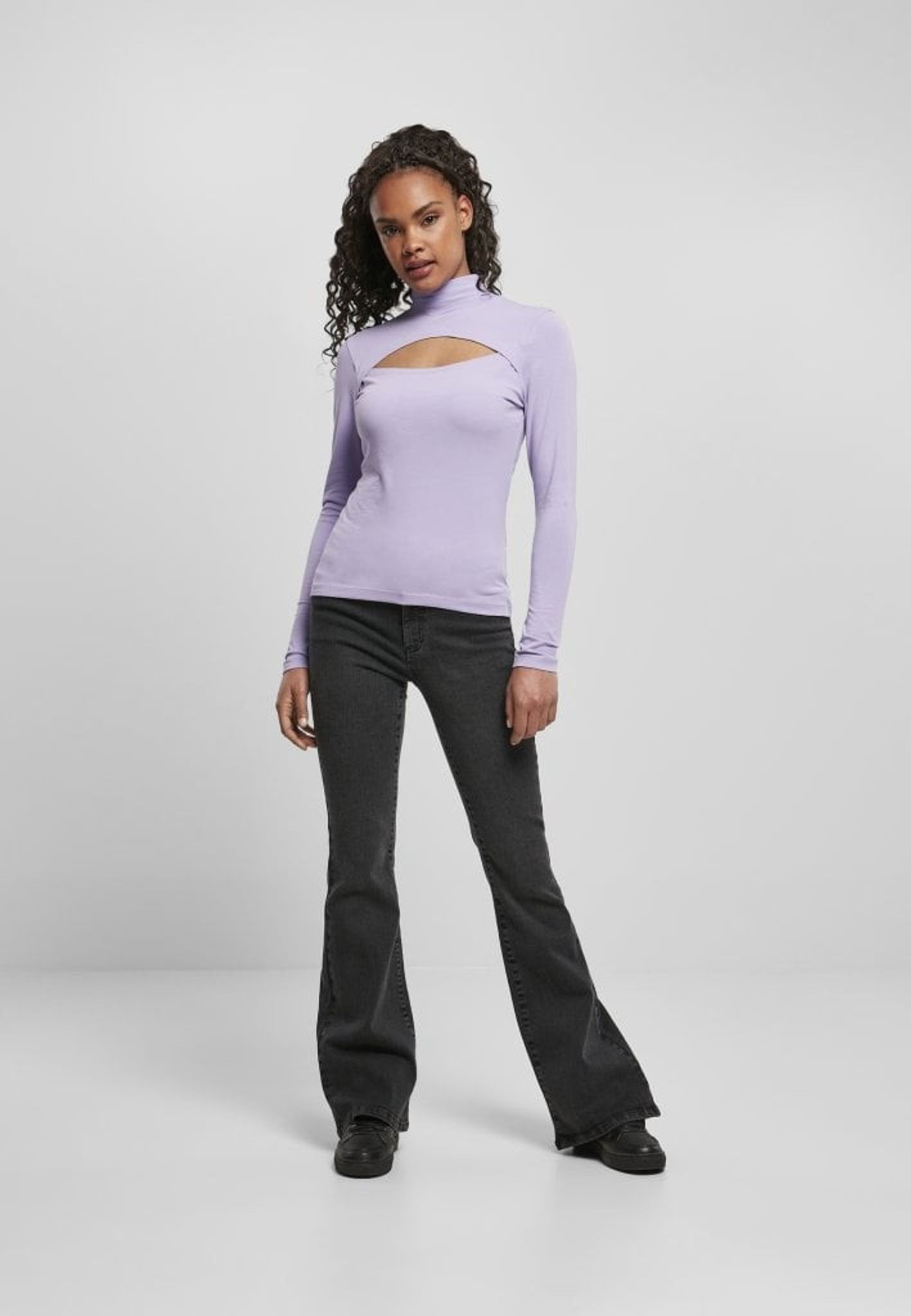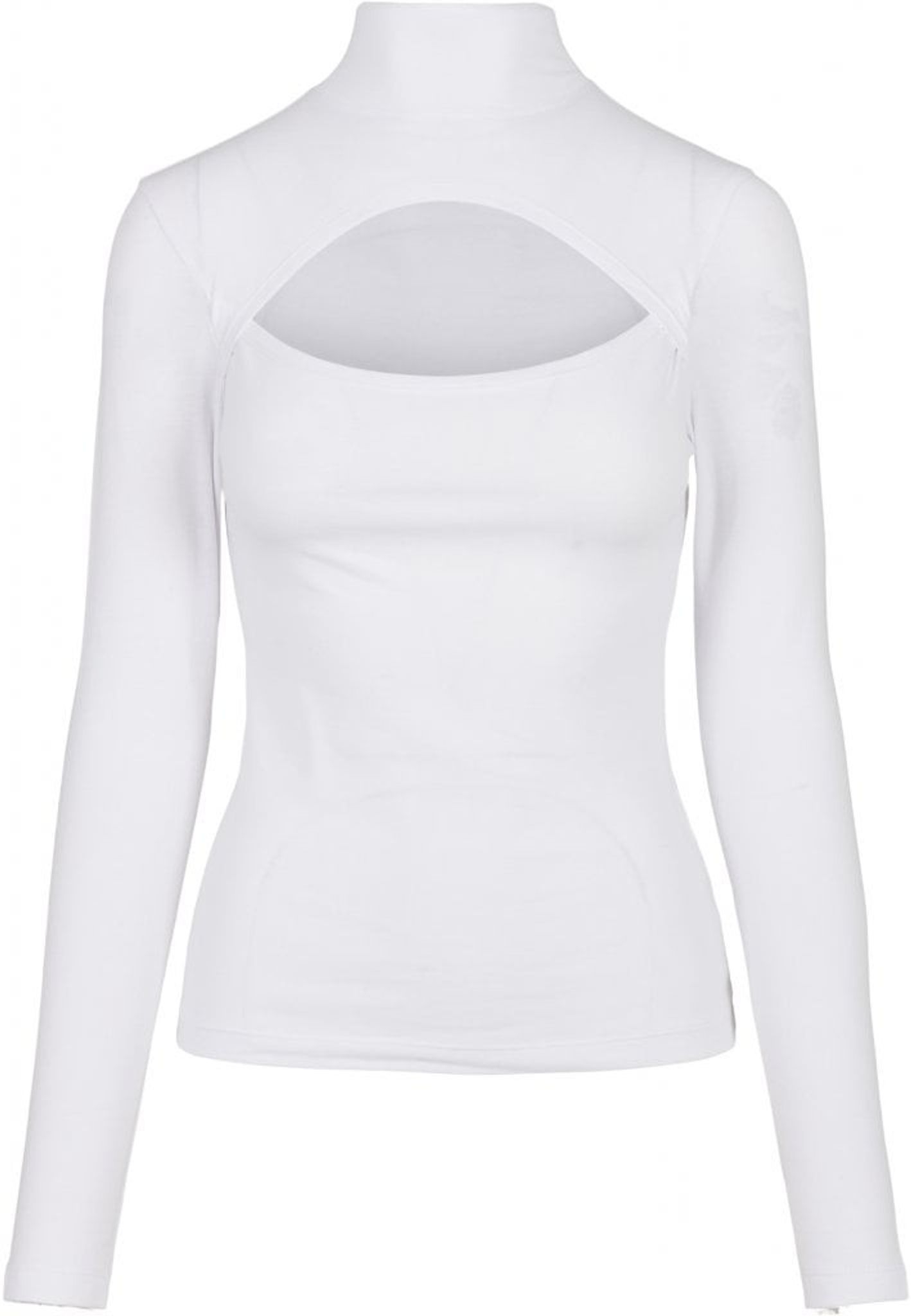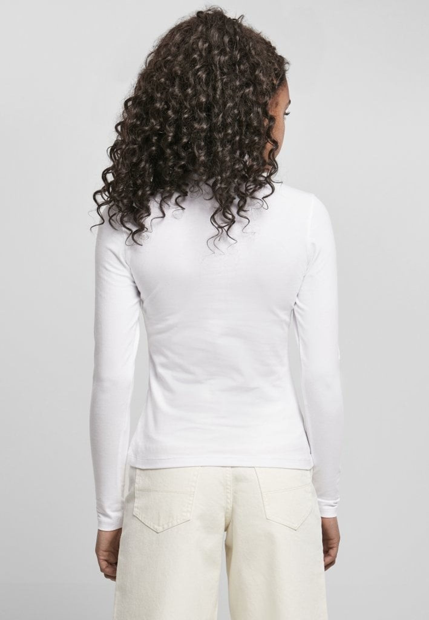 Den langærmede top er udstyret med en polokrave og spalte over brystet i form af en lang udskæring.