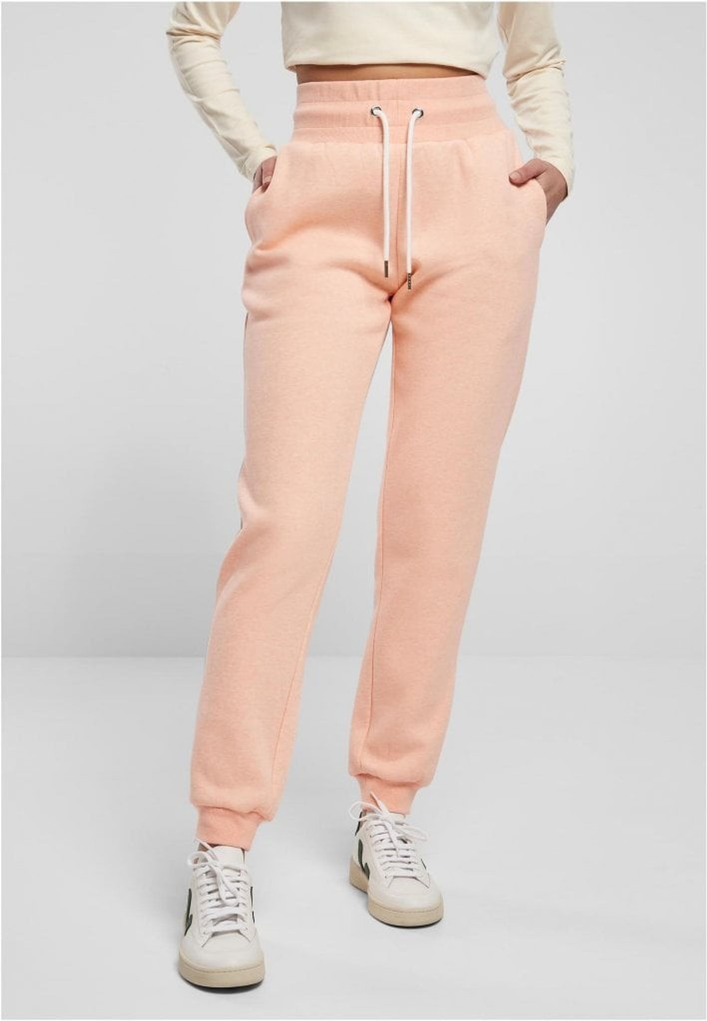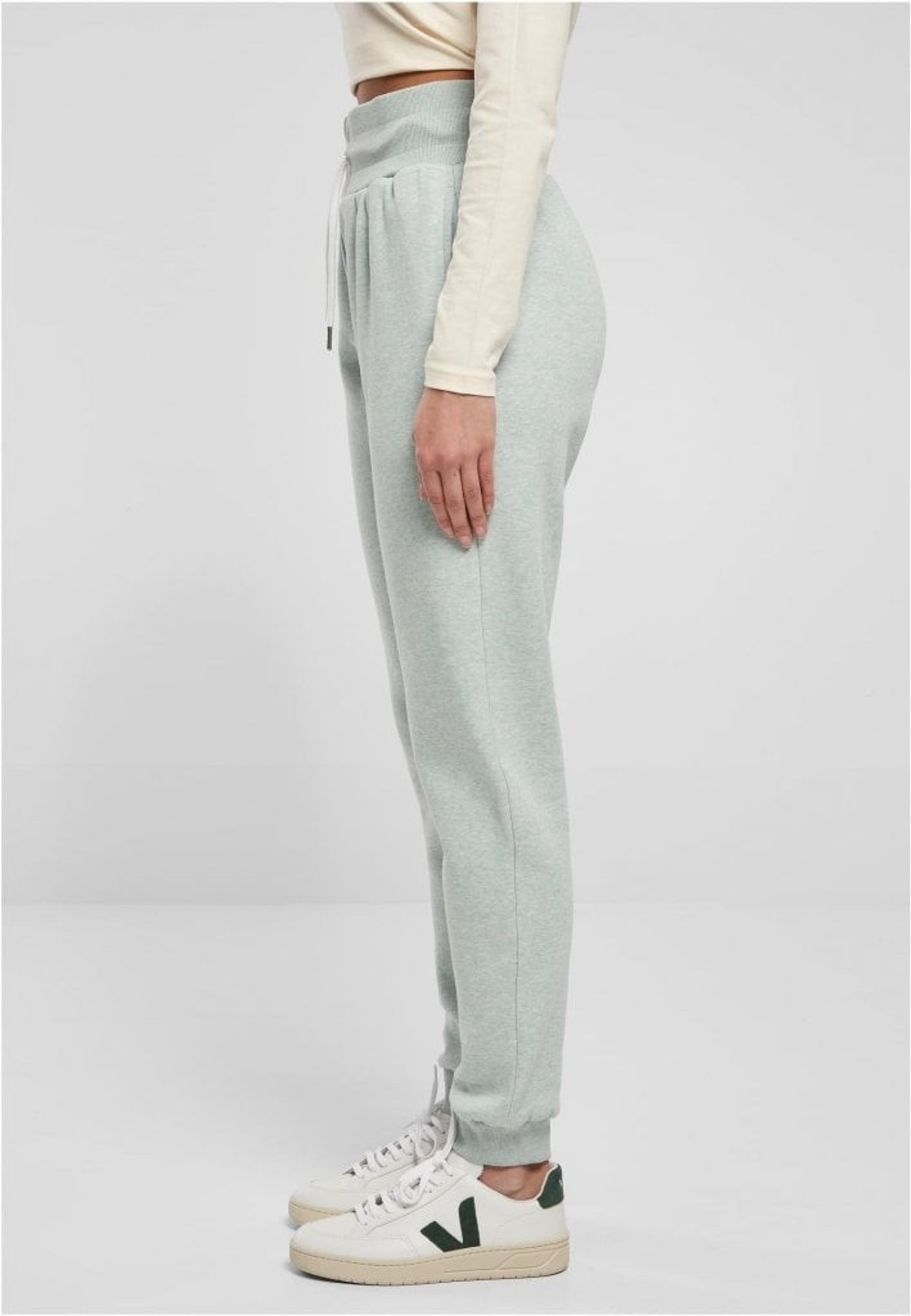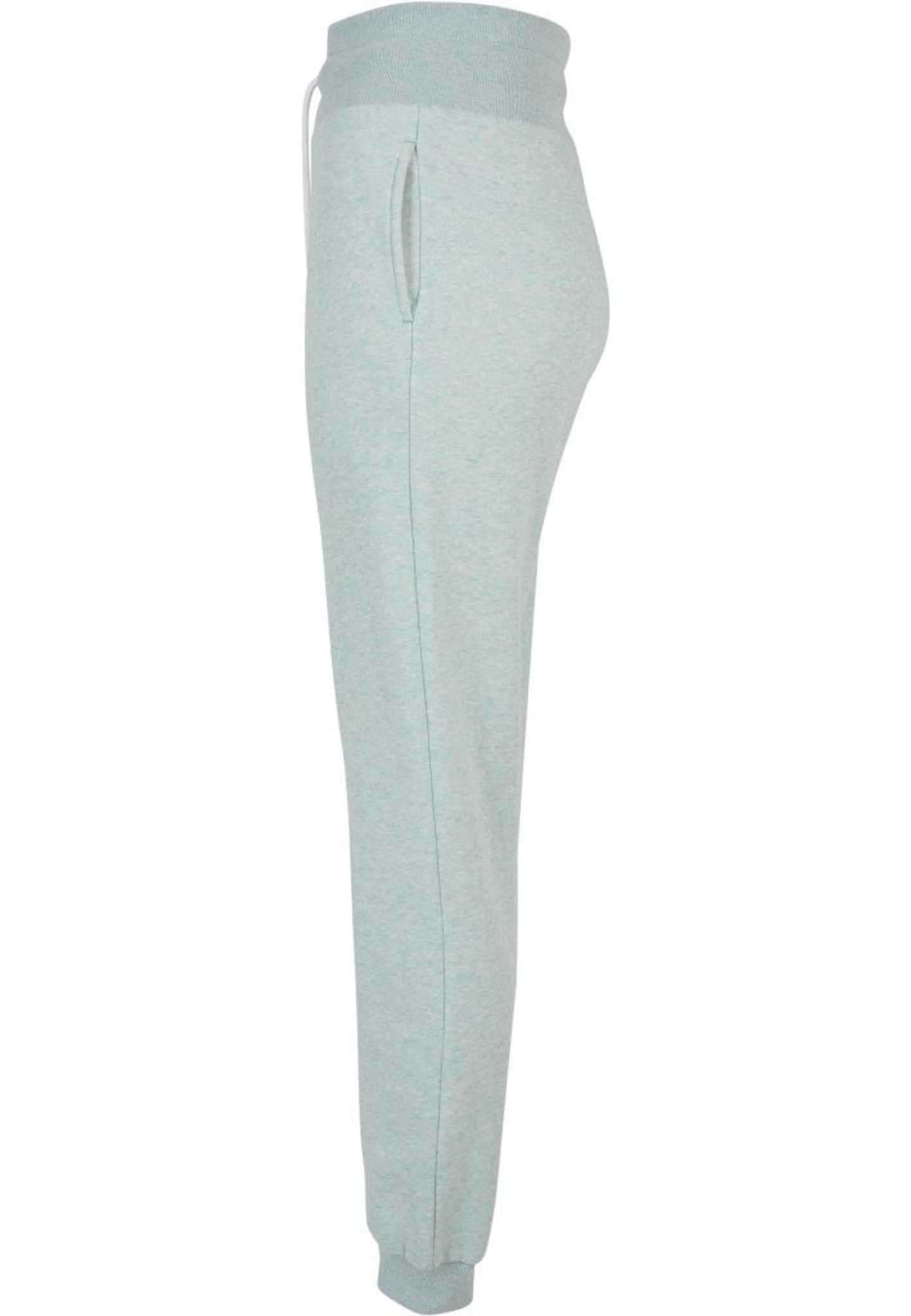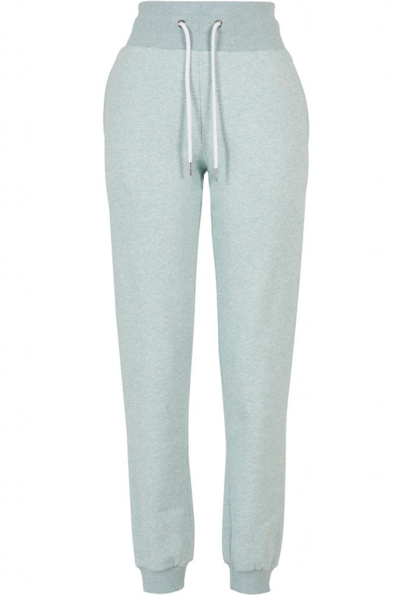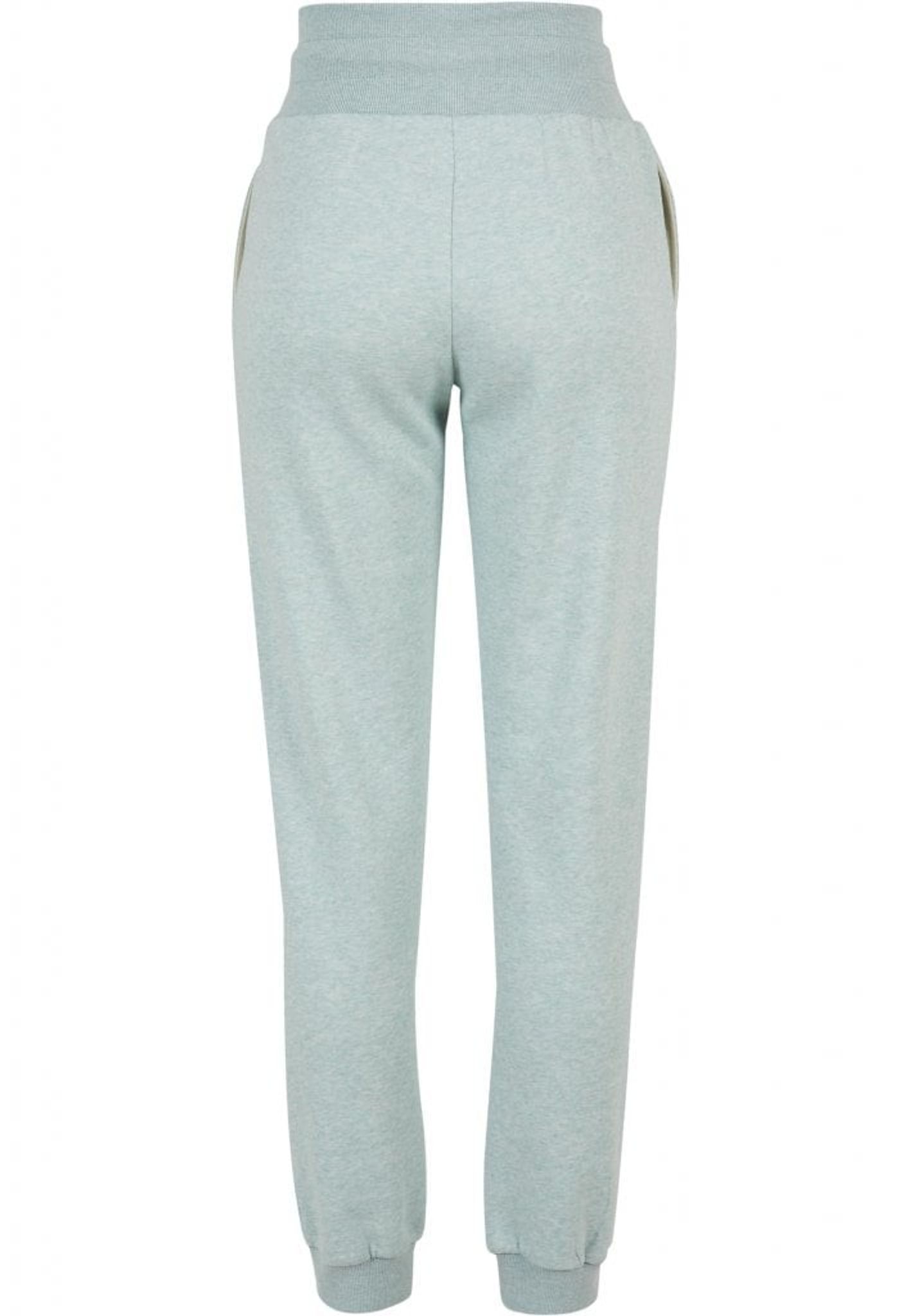 Joggingbukser til kvinder, der tilfredsstiller med en sporty stil i melange toner og er høj komfort. Et særligt træk er den ekstra brede, høje og elastiske linning med snøre. Bløde bukserne er udstyret med to sidelommer og brede manchetter. De er lavet af et blødt og fleksibelt sweat stof og har en normal pasform.