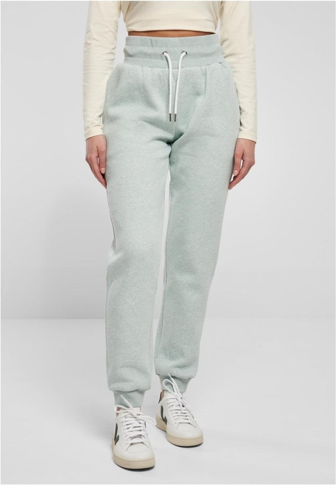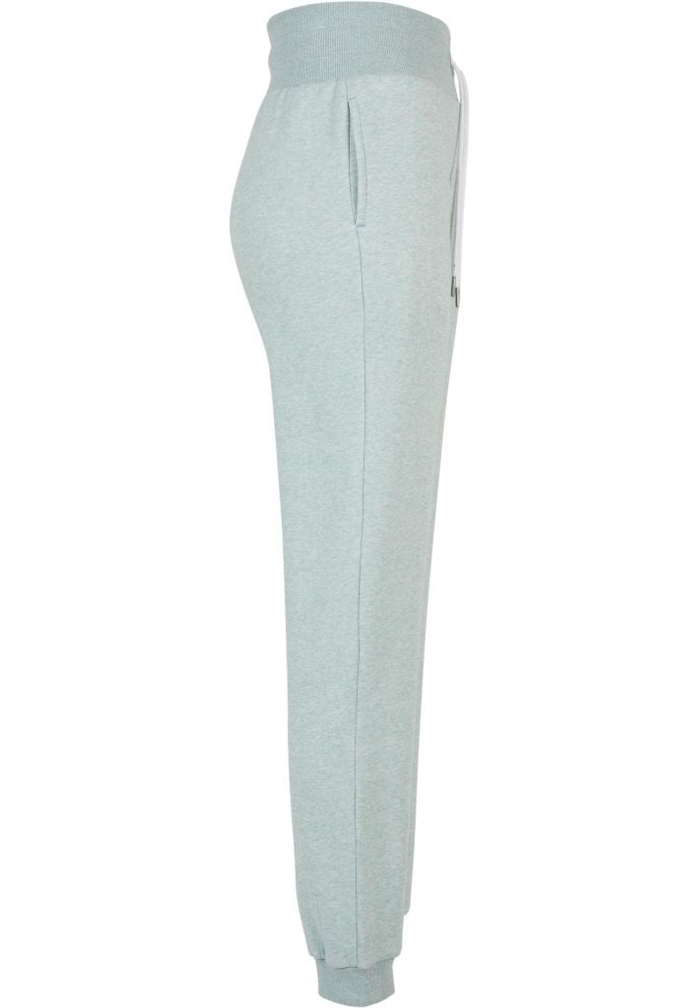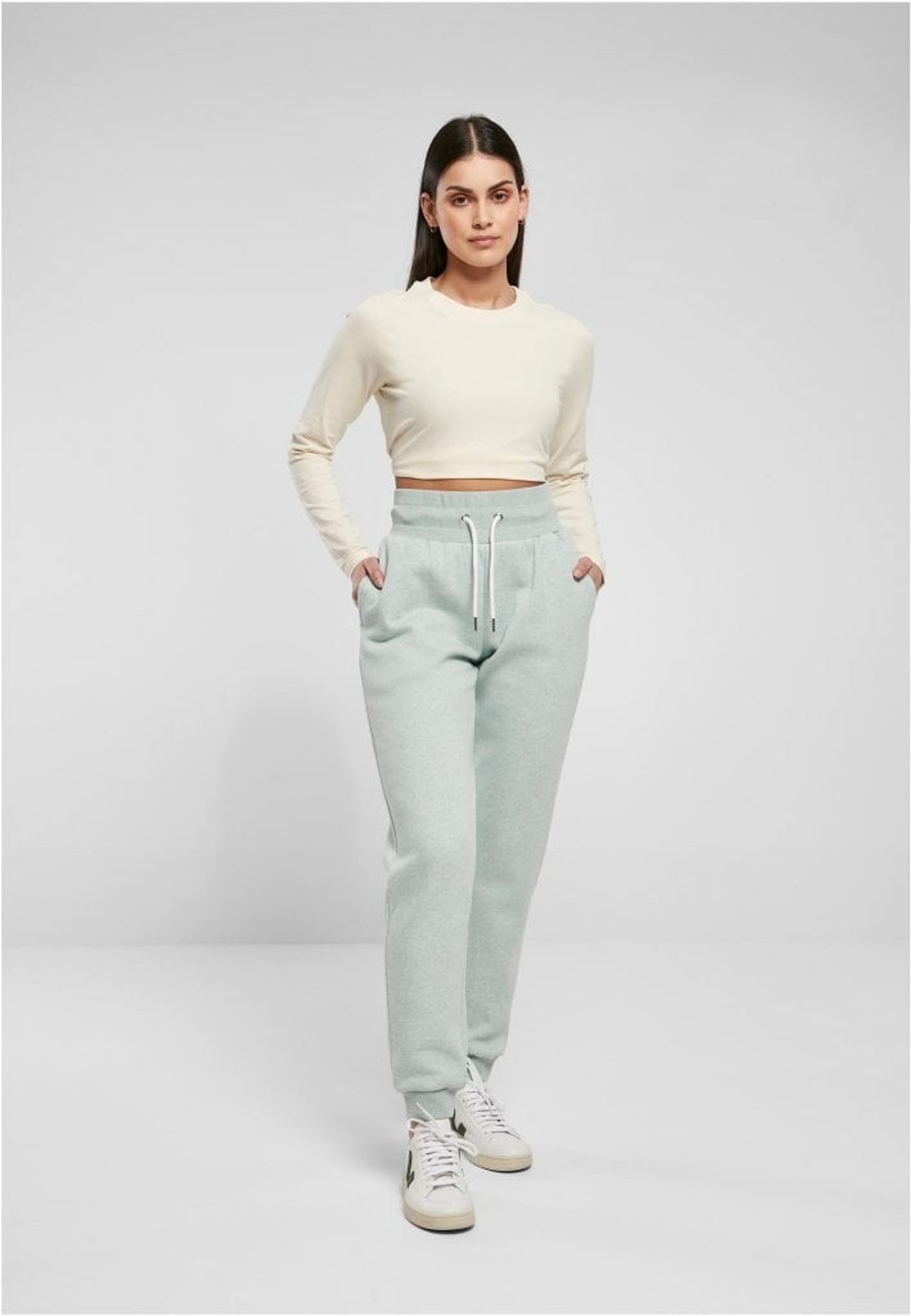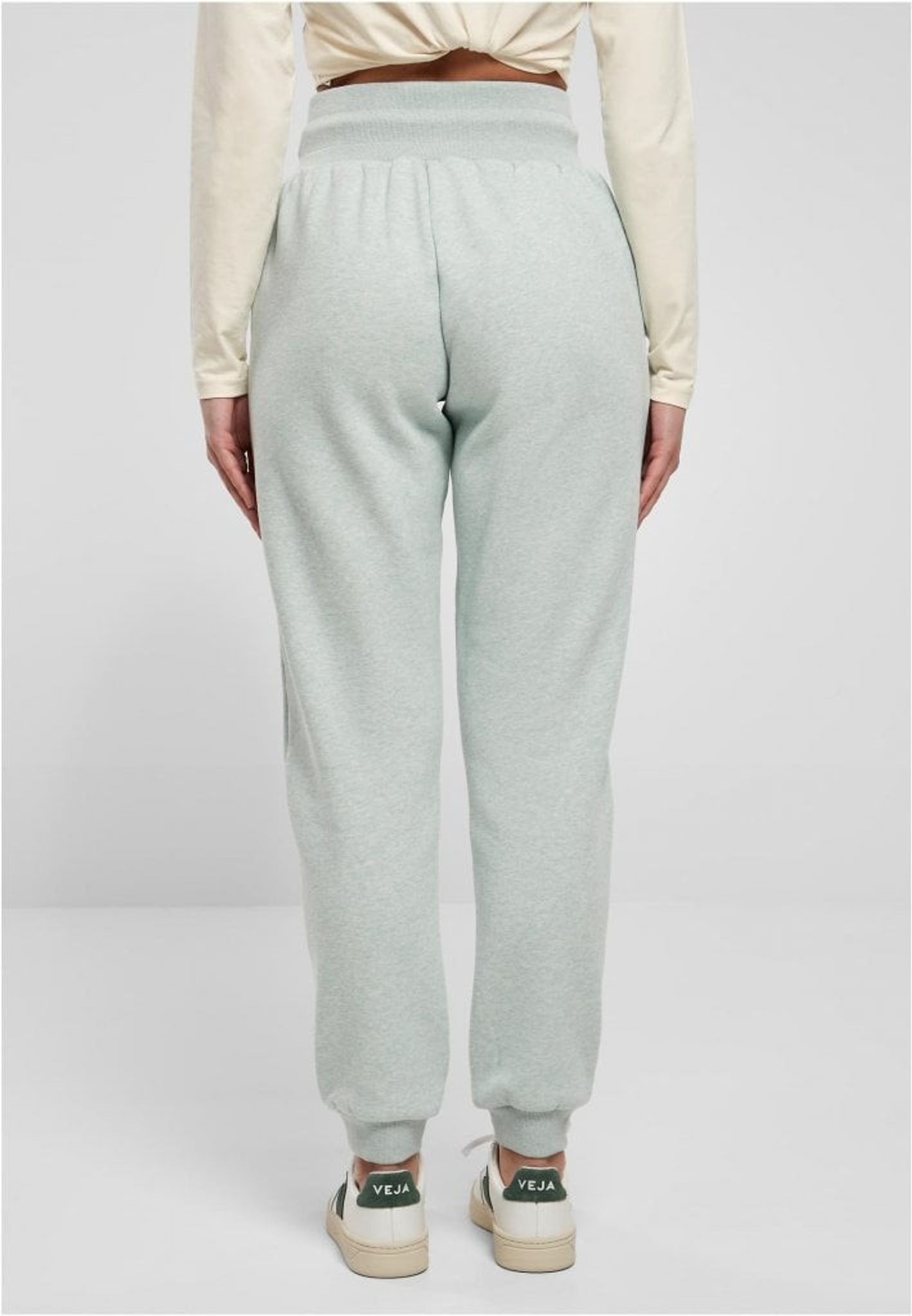 Joggingbukser til kvinder, der tilfredsstiller med en sporty stil i melange toner og er høj komfort. Et særligt træk er den ekstra brede, høje og elastiske linning med snøre. Bløde bukserne er udstyret med to sidelommer og brede manchetter. De er lavet af et blødt og fleksibelt sweat stof og har en normal pasform.