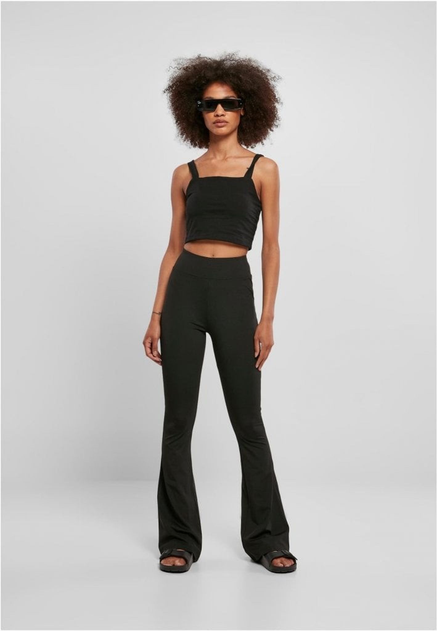 Et afslappet og moderigtigt urban it-piece, leggingsene sidder pænt ned til knæene og udvider sig derfra med et lækkert sving. Udstyret med en høj, elastisk linning og lavet af et glat materiale af genbrugspolyester og elastan, garanteres ideel bærekomfort.
