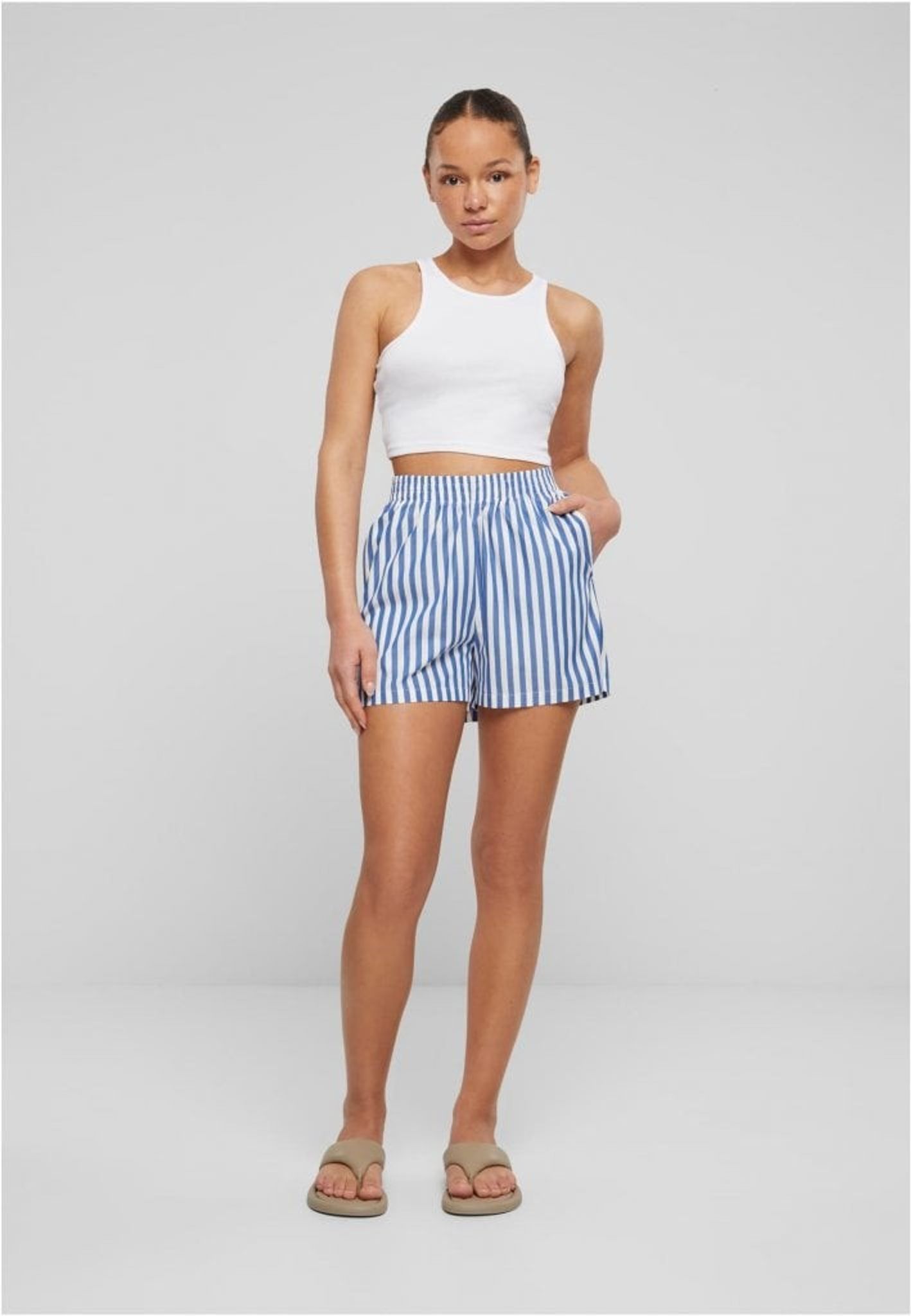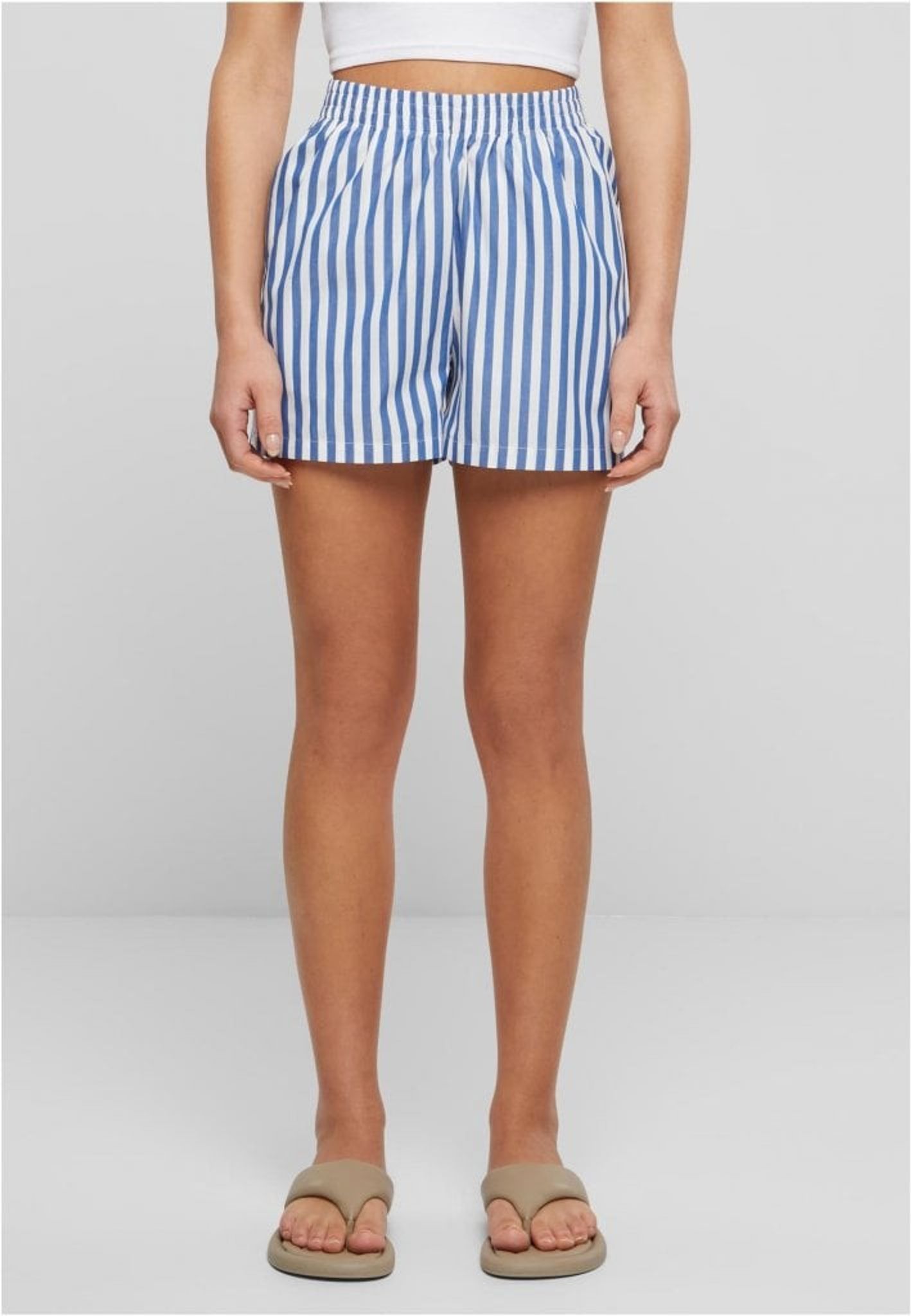 Stribede shorts til kvinder er essensen af sommerens lethed og komfort. Deres stribede design og afslappede pasform giver en afslappet stil, der er perfekt til varme dage.