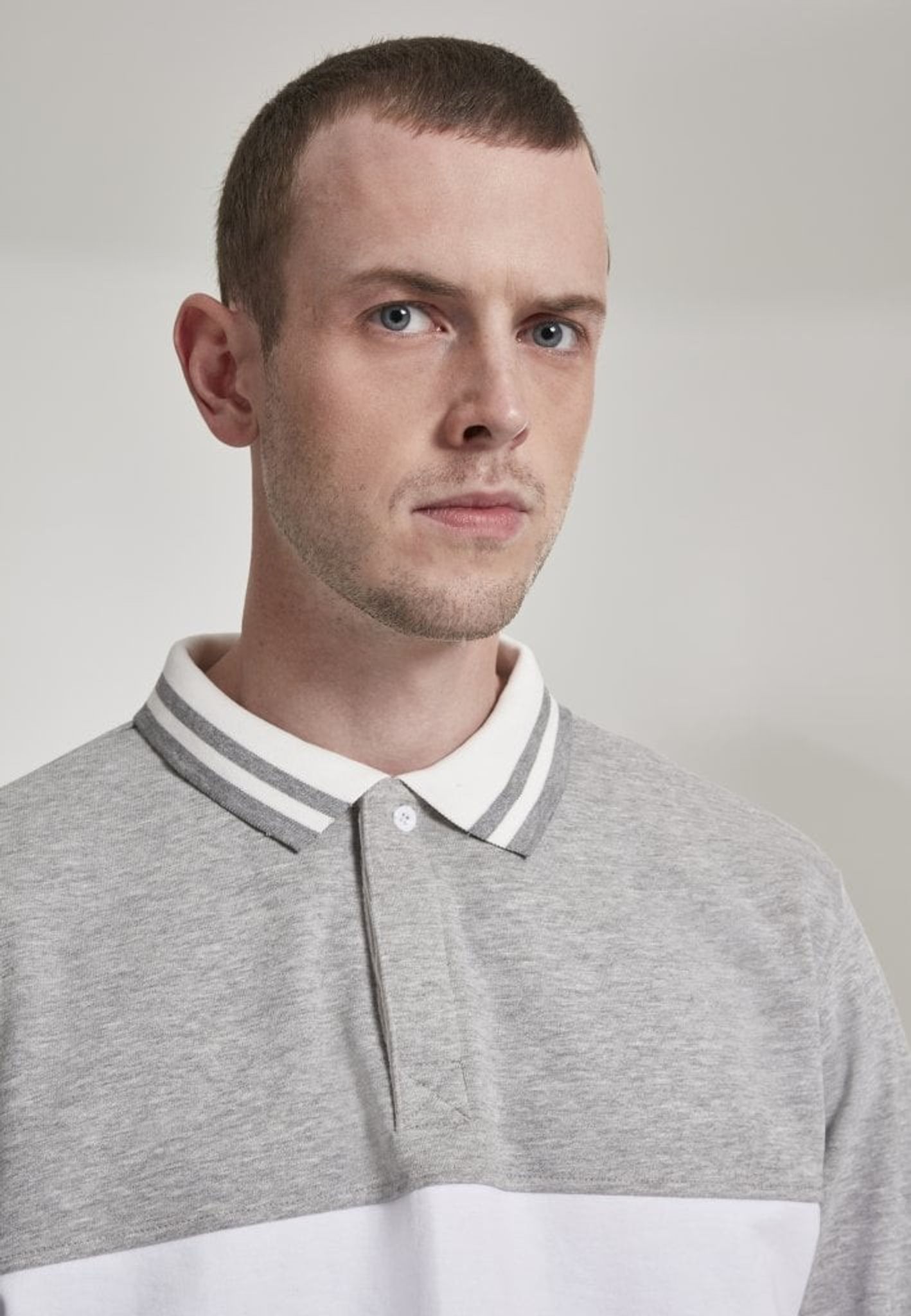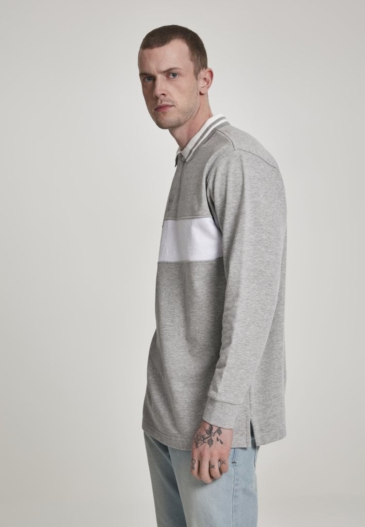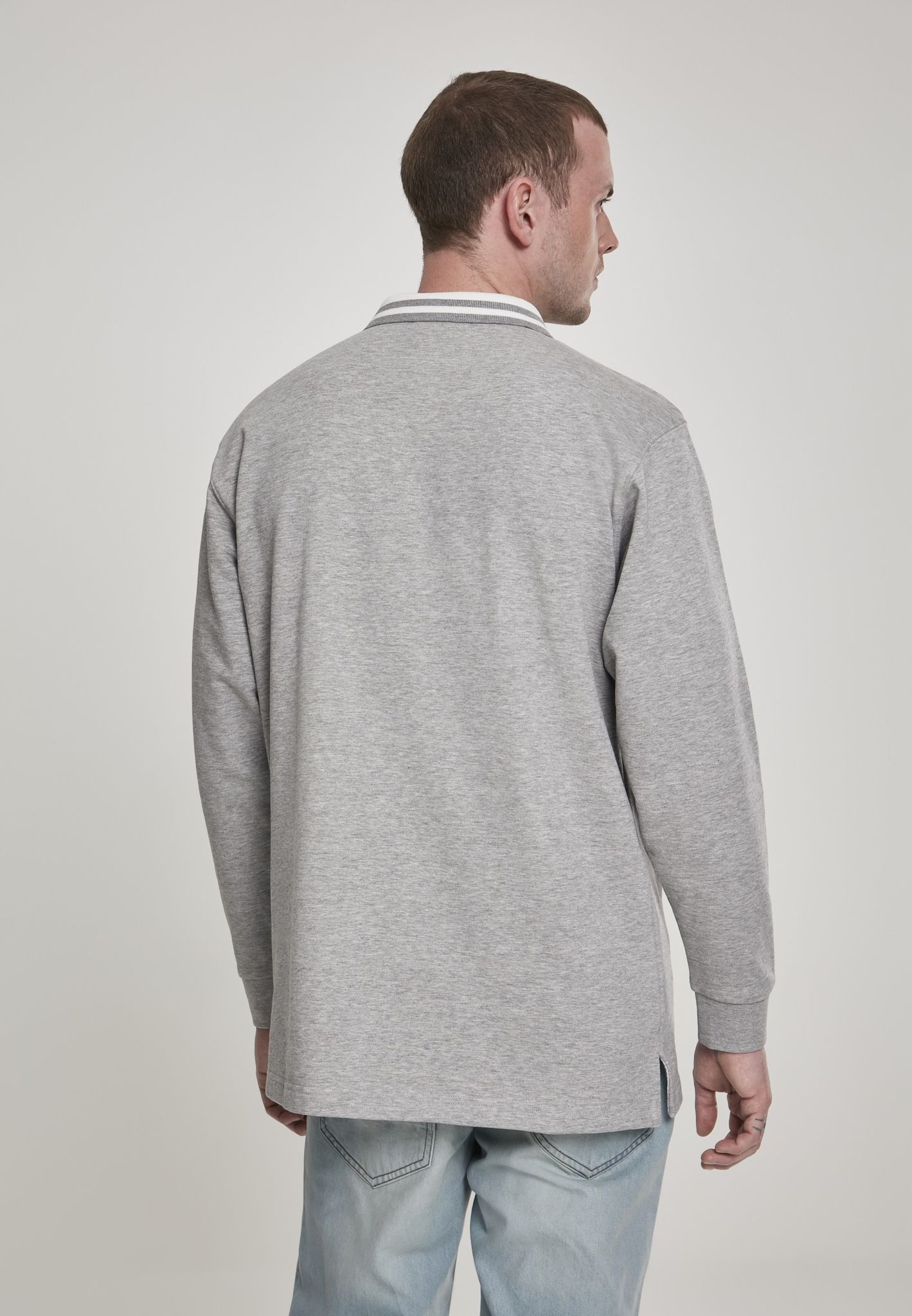 En dejlig afslappet poloshirt i langærmet i grå og hvid.