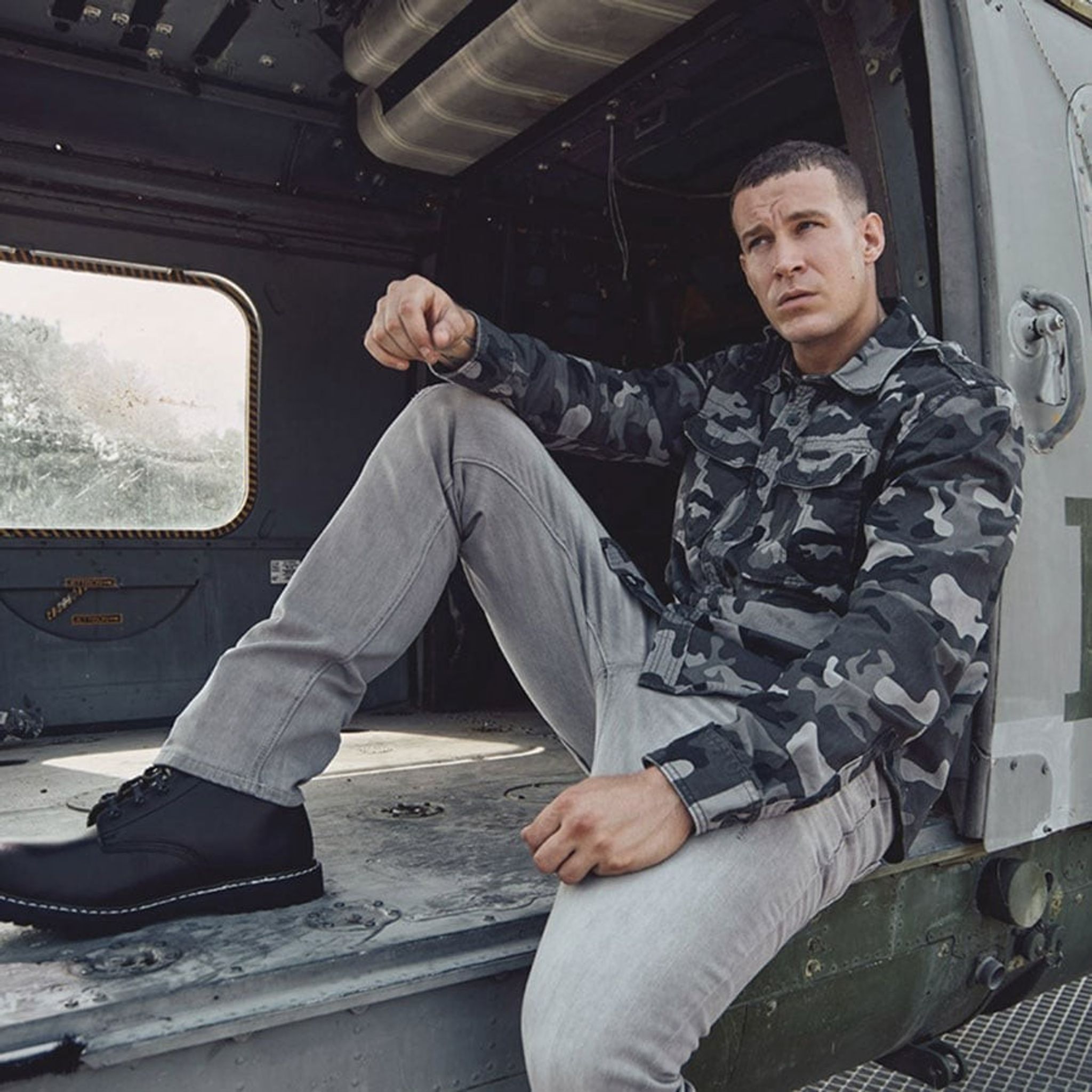 En skjorte med et slidt vintage-look og en camouflage i gråtoner.