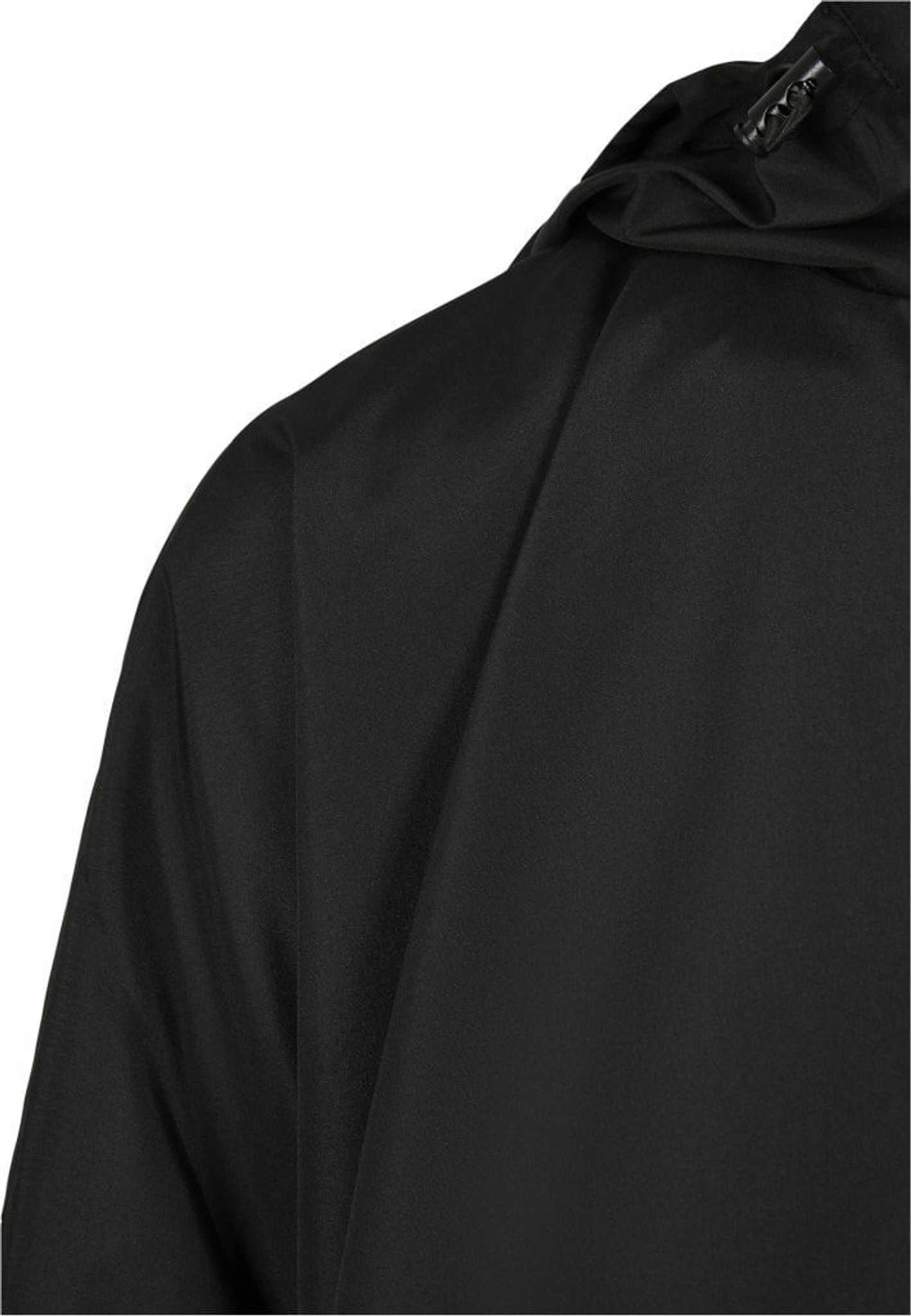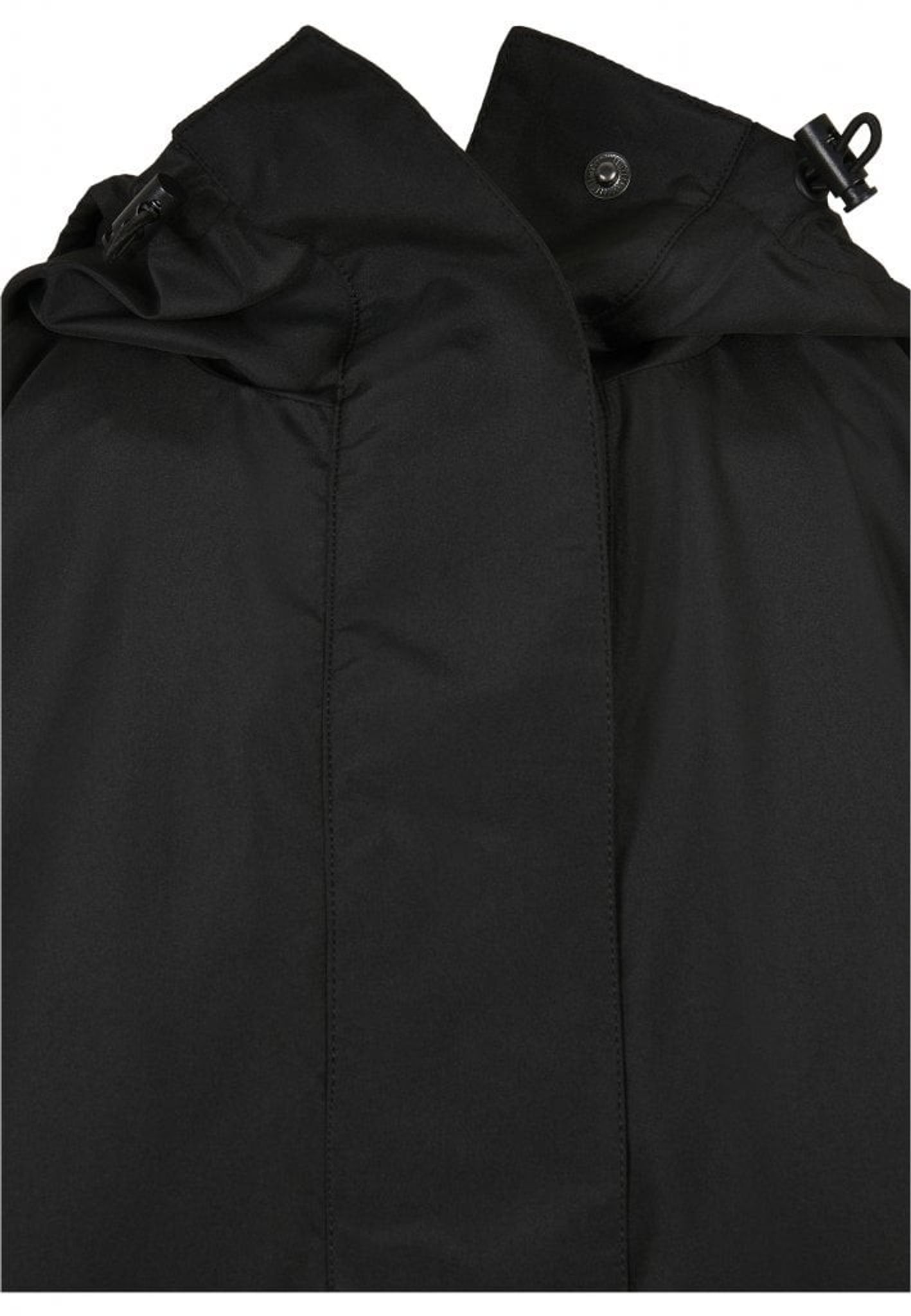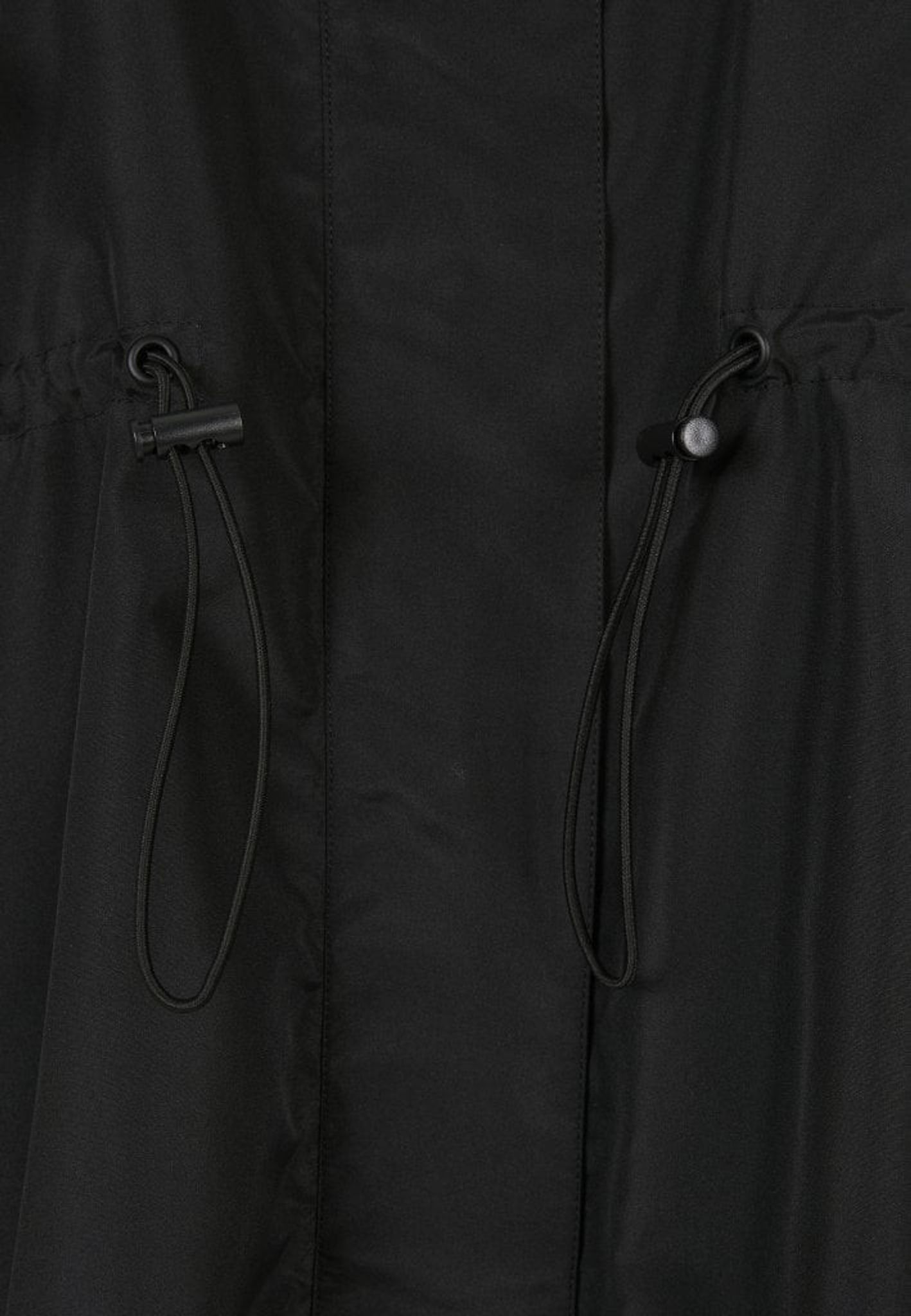Jakken har en knap højt oppe i nakken og en snor i taljen, så du kan justere bredden.
