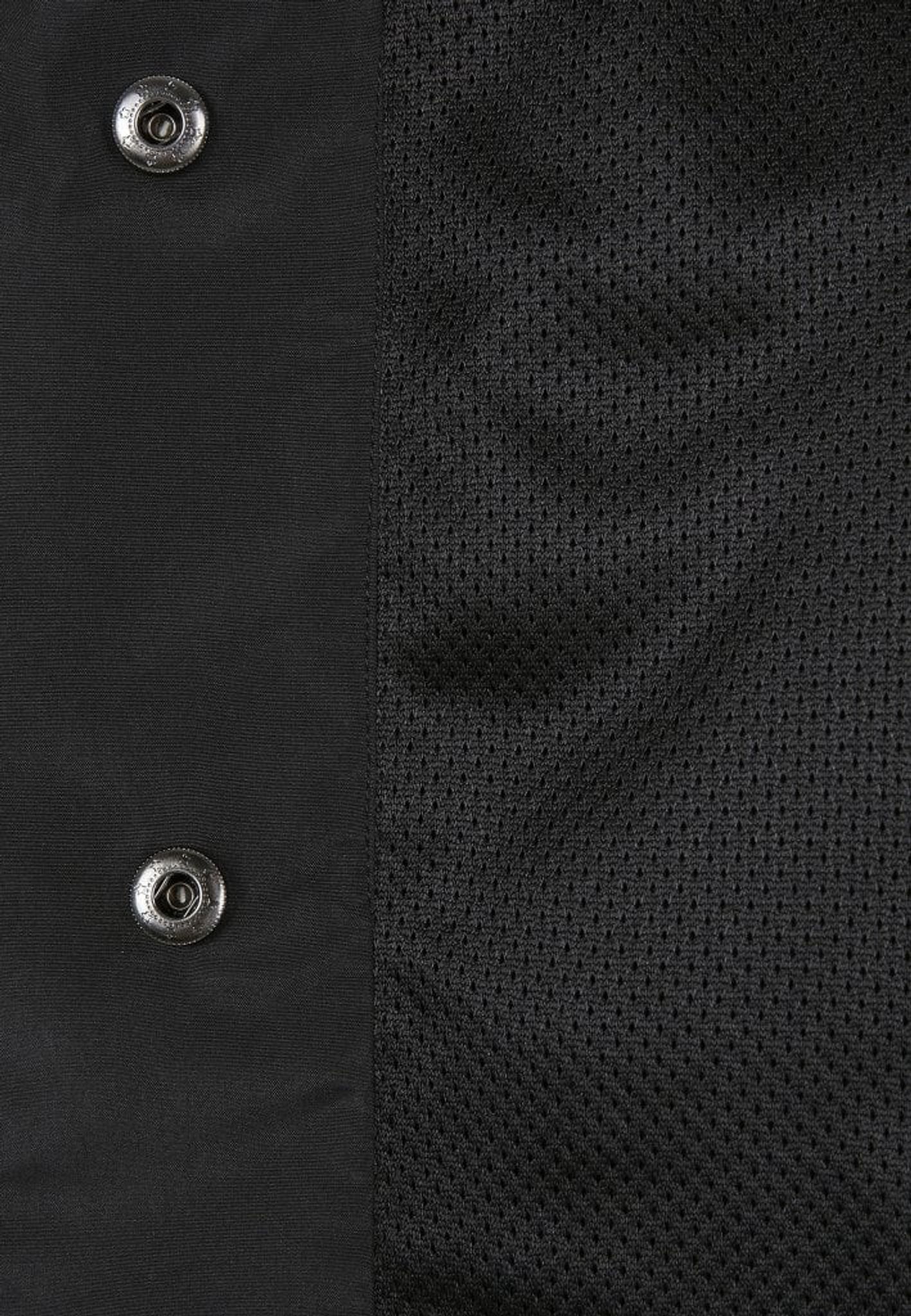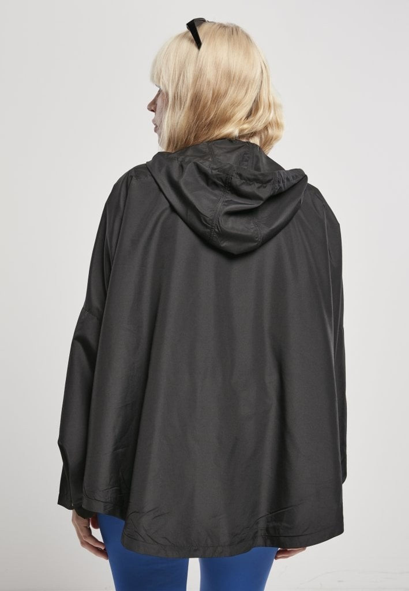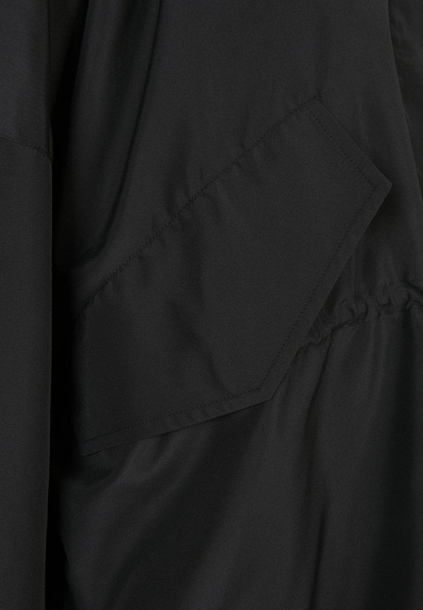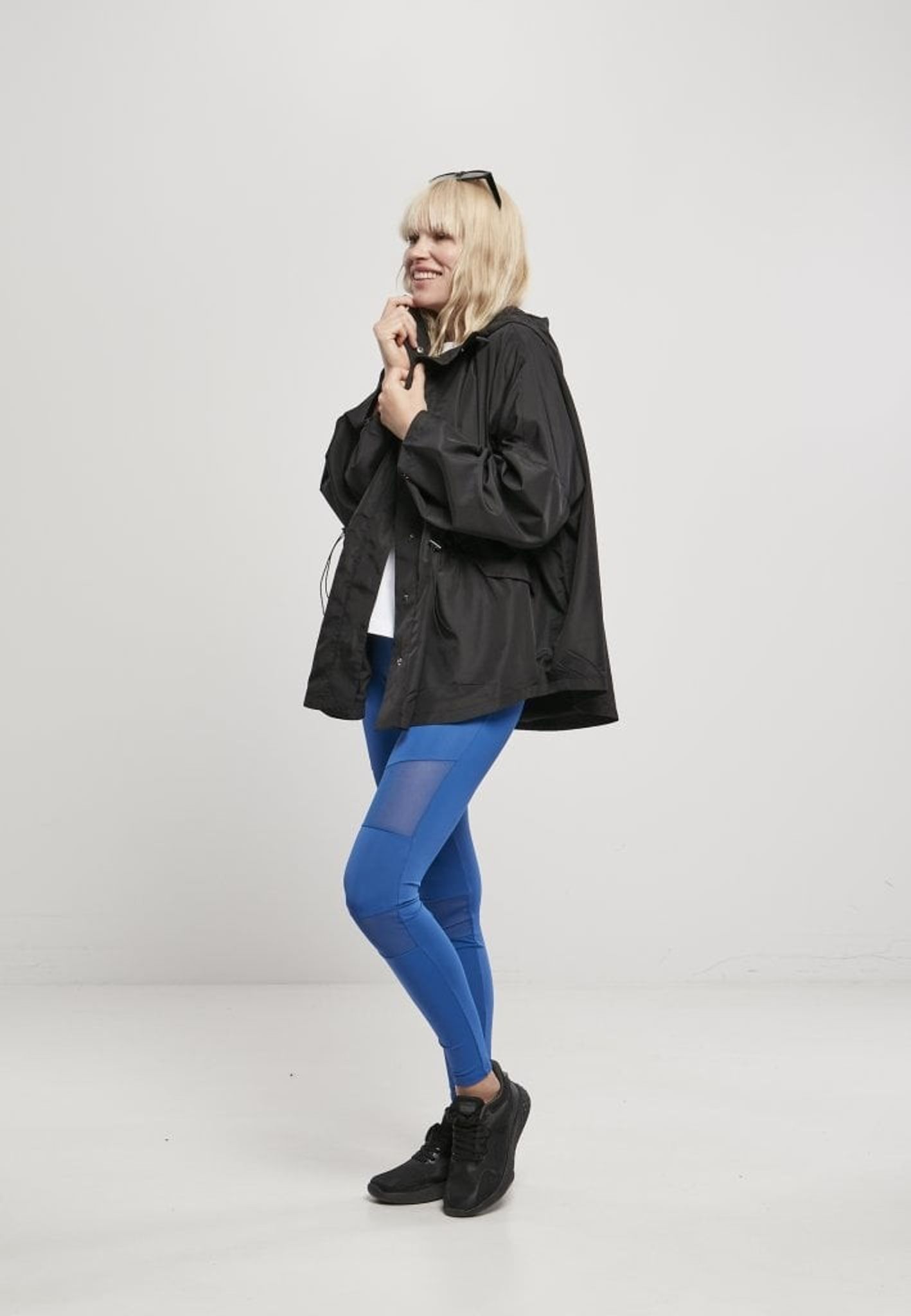 Jakken har en knap højt oppe i nakken og en snor i taljen, så du kan justere bredden.