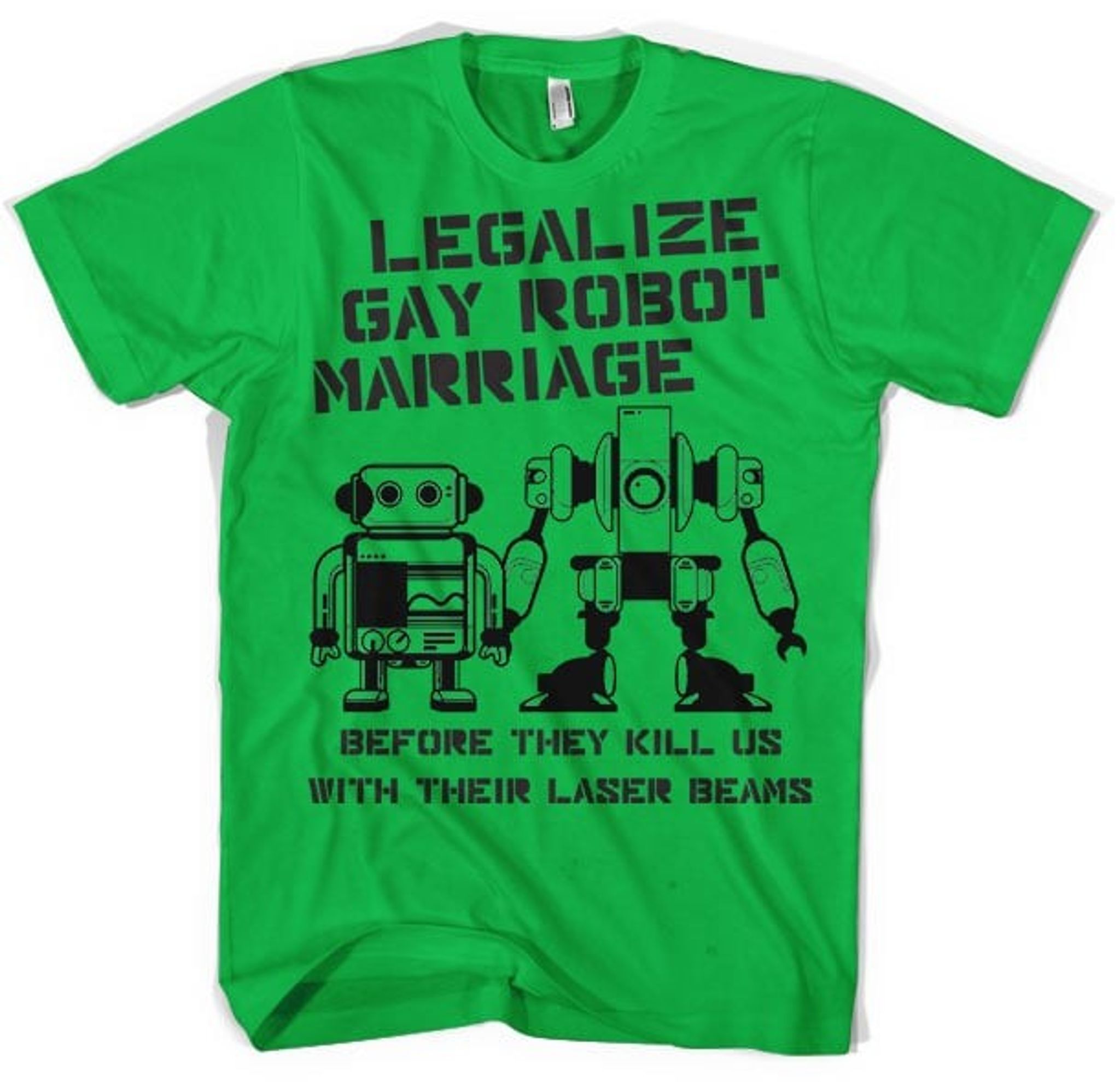 Legalize Gay Robot-ægteskab er en T-shirt, der giver en stærk erklæring for kærlighed og ligestilling. Denne t-shirt er lavet af 100% bomuld og ser godt ud og føles behageligt. Størrelser er tilgængelige fra S til XXL for at passe til alle kropstyper.