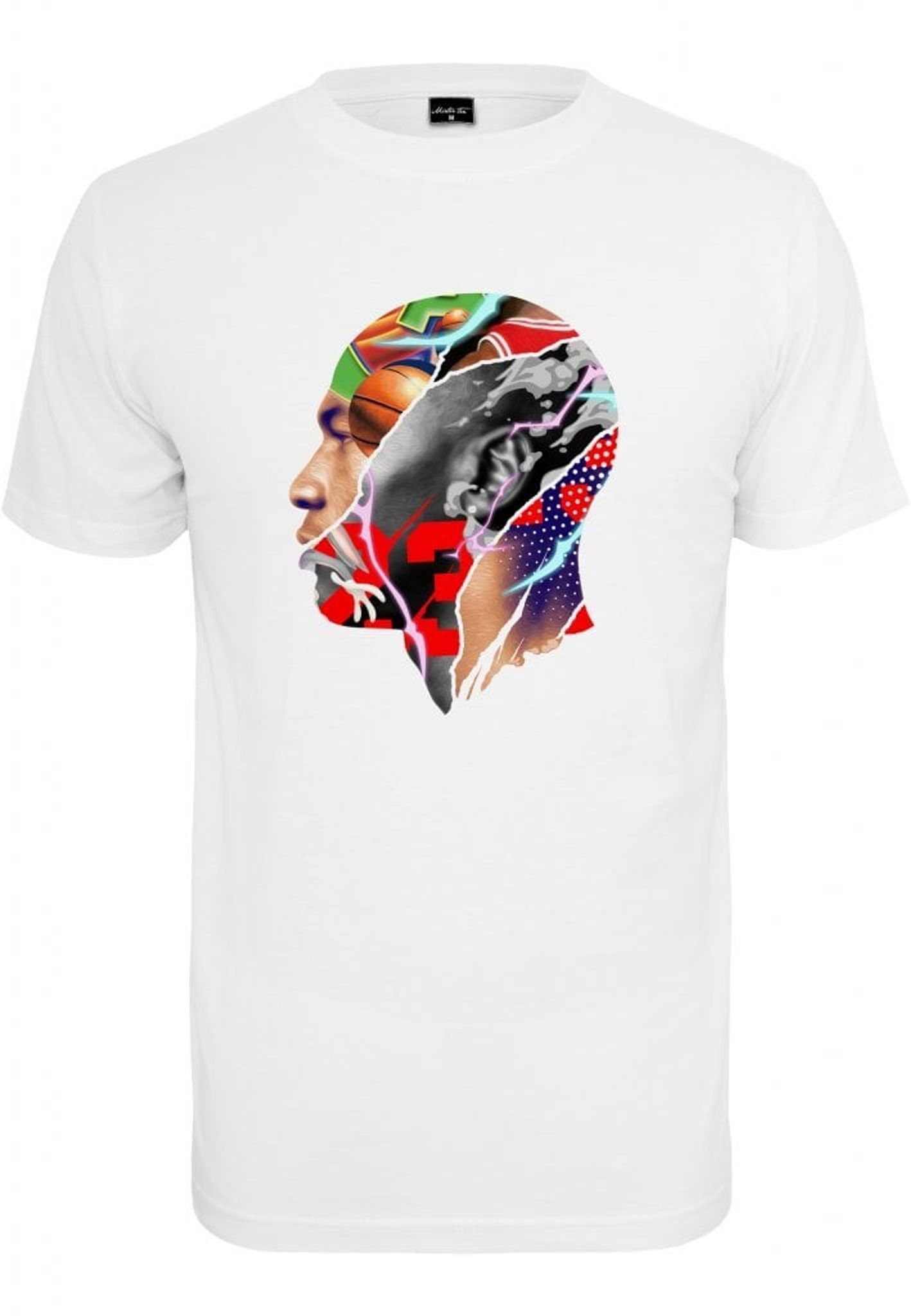 Hvid T-shirt med tryk inspireret af filmen "Space Jam" med basketballlegenden Michael Jordan og tegneseriefiguren Snurre Snup.