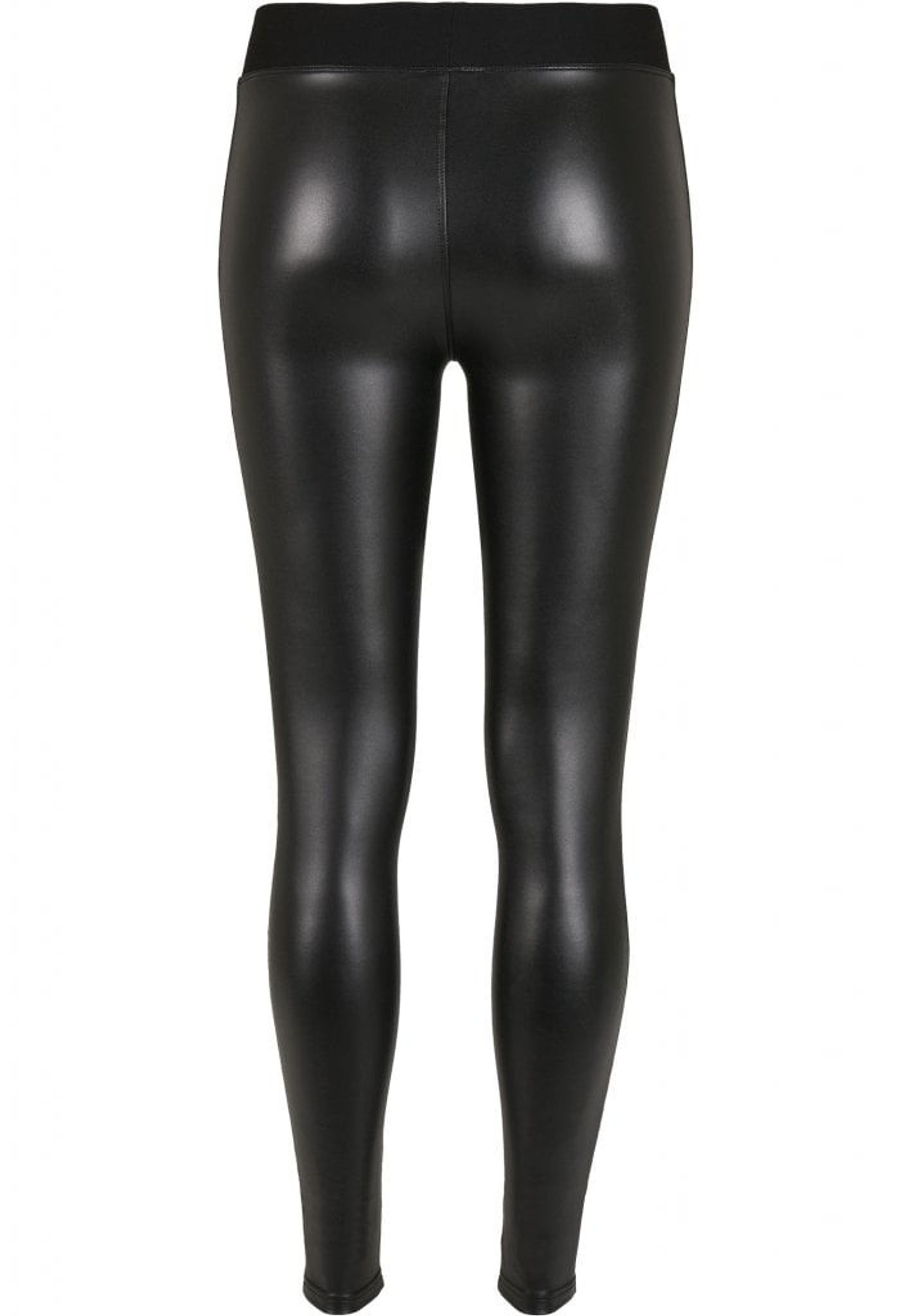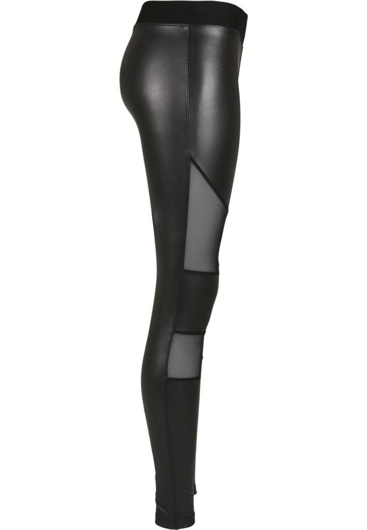 Et par leggings i imiteret tøj og blonde detaljer på låret og underbenet.
