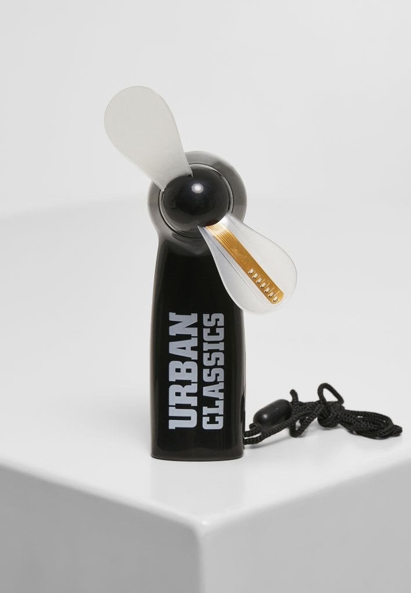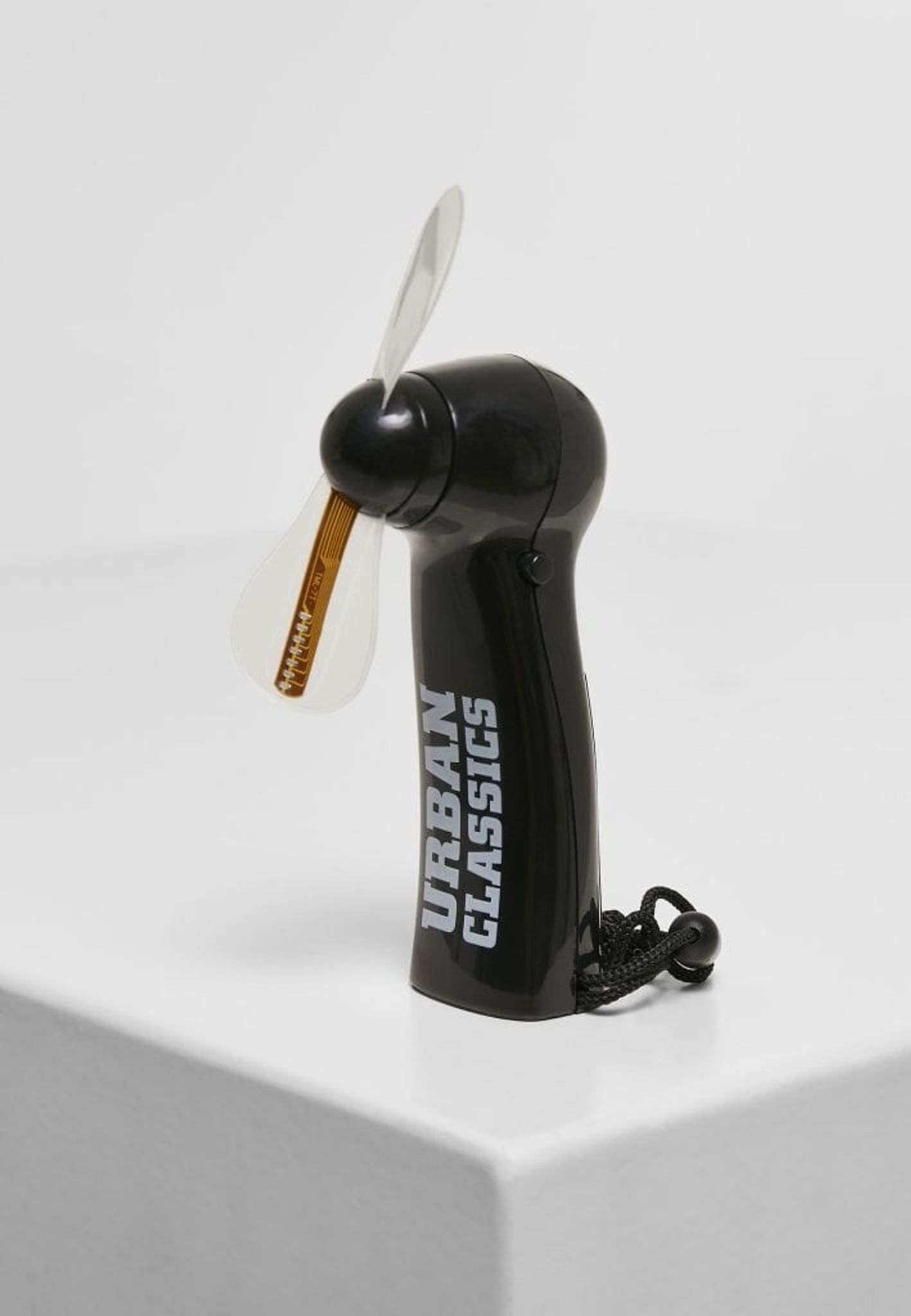 En lille sort blæser med et Urban-logo, som du kan have i lommen, hvis du vil have lidt ekstra luft.