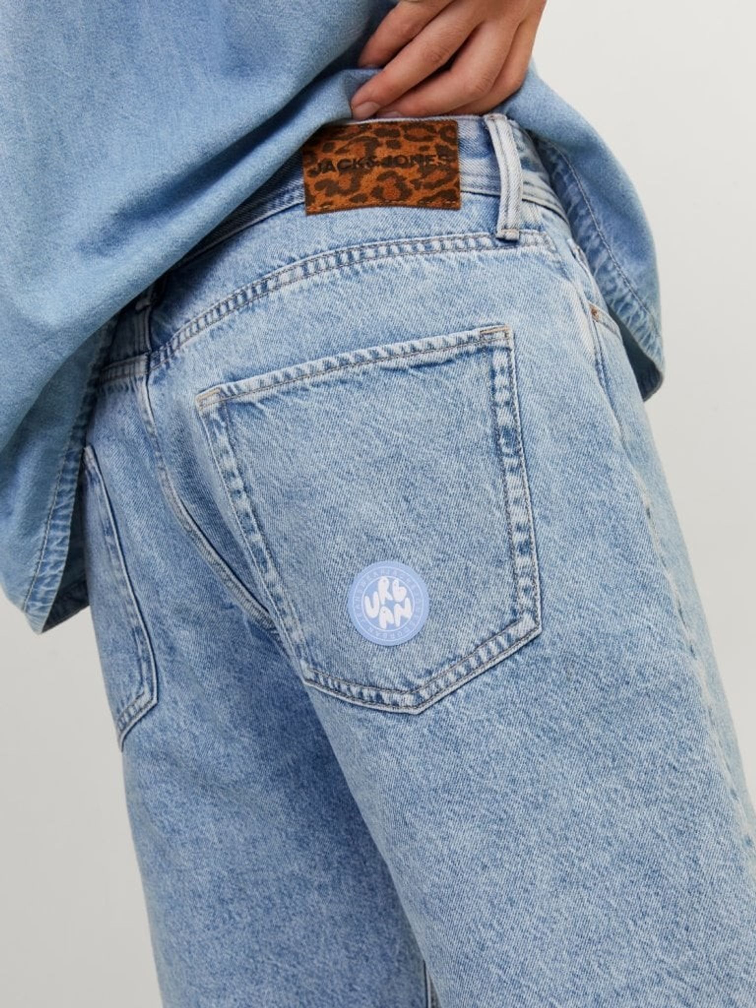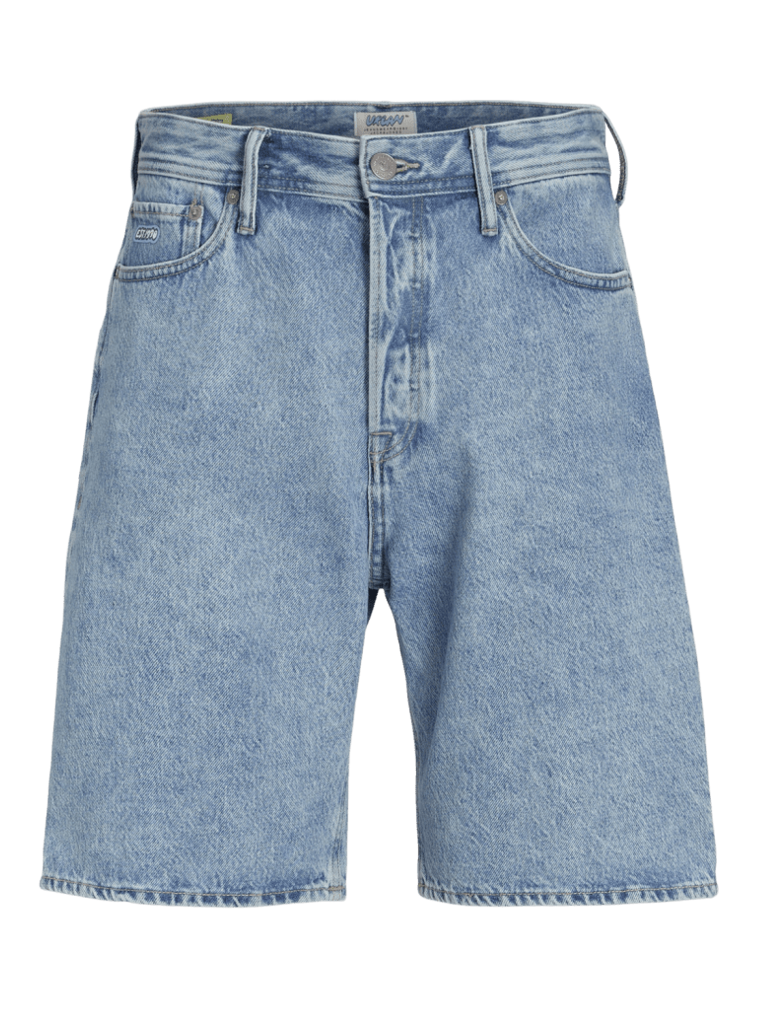 Disse lyseblå baggy denimshorts til mænd er tidløse og ukomplicerede, ligesom et par gode jeans skal være. De er lavet af stift denim, er 100% bomuld og har et klassisk look og feel. Stoneash-finishen giver dem et falmet, slidt look, der tilføjer deres charme.