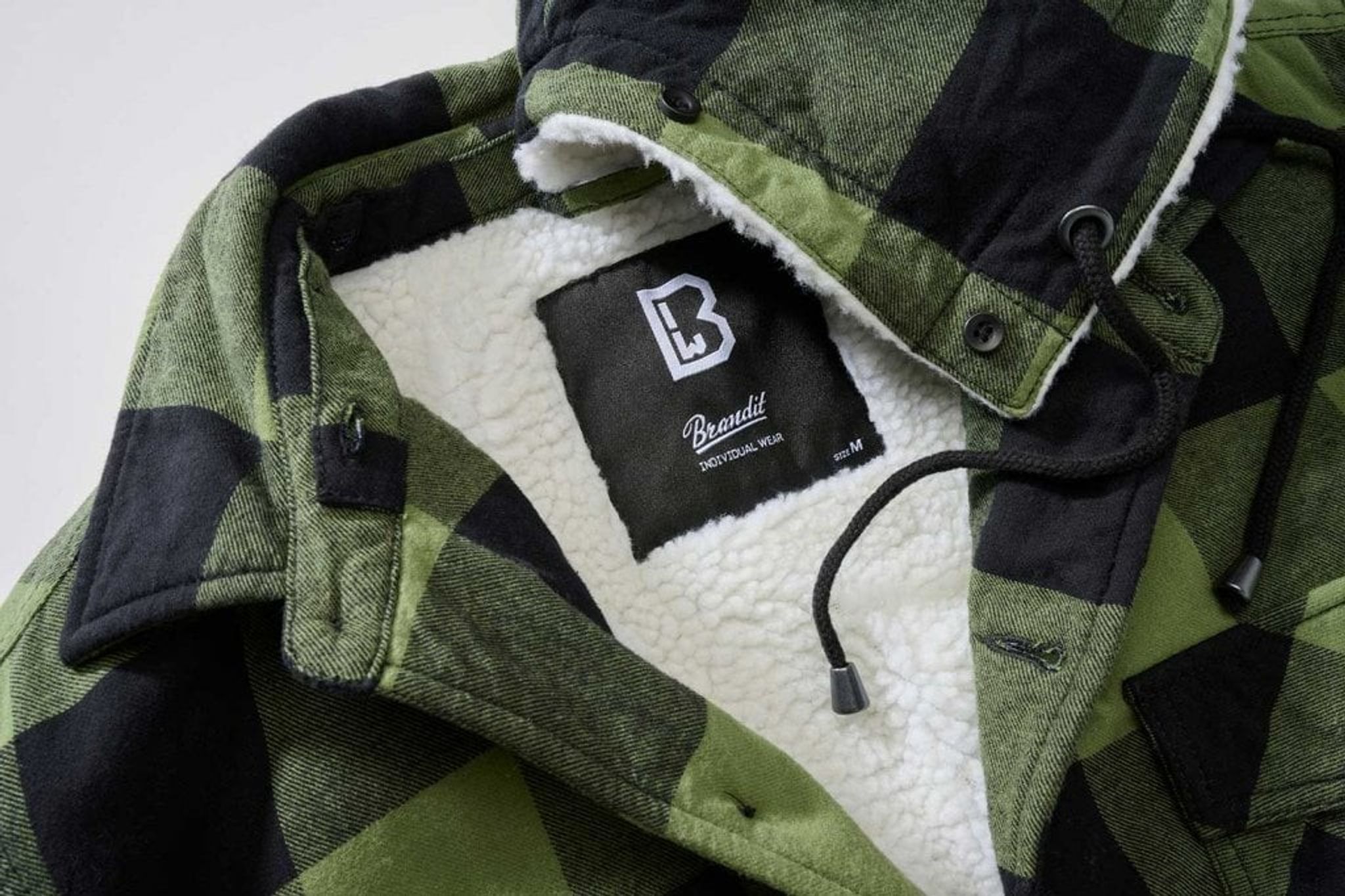 En rigtig lækker skovhuggerjakke med teddyfor på indersiden og også inde i hætten. Det er en jakke, der har lækre detaljer såsom to brystlommer og to frontlommer i hver side.