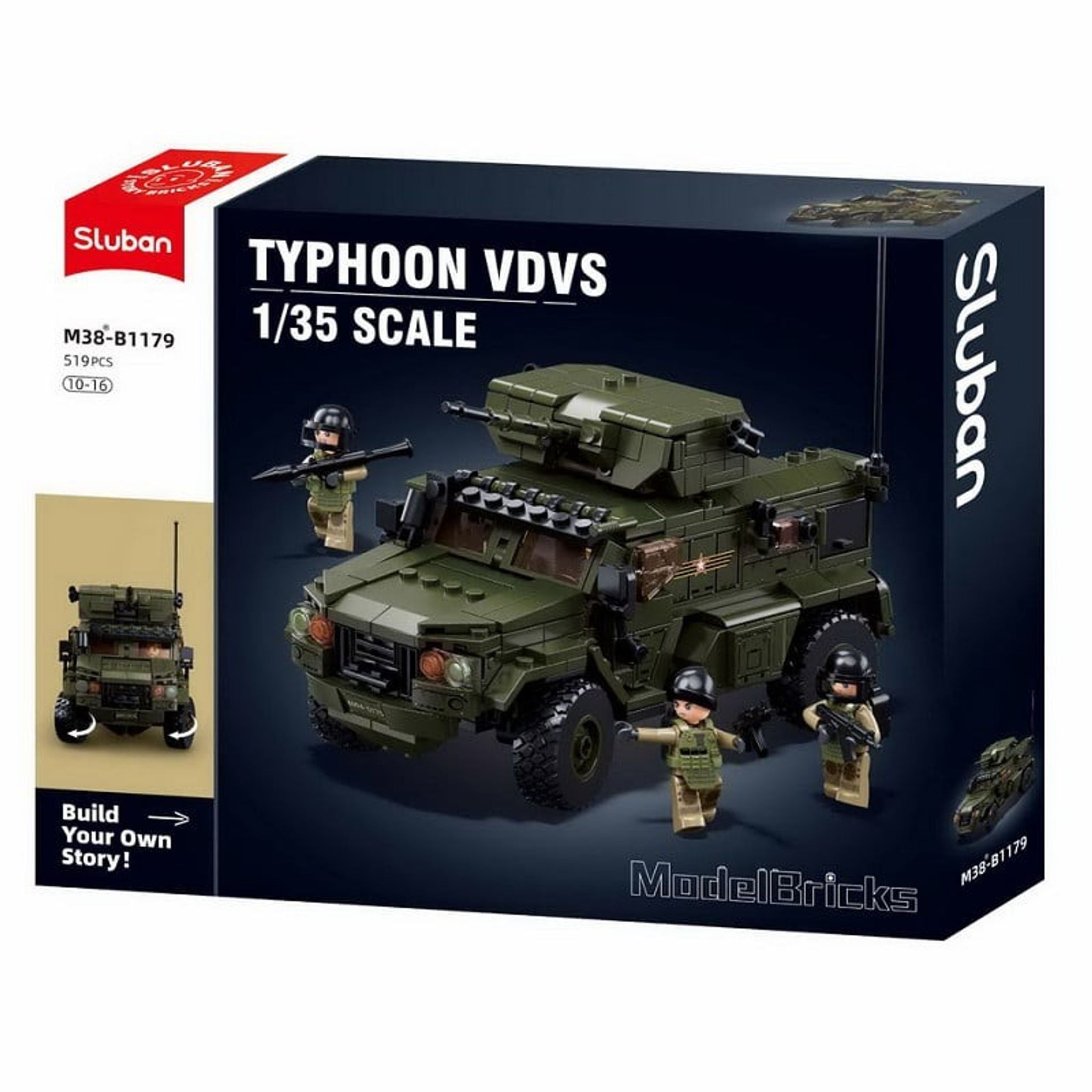 Sluban M38-B1179 Typhoon Assault Armored Vehicle er et imponerende byggesæt fra Model Bricks-serien. Denne model tilbyder en detaljeret og realistisk konstruktion, der appellerer til både børn og voksne.