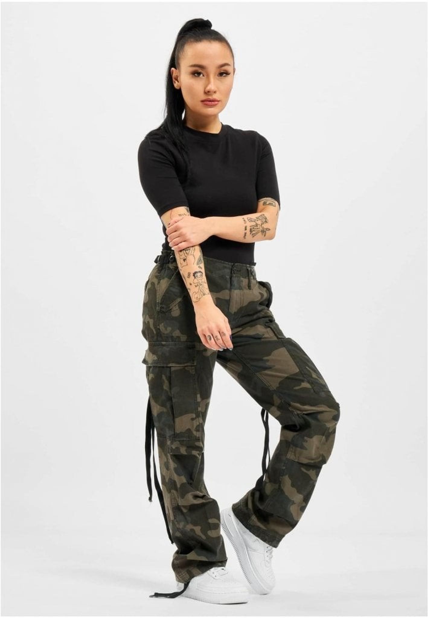 M-65 damecargobukser i mørk camo.