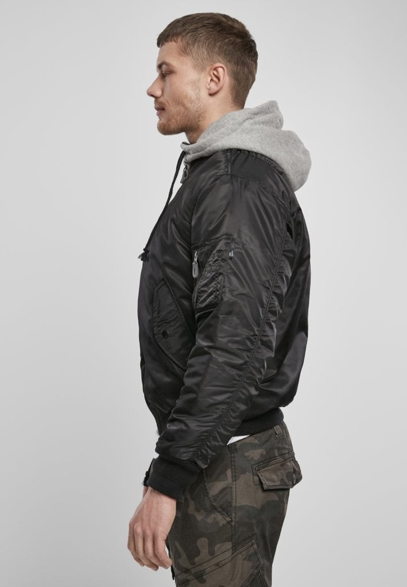 Her er den populære bomberjakke MA1 i et fantastisk design med hætte i et lækkert sweatshirt materiale. Jakken kommer i sort med grå hætte og sort inderfor.