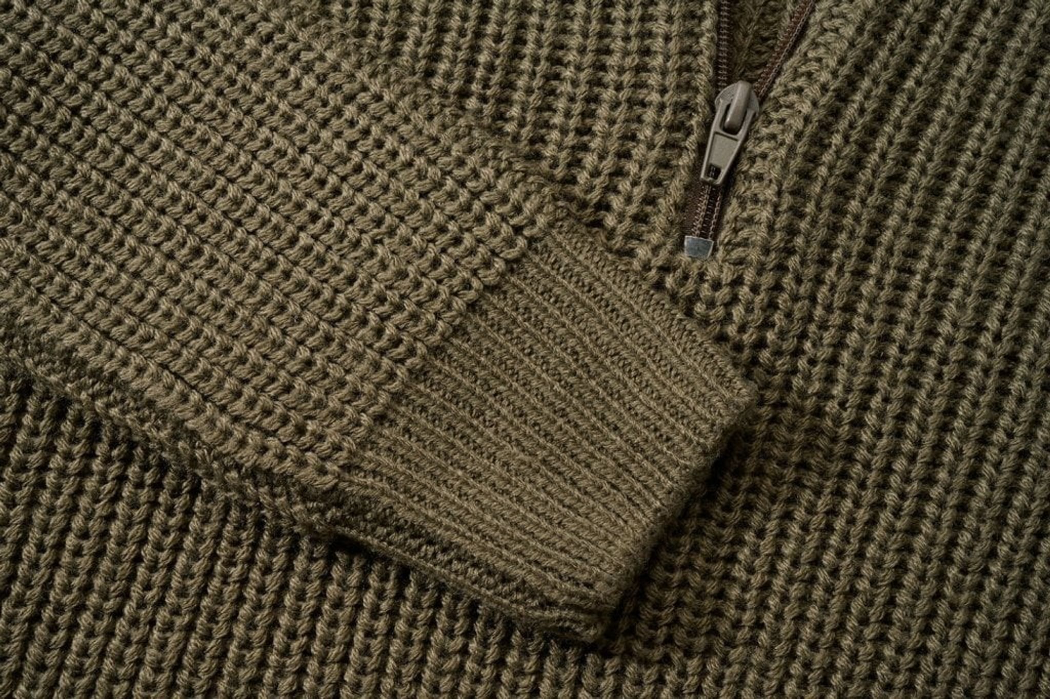 En fantastisk strikket sweater i oliven, der garanteret holder barnet varmt. Perfekt under en vindtæt jakke, da selve trøjen ikke beskytter så godt mod vind. Men det holder en behagelig varme.