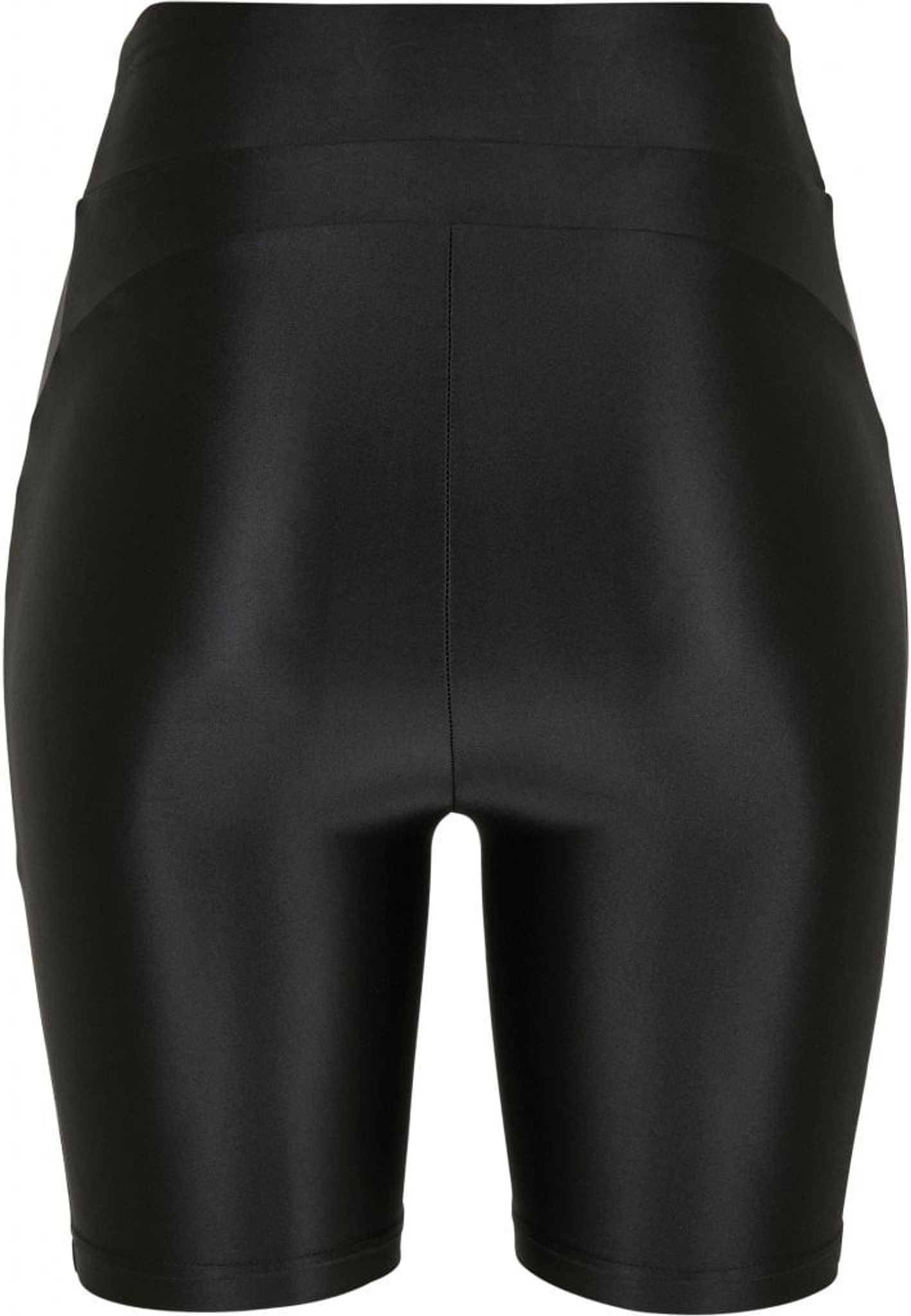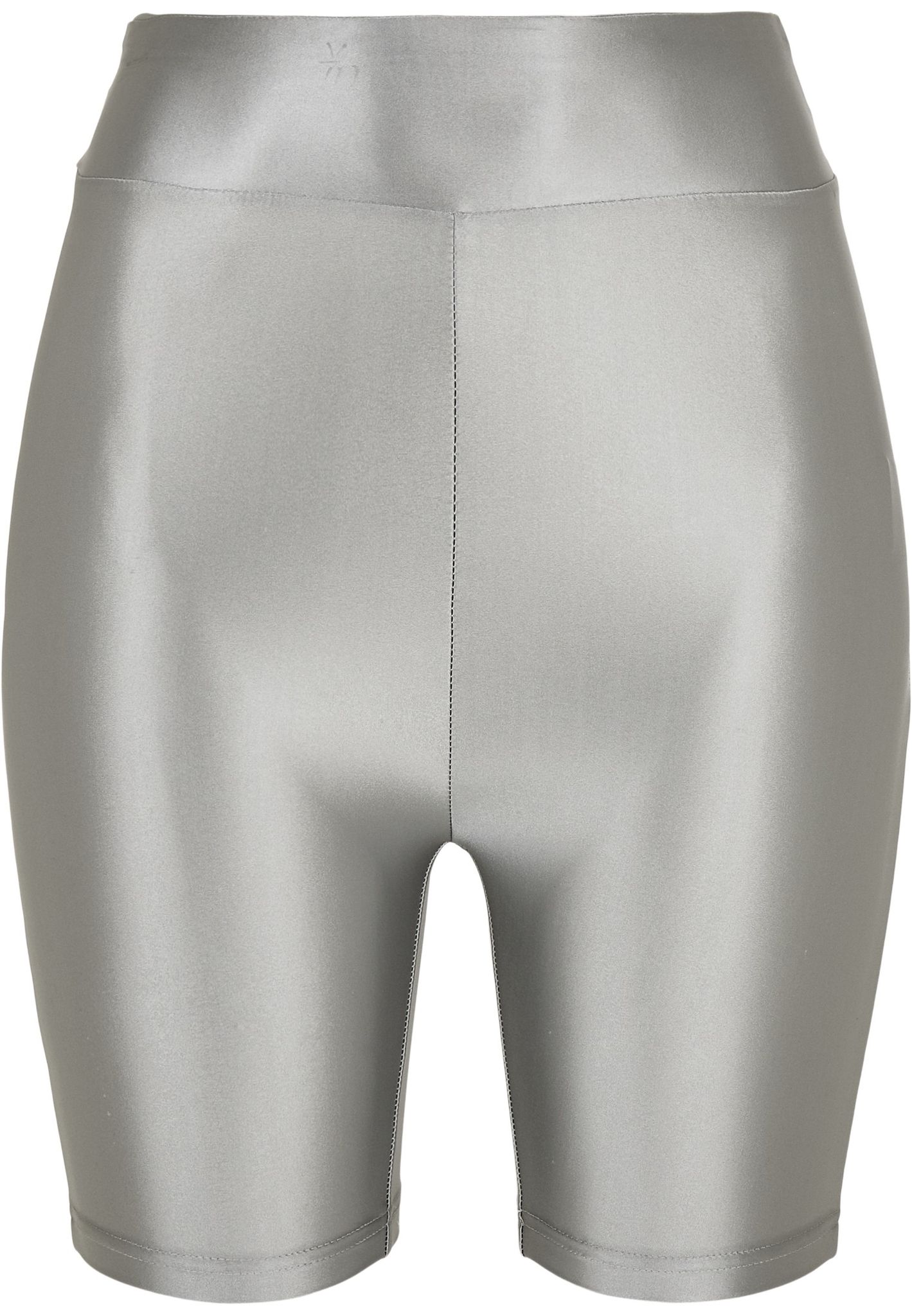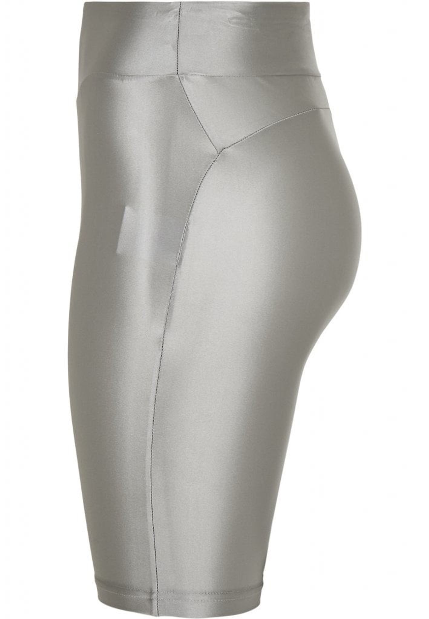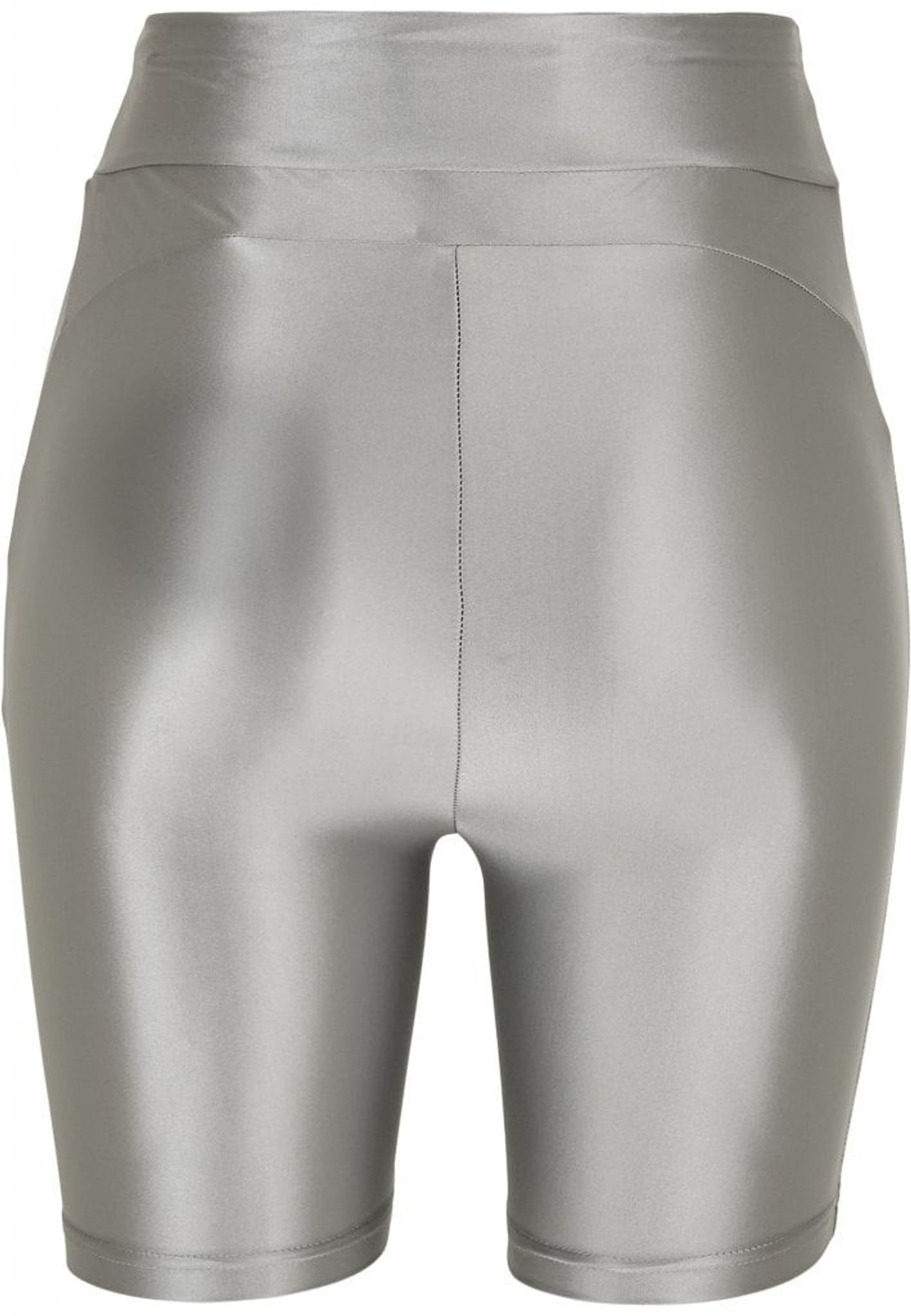 Denne cykelbukse har en høj talje og er lavet af et skinnende metalstof.