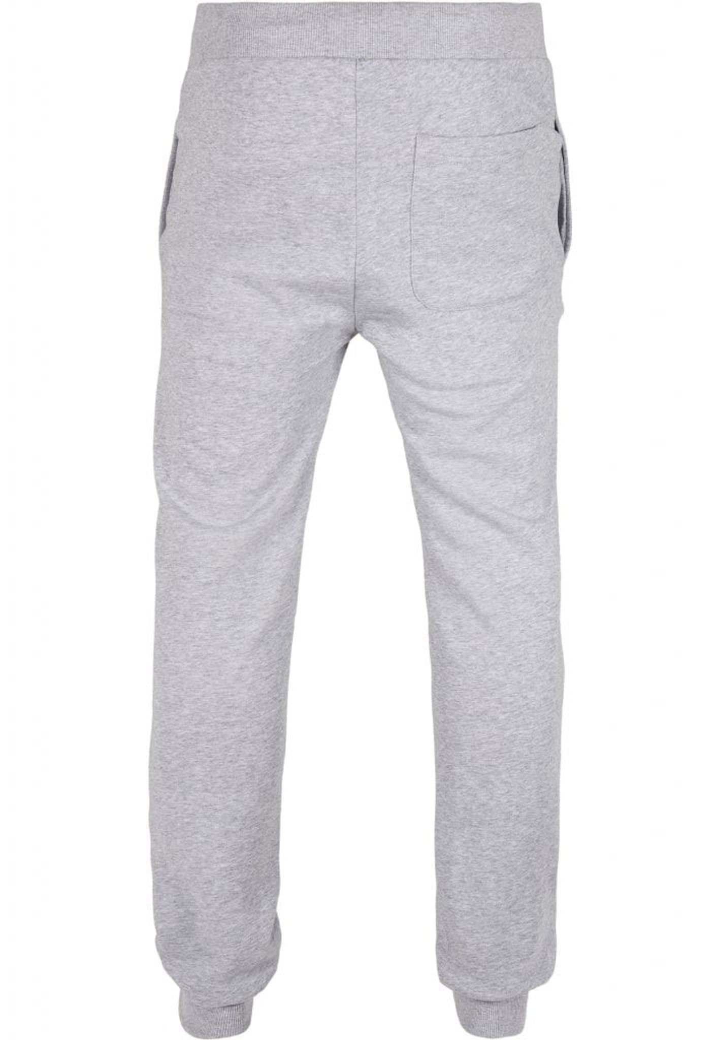 Et par bukser i blødt organisk stof med elastik i taljen og i benenderne.