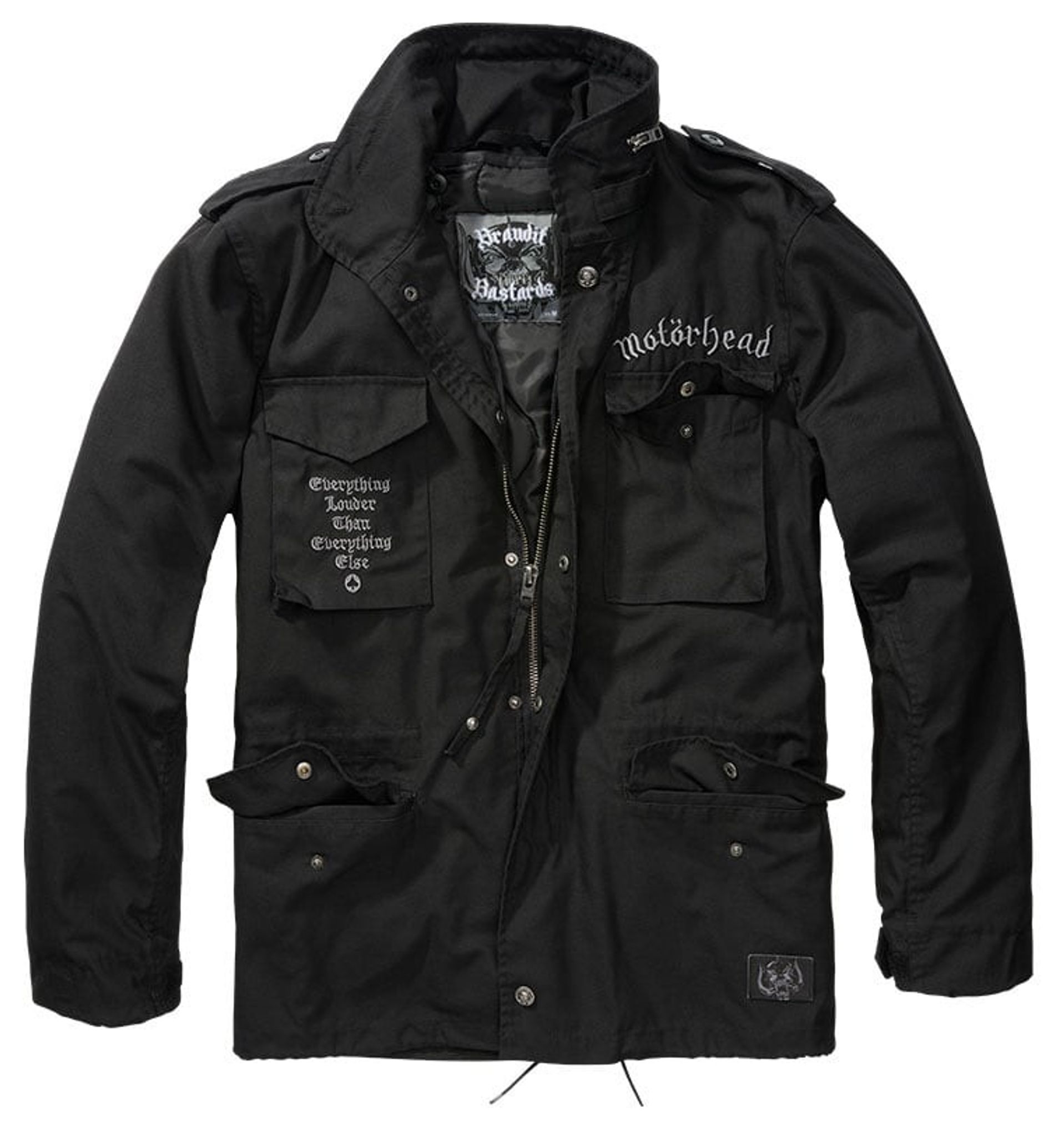 En virkelig eksklusiv merchandise fra Brandit Bastards med hårde detaljer. Her kan du se Motörheads logo over venstre brystlomme og på højre brystlomme er teksten "Everything Louder Than Everything Else". I bunden er der en læderlapp med Warpig.