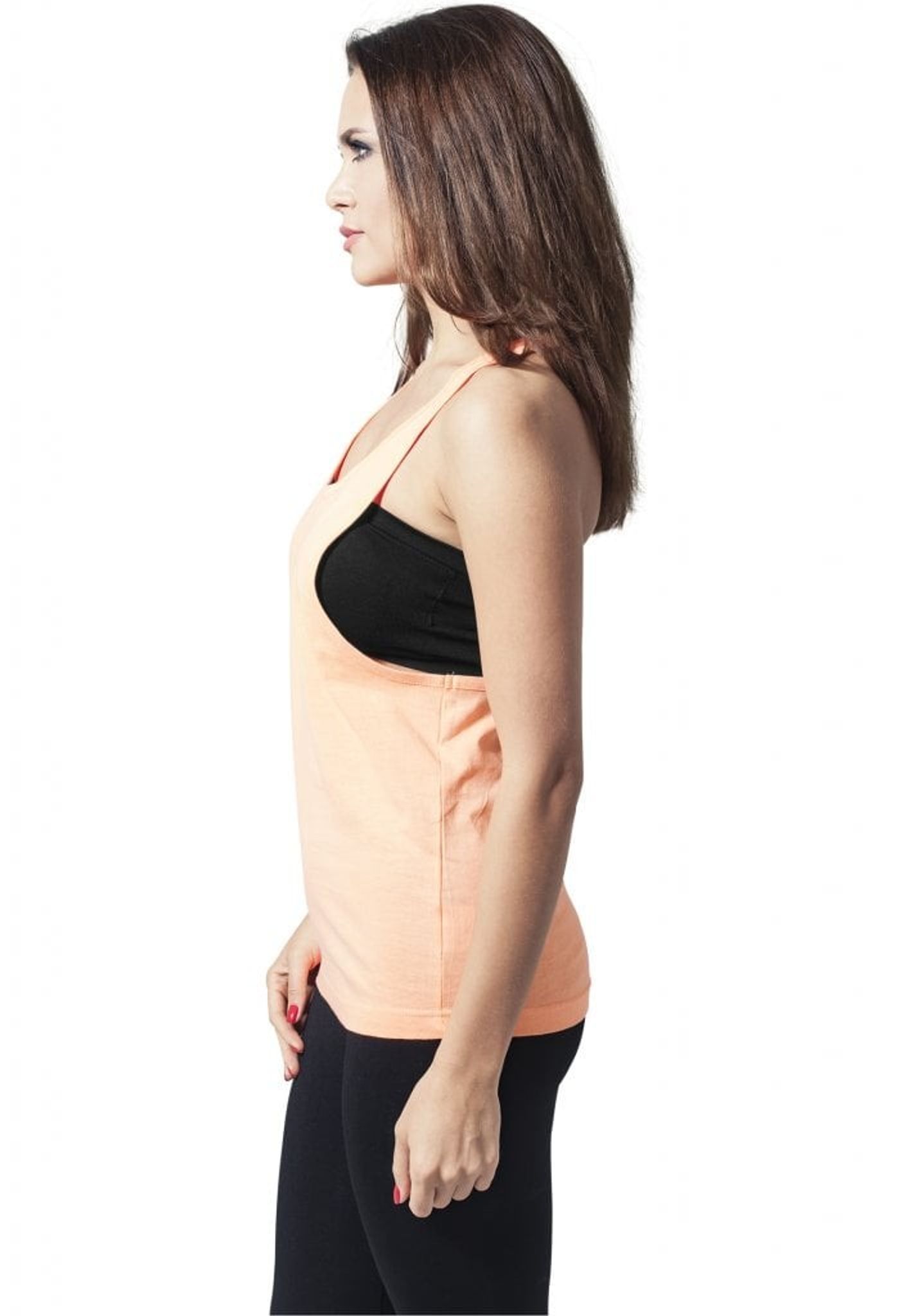 Et sporty linned i lyse farver. Kombiner toppen med et par sorte bukser og en sort bh for at det ser godt ud.