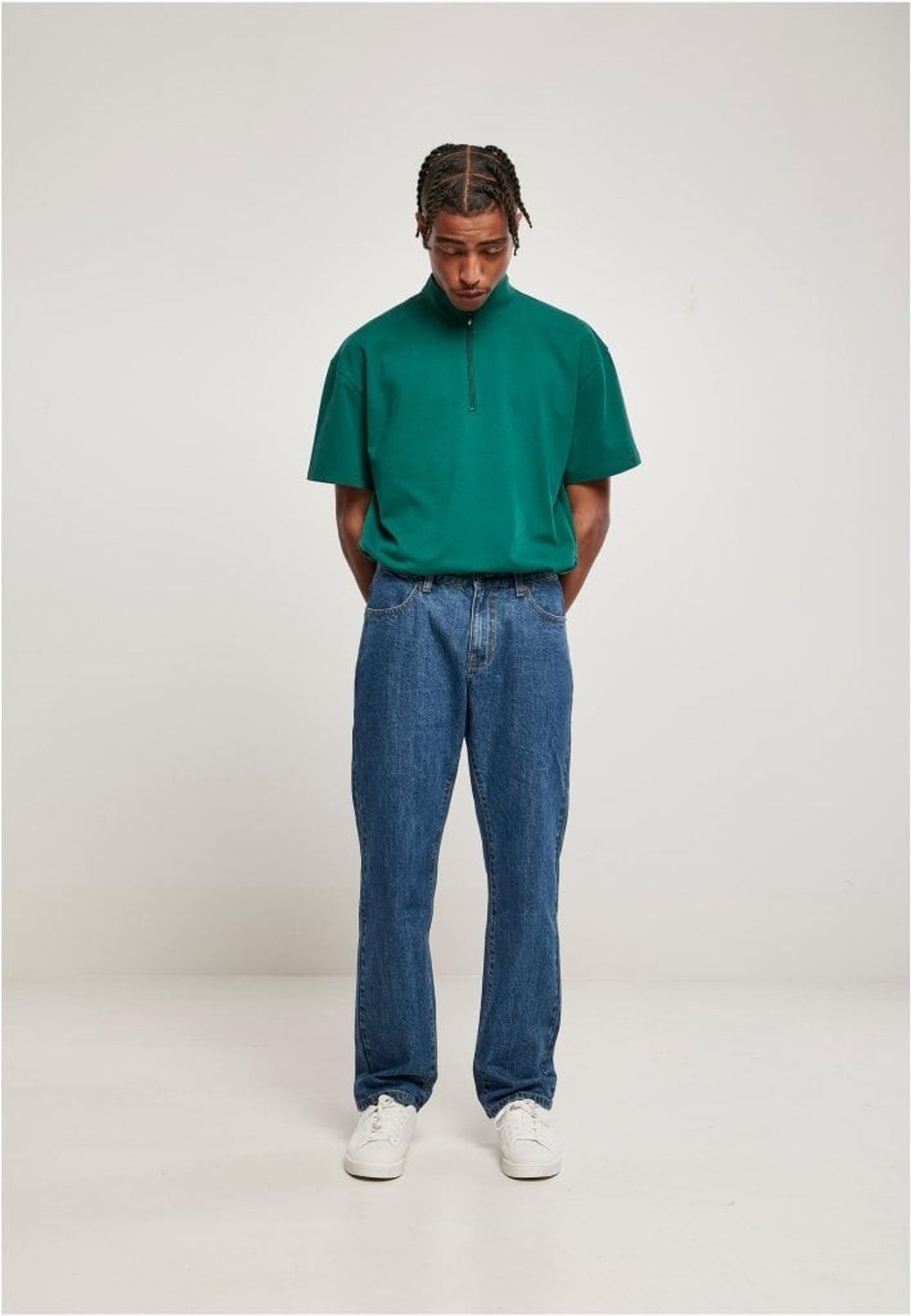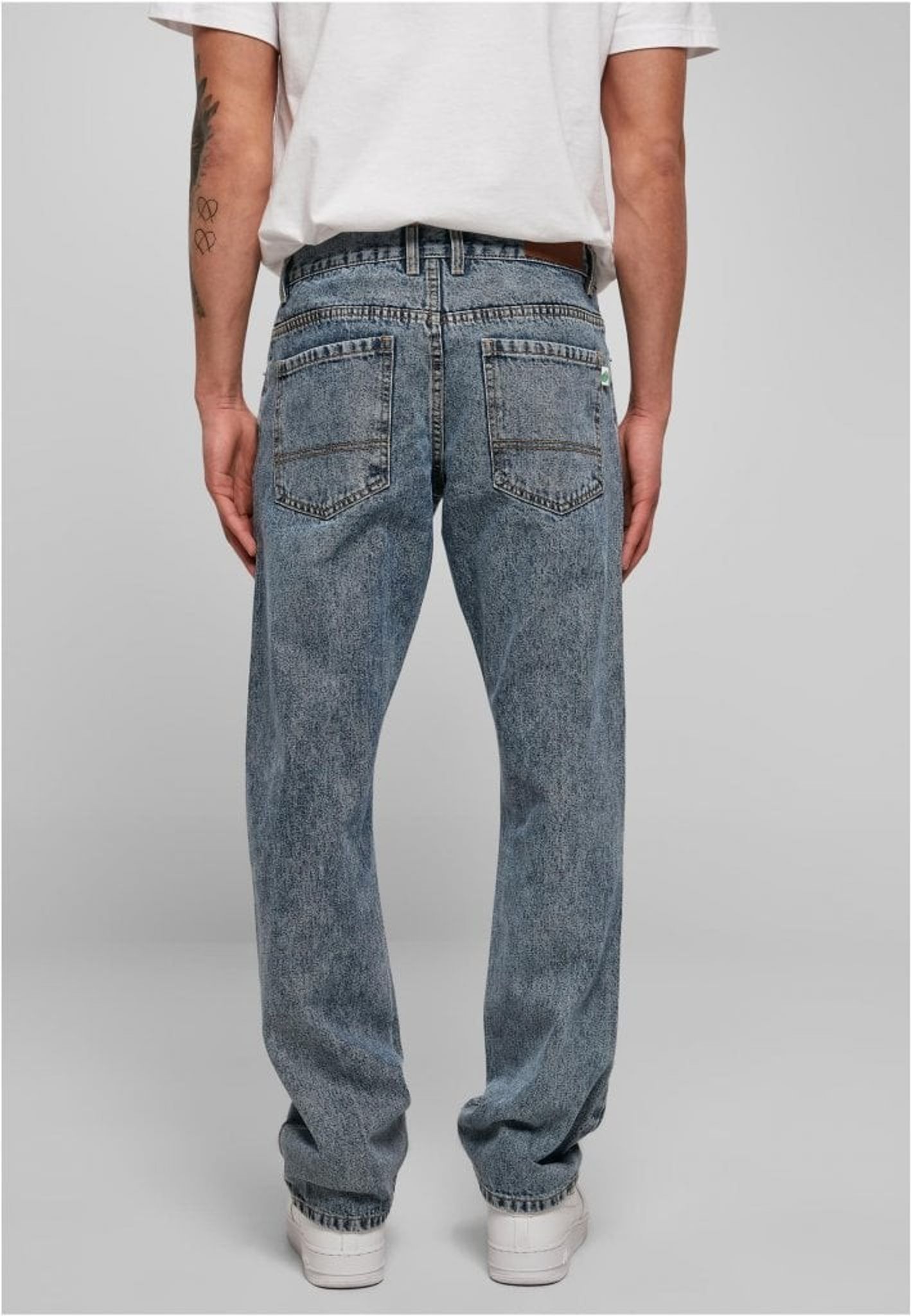 Disse økologiske jeans til mænd har lige, lange ben og store påsatte lommer på ryggen. Traditionelle funktioner såsom sidelommer, et bærestykke over numsen og en linning med bæltestropper fuldender jeansene. De er lavet af 50% økologisk bomuld og pasformen er normal.