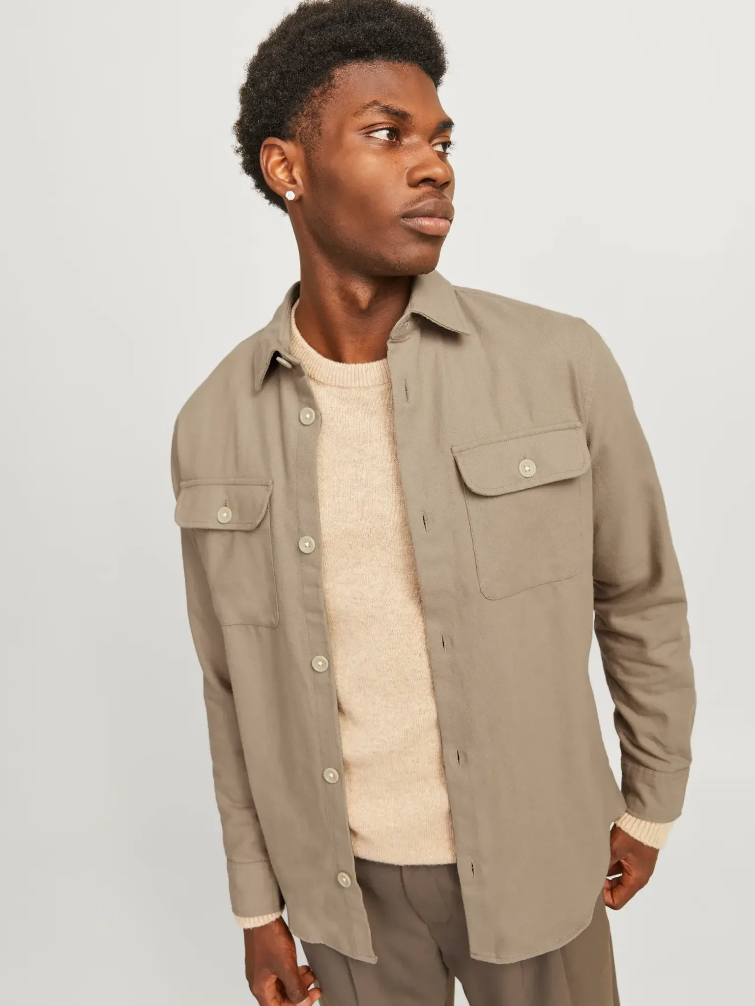 Denna overshirt för män är en mångsidig del av garderoben som passar utmärkt att bära under en jacka eller som ett fristående plagg. Med en klassisk skjortkrage och långärmade design, erbjuder den både stil och komfort.