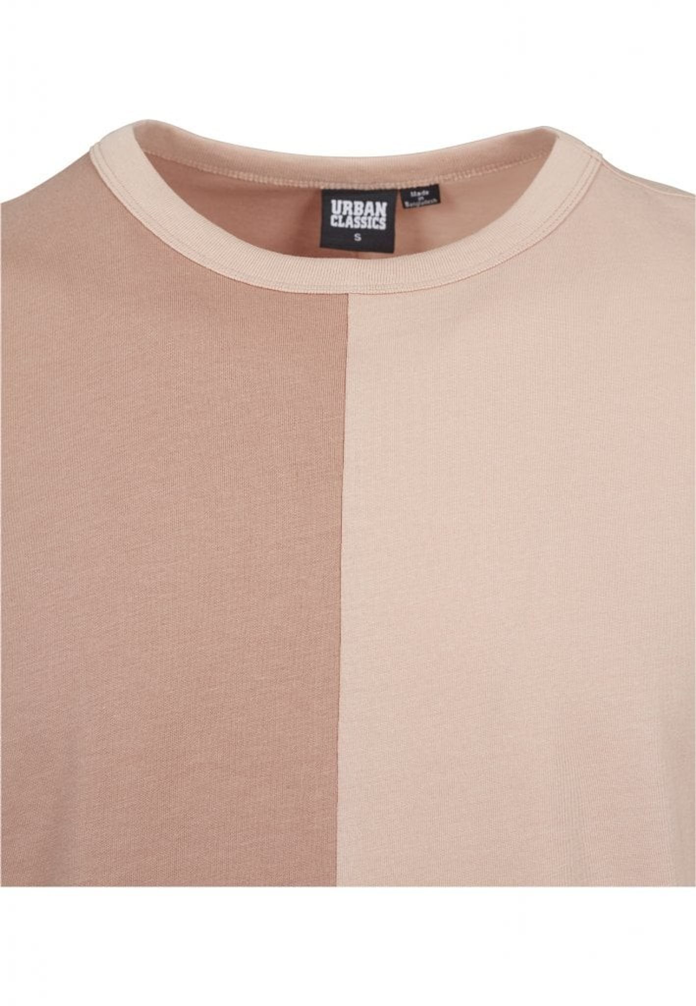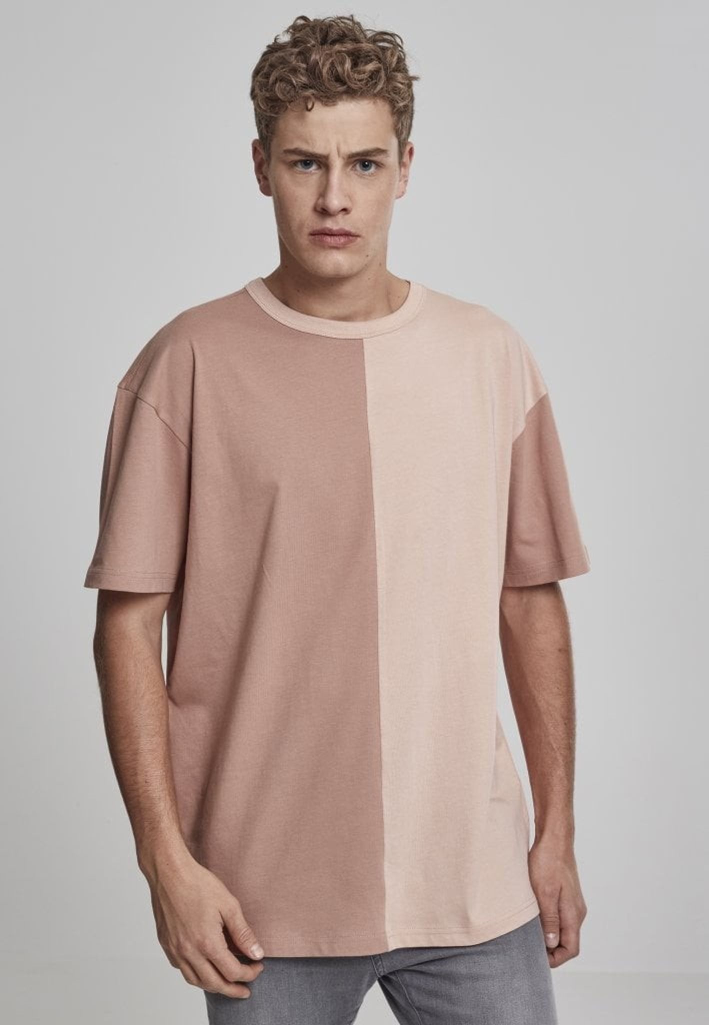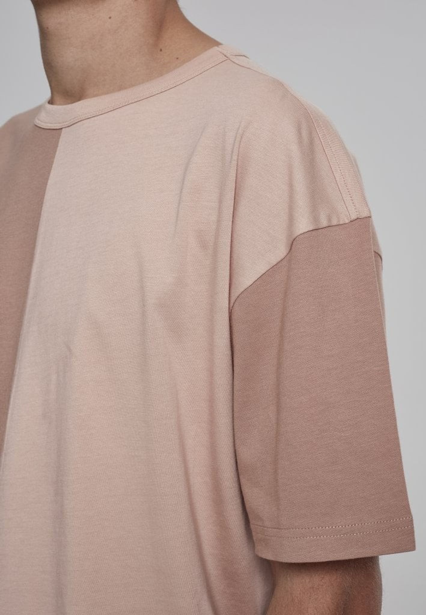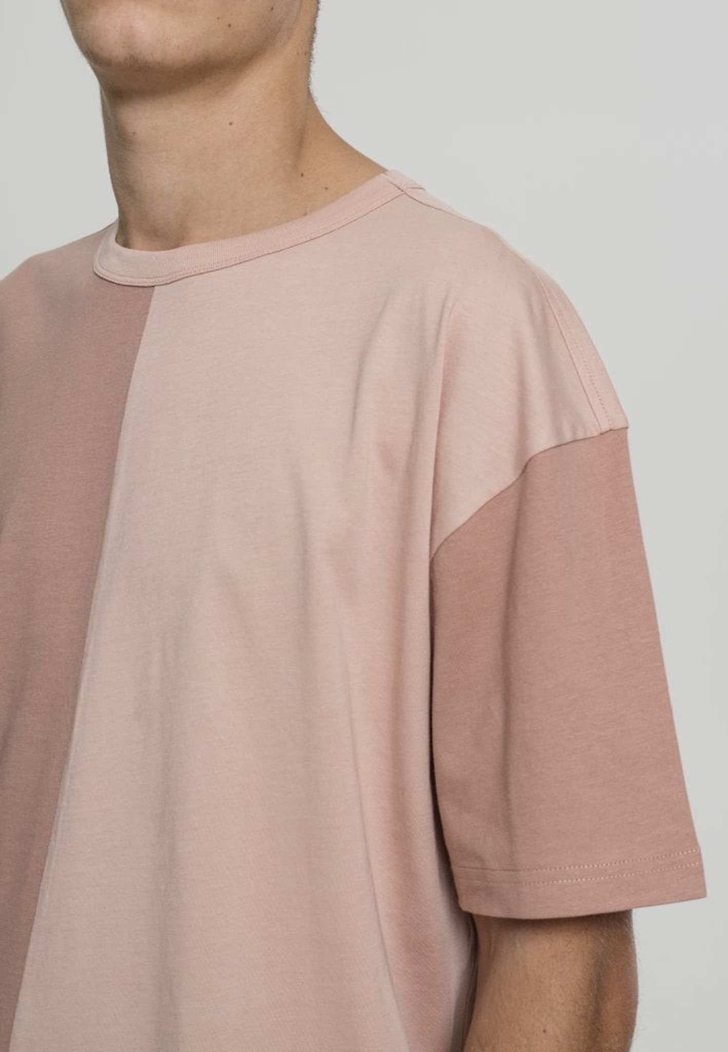 En hård T-shirt opdelt i to kontrastfarver. En skarp linje i midten af tøjet.