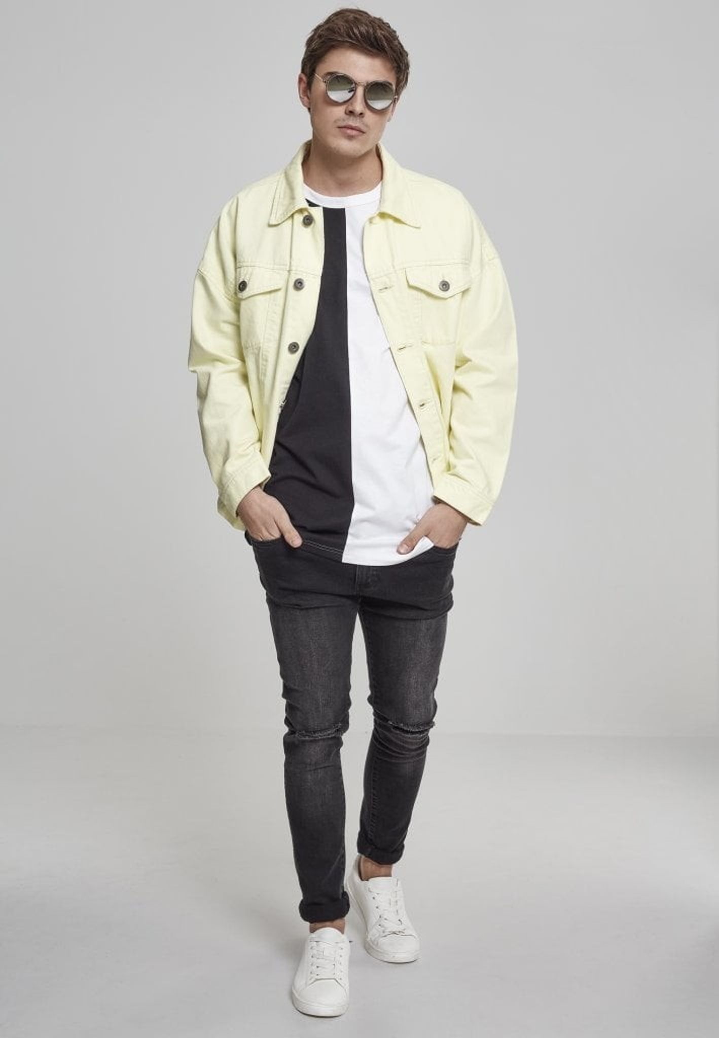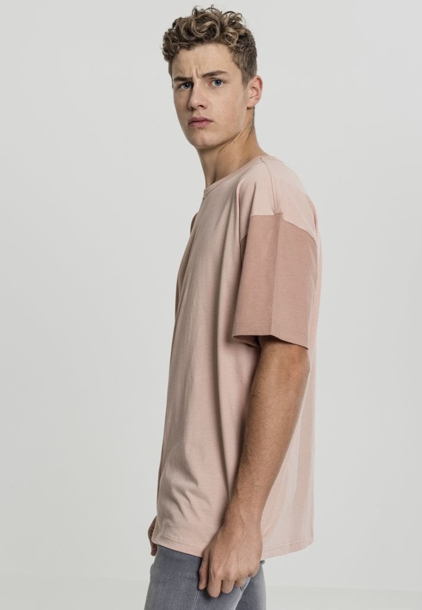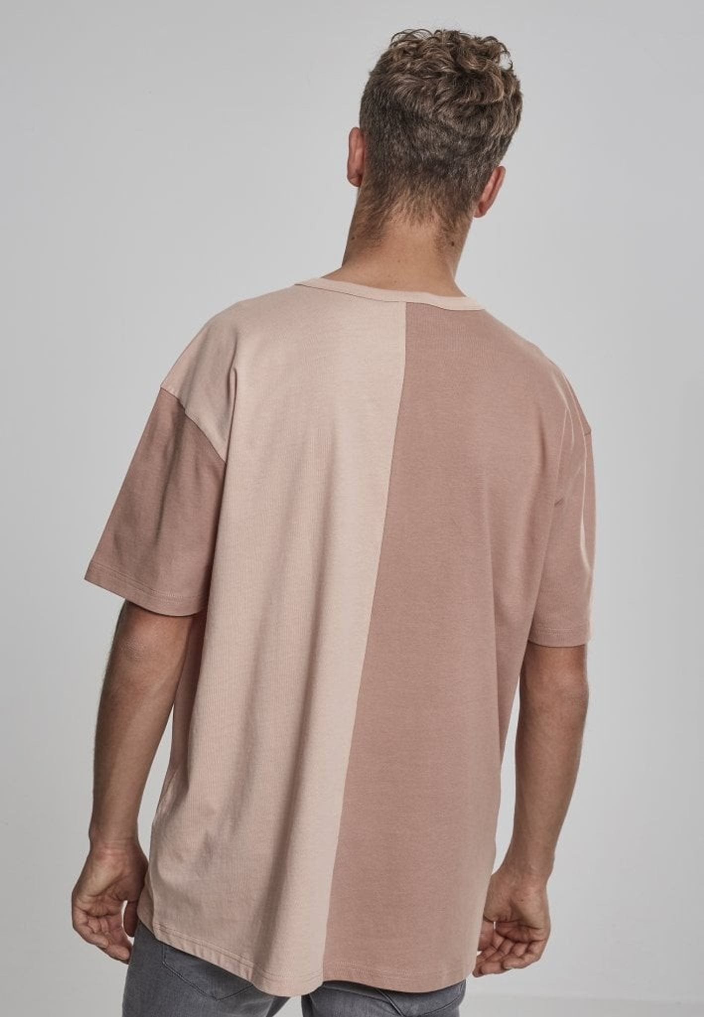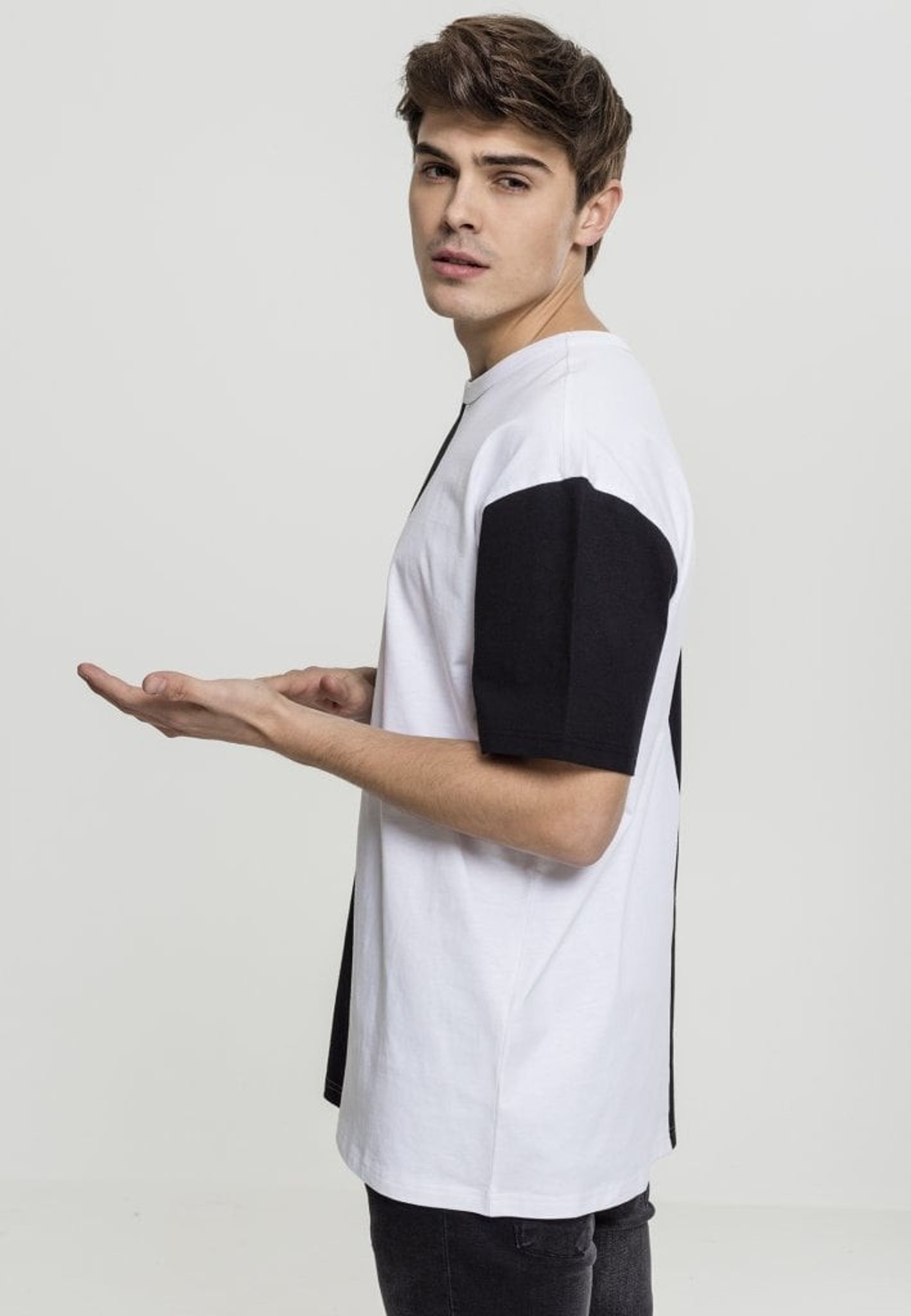 En hård T-shirt opdelt i to kontrastfarver. En skarp linje i midten af tøjet.