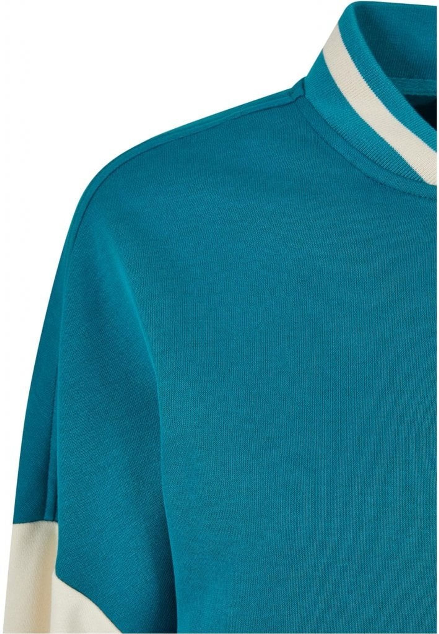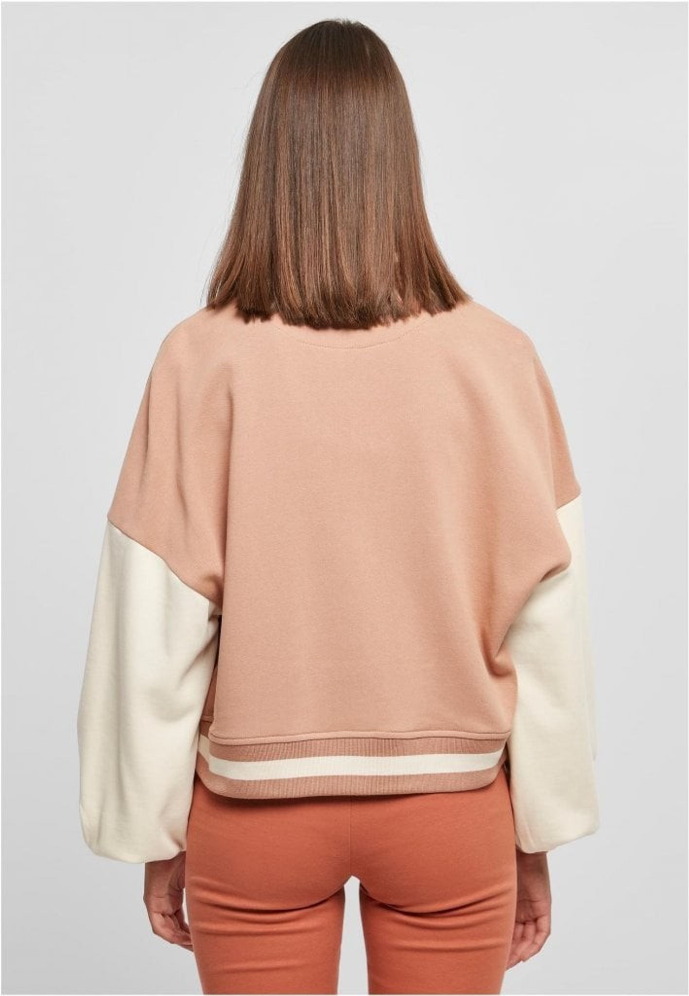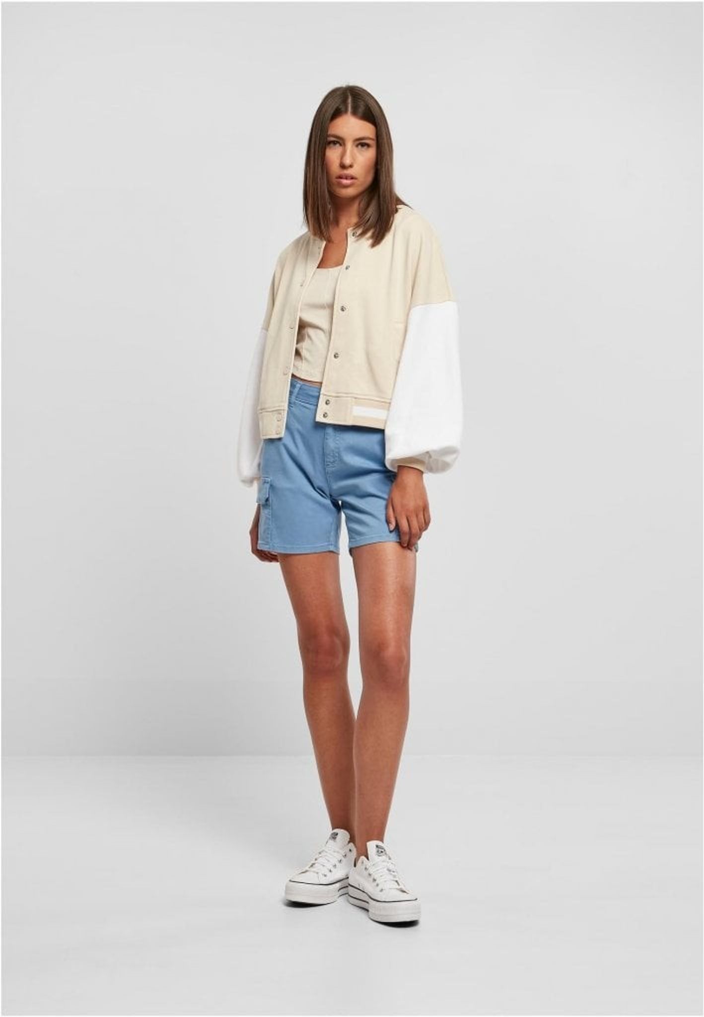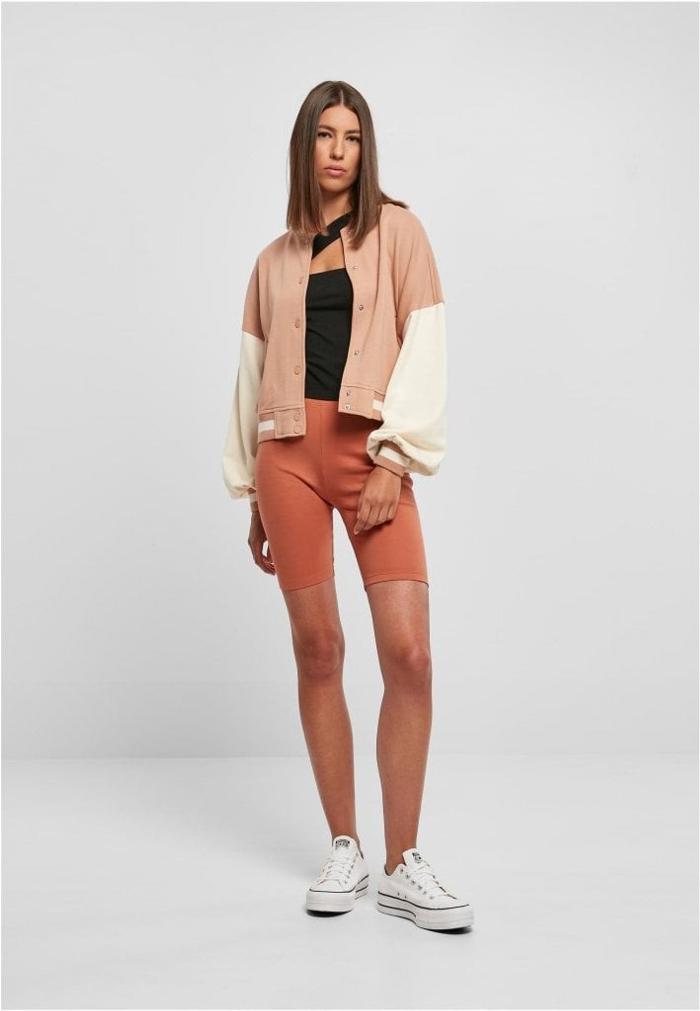 Denne succesfulde damer college jakke tilfredsstiller fuldt ud. Strikkene manchetter på kanten, kraven og ærmerne er designet i to forskellige farver og giver jakken dens college-appel. Jakkens to lommer har trykknapper såvel som hovedlukningen foran.