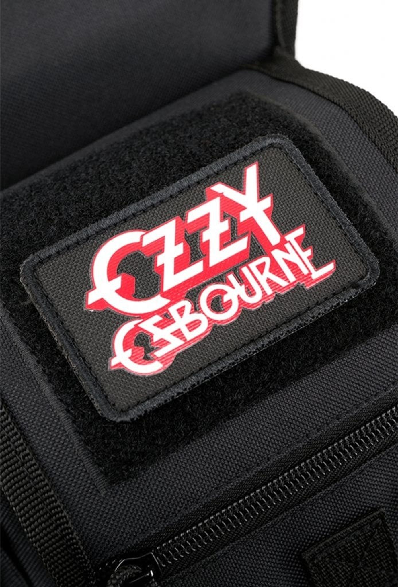 Bentasken er designet med kærlighed til Ozzy Osbourne og har et velcro-panel på frontlommeklappen, hvor du kan fastgøre det medfølgende Ozzy Osbourne-plaster. Derudover har tasken metalstifter, der pryder bentasken og giver dig mulighed for at vise din loyalitet til "The Prince of Darkness".