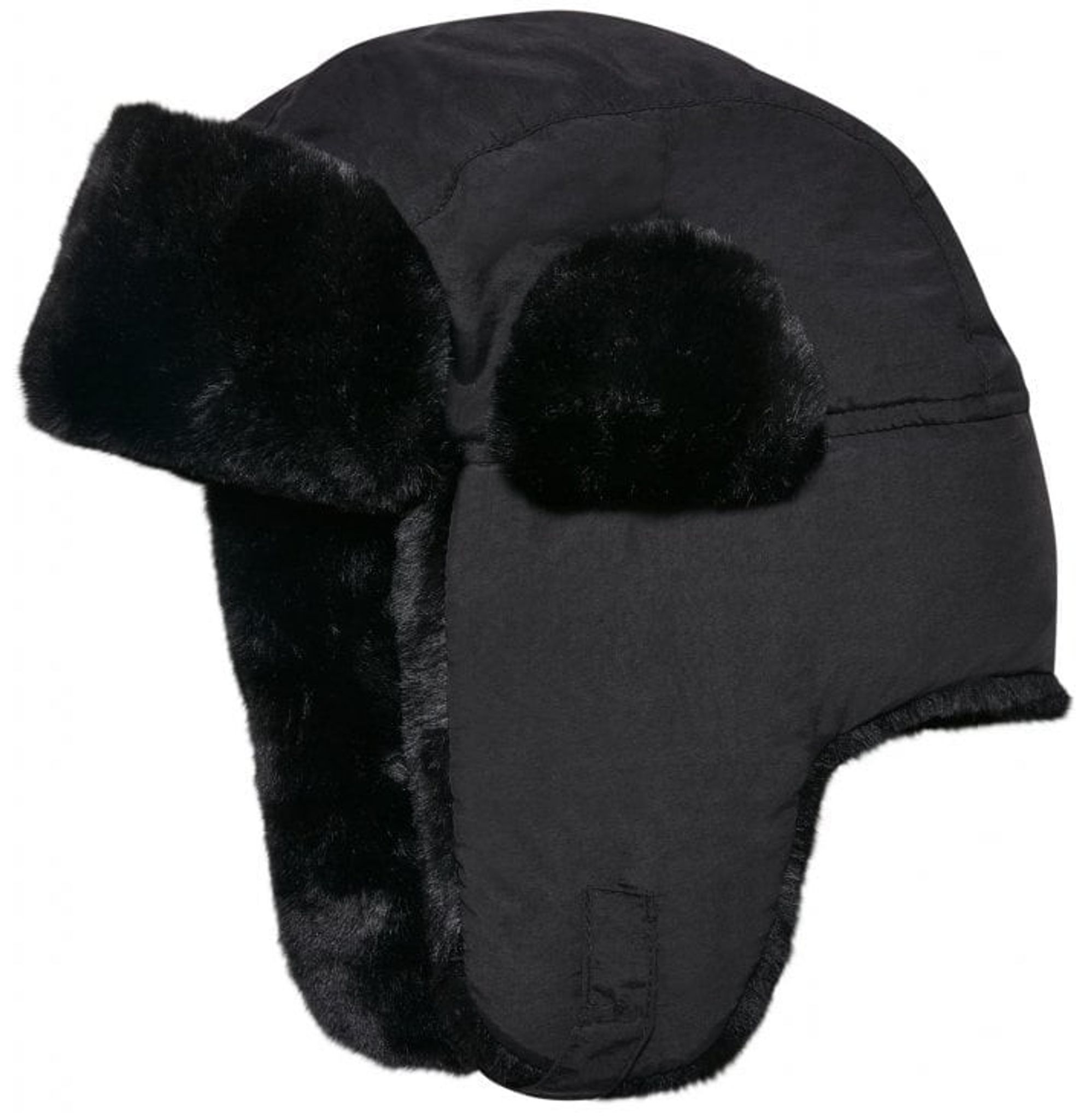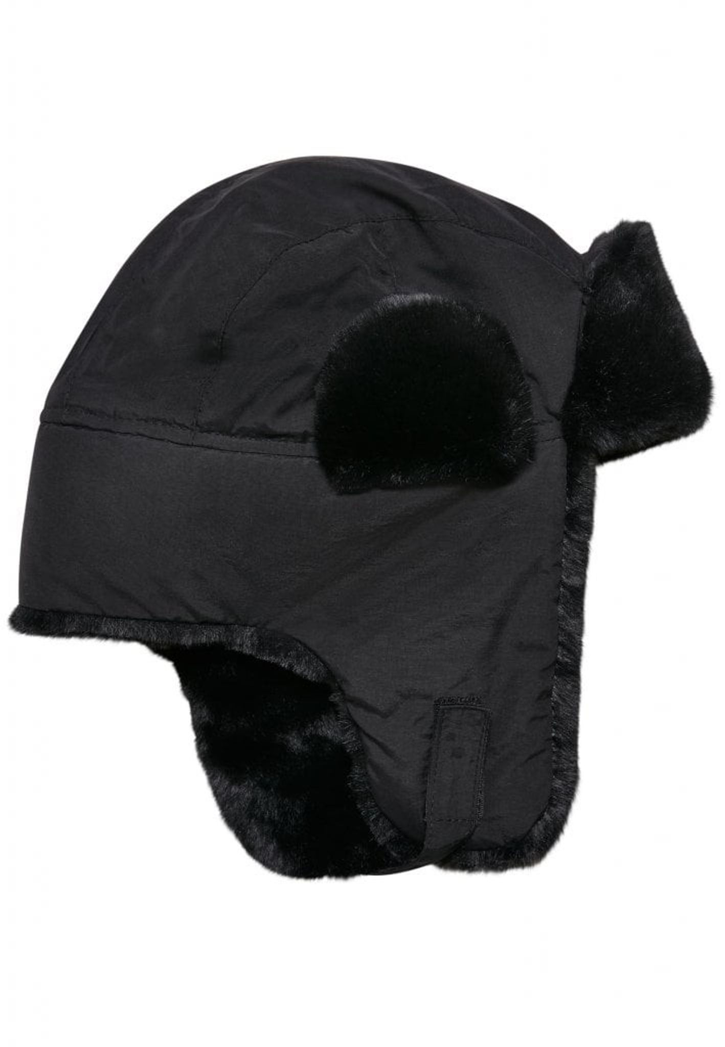 Denne pelshat er syet med lange, robuste øreflipper, der kan sættes fast under hagen med velcro, så den sidder tæt mod hovedet og holder ørerne varme.