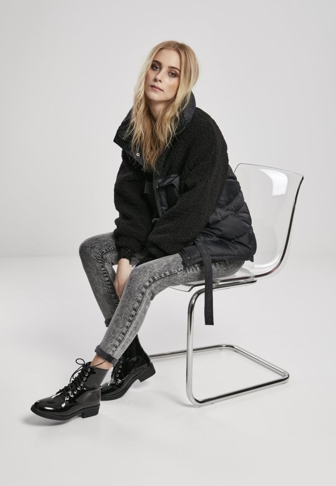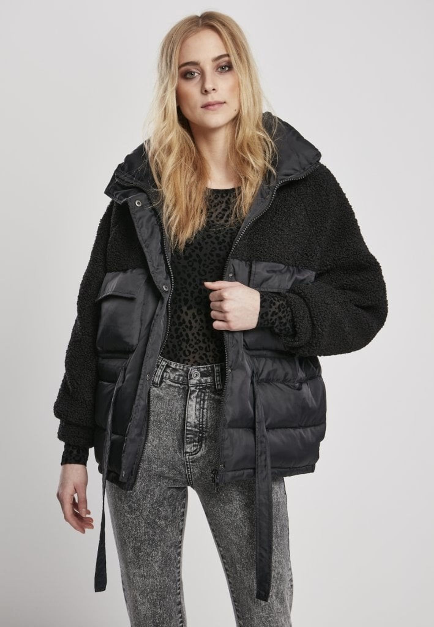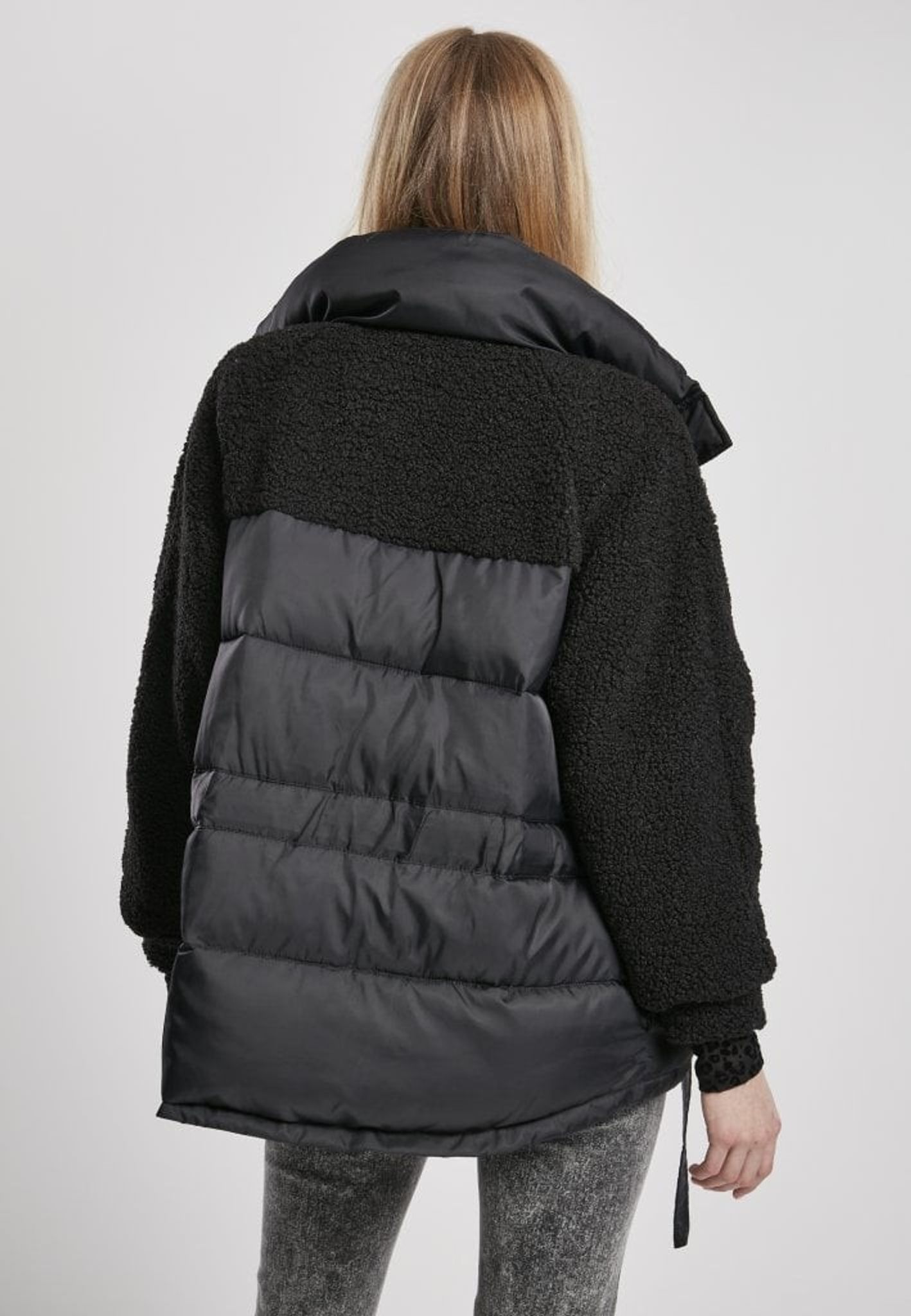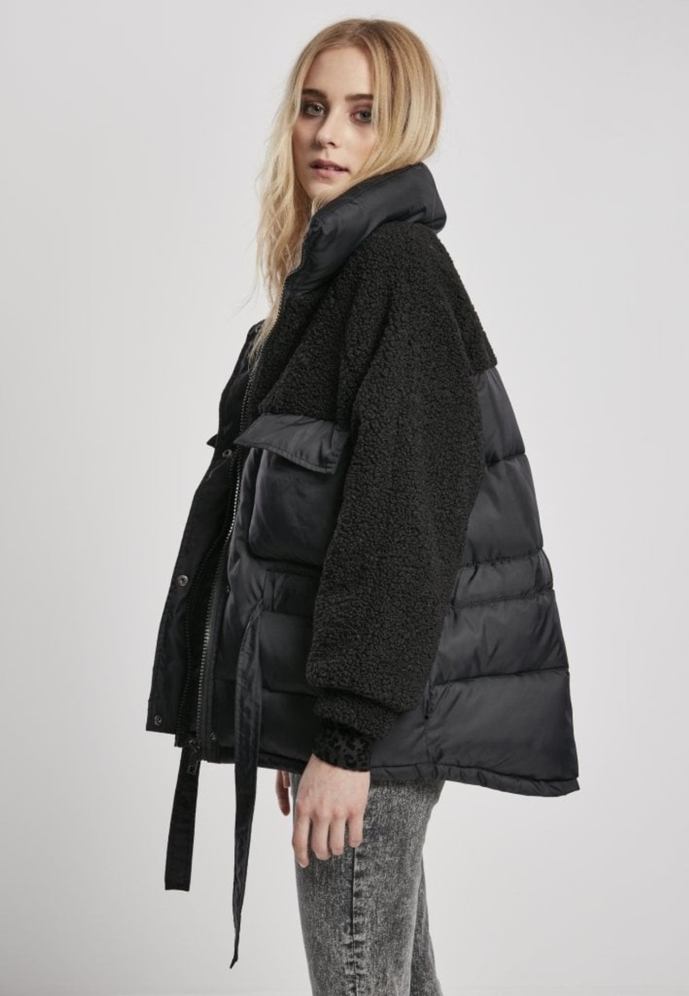Pufferjakke med teddy mix dame
