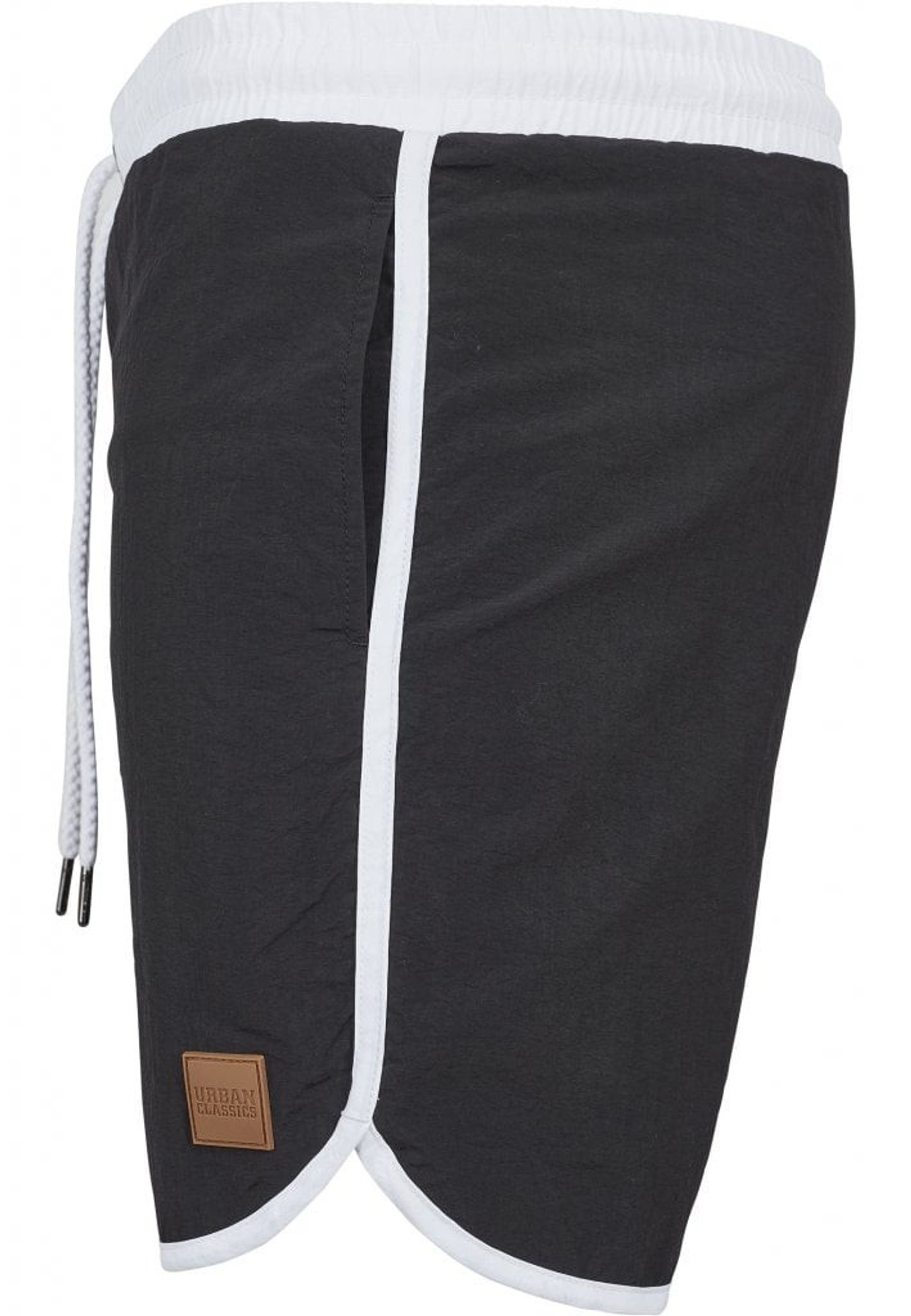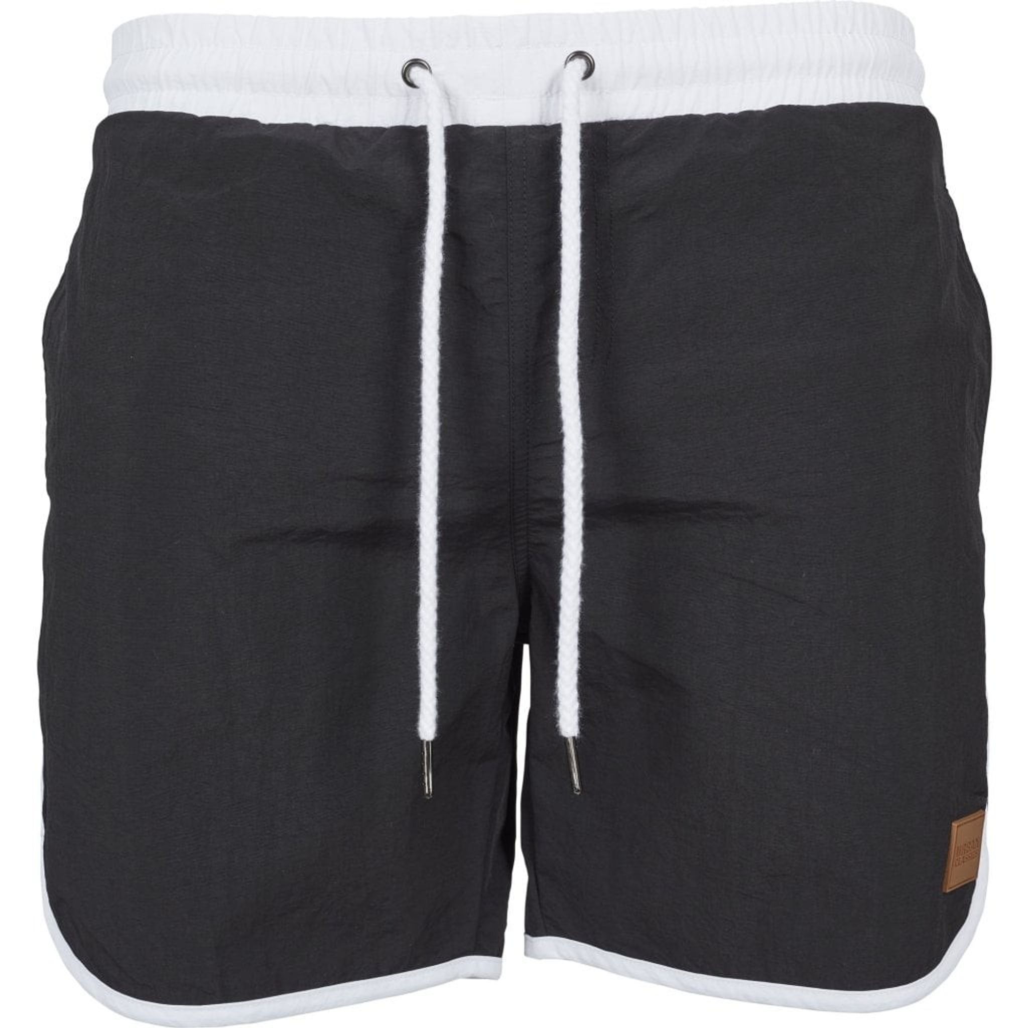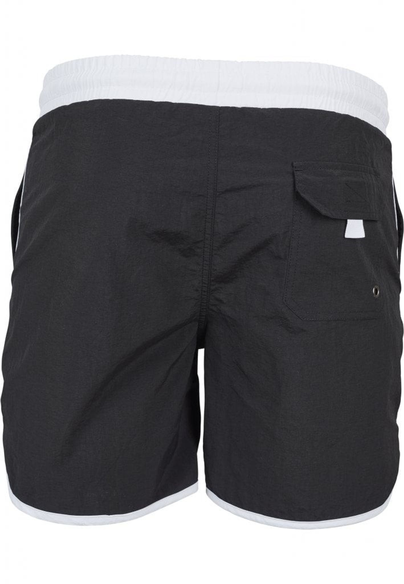 Retro sort sort bad shorts med hvide kanter og ærmer, der giver badedragt en fin kontrast mellem farverne.