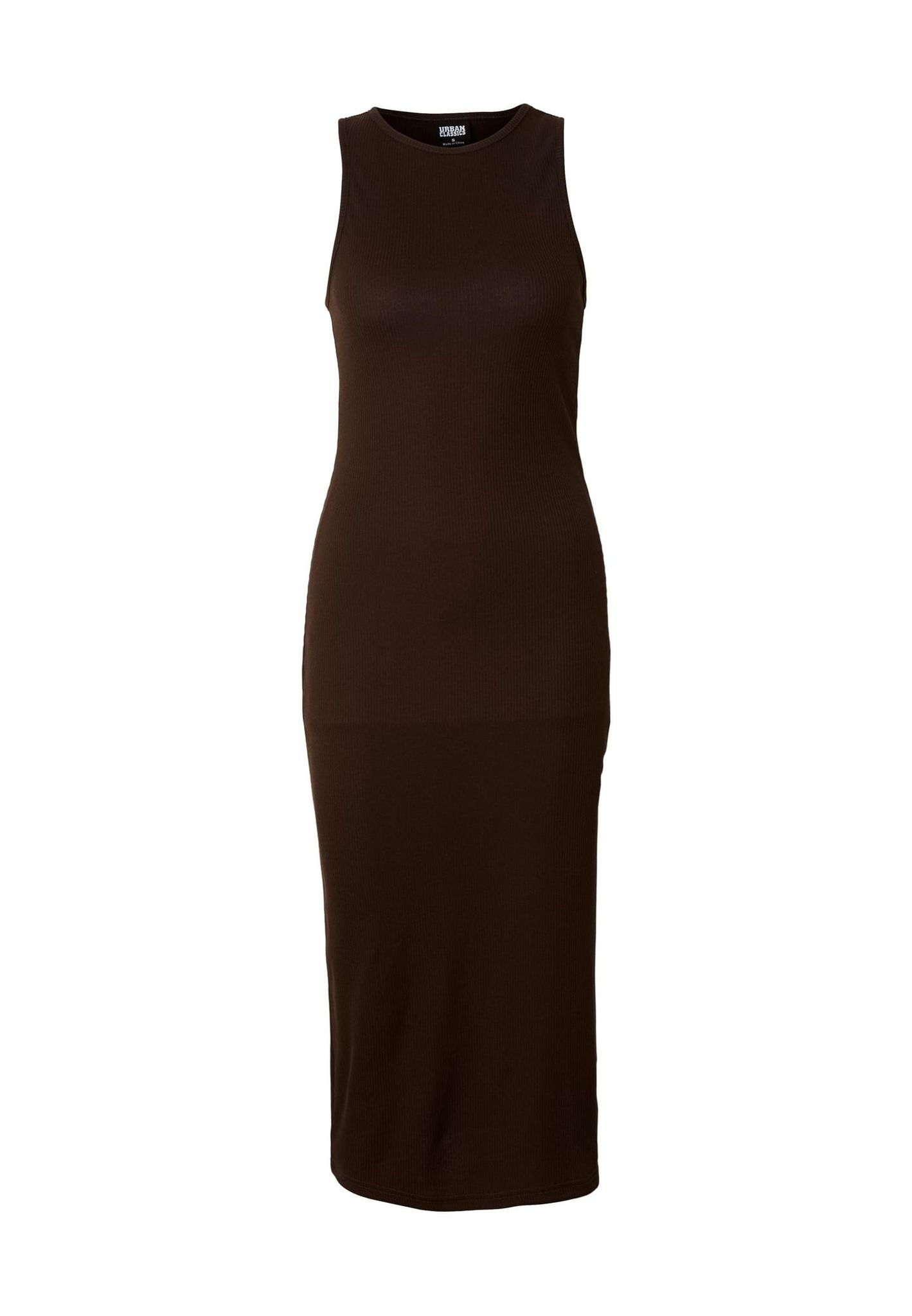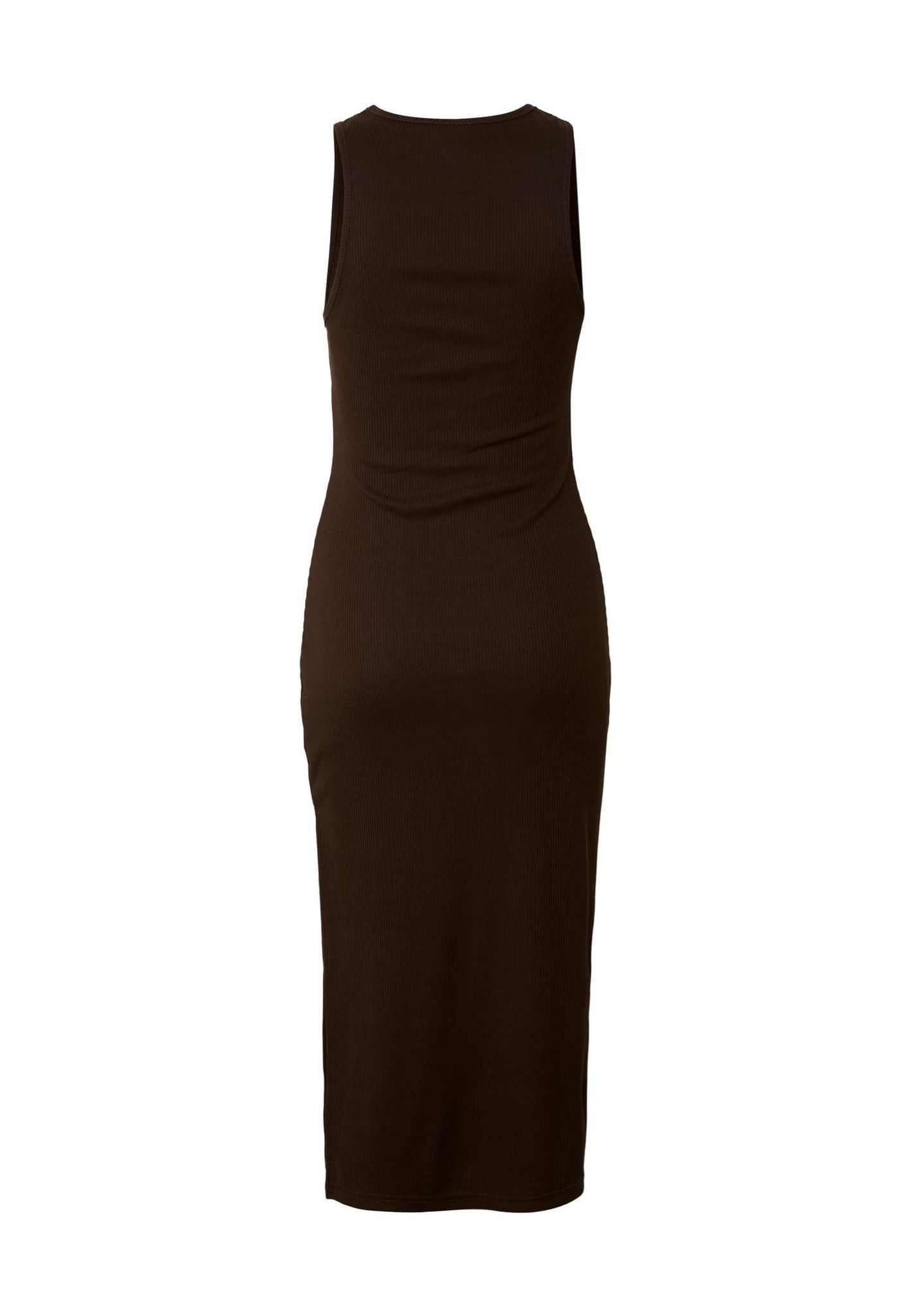 Klänning för dam i brun med figurnära passform och medeltjock tygkänsla.