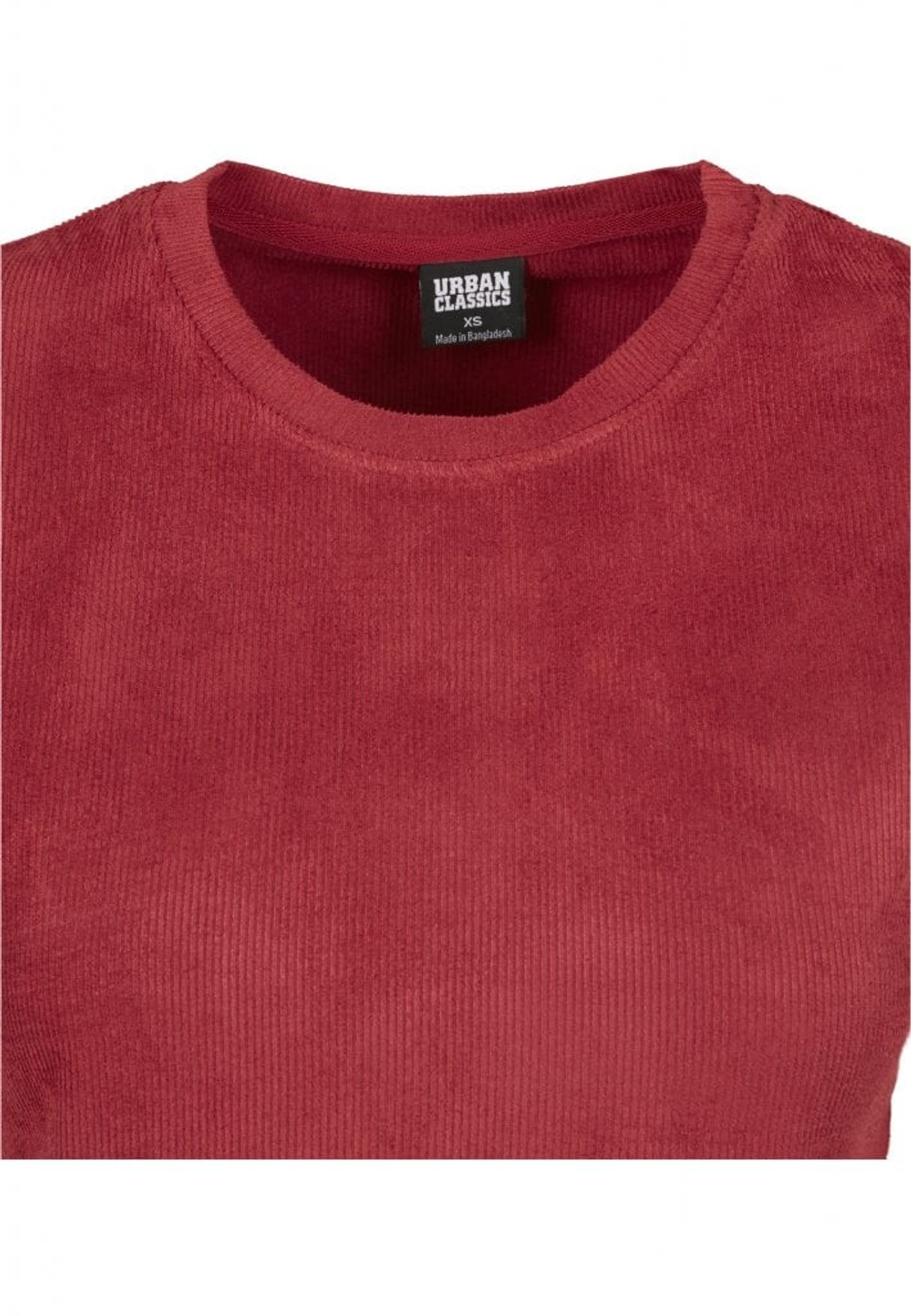 May-sweateren har et ribbet blødt stof og er lige i bunden.
