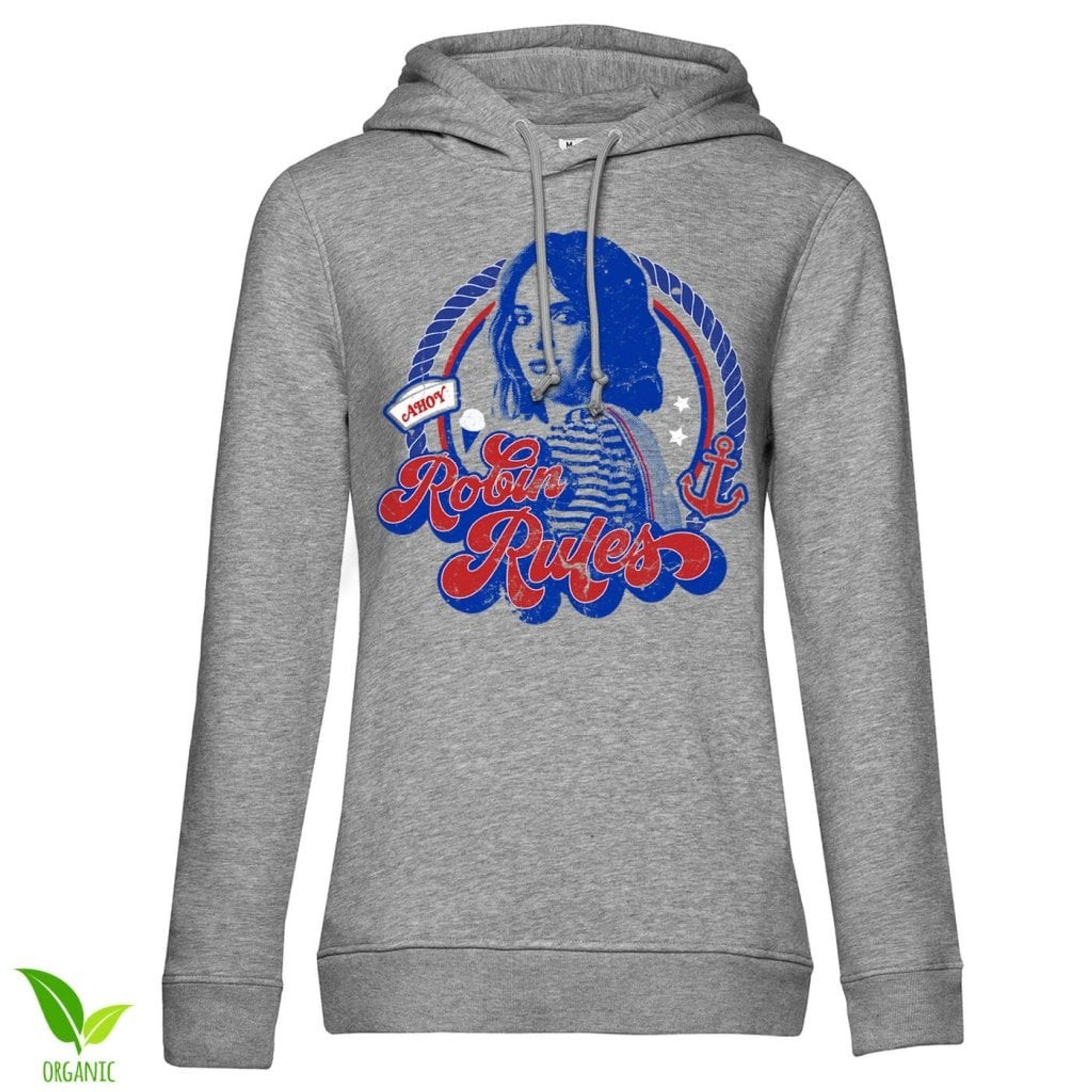 Er du også besat af fremmed ting og alle de skøre begivenheder, der finder sted i den lille by Hawkins? Så vil du elske denne hætte! Med en cool og afslappet stil er denne Robin Rules Girls Hoodie perfekt til alle fans af den populære tv -serie. Du kan ligne en dårlig røv karakter fra 80'erne, mens du forbliver varm og behagelig.