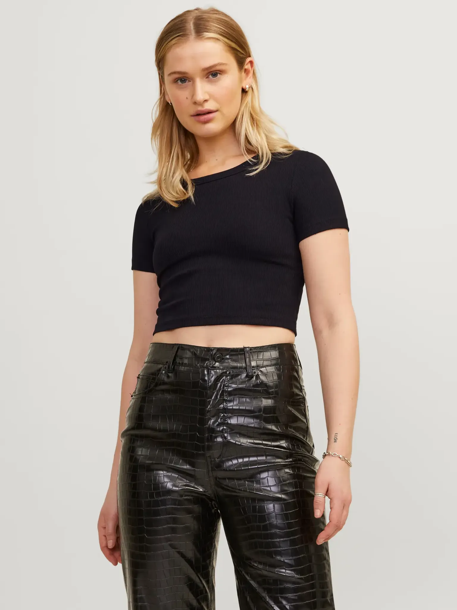 Denna t-shirt har en rund halsringning och korta ärmar, vilket ger en avslappnad och stilren look. Den är designad med en cropped längd som passar perfekt till olika outfitkombinationer.