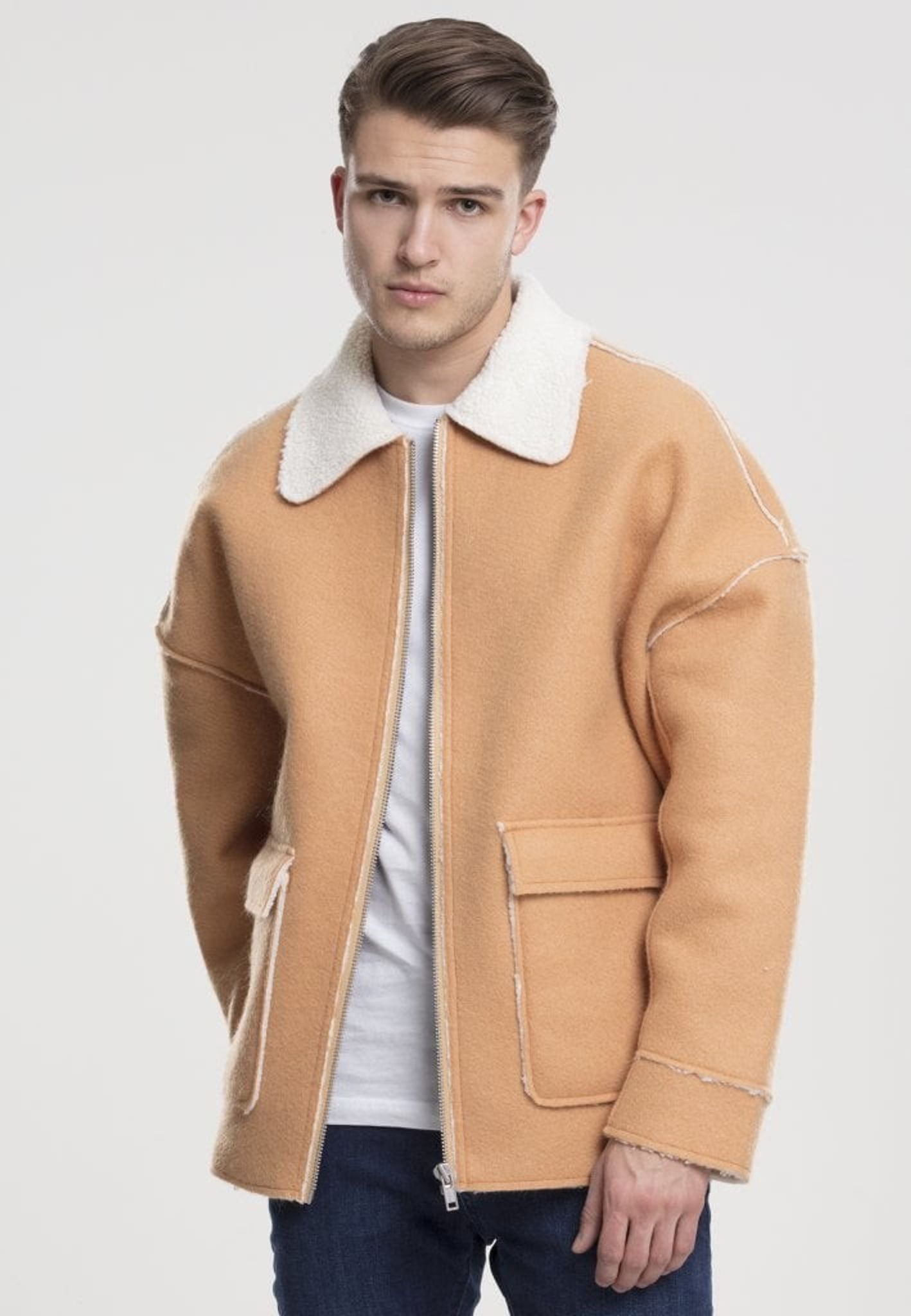 Sherpa jacket in suede imitation.