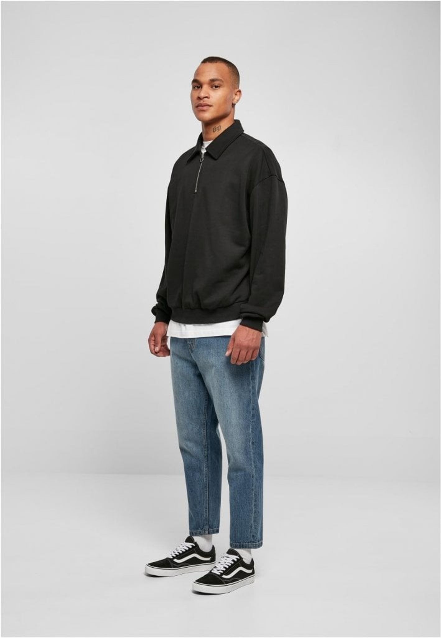 Shirt Collar Crew er en moderne sweatshirt til mænd, der kombinerer stil og komfort. Den har en krave med lynlås og en trendy oversize pasform med faldede skuldre og ekstra lange ærmer.