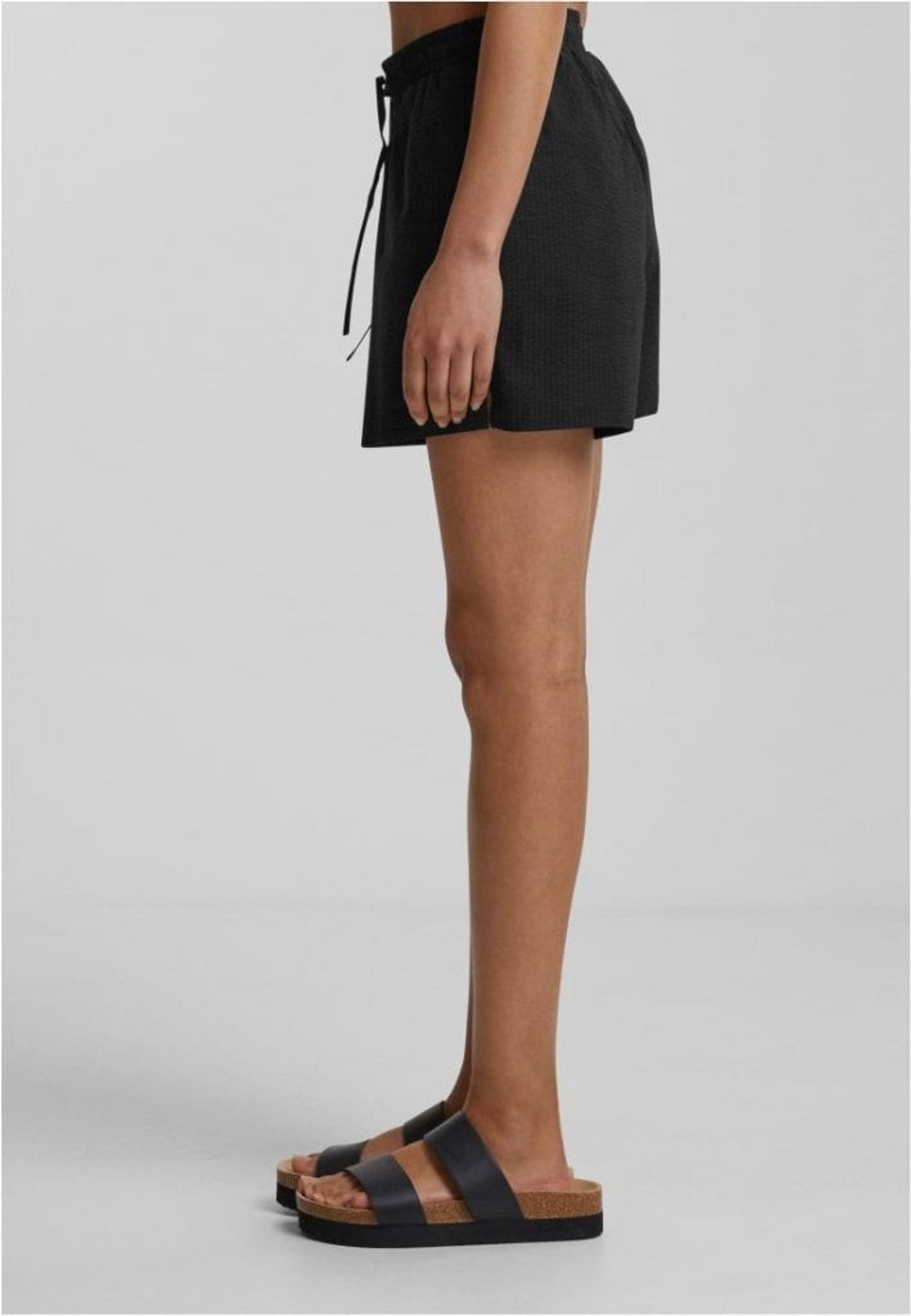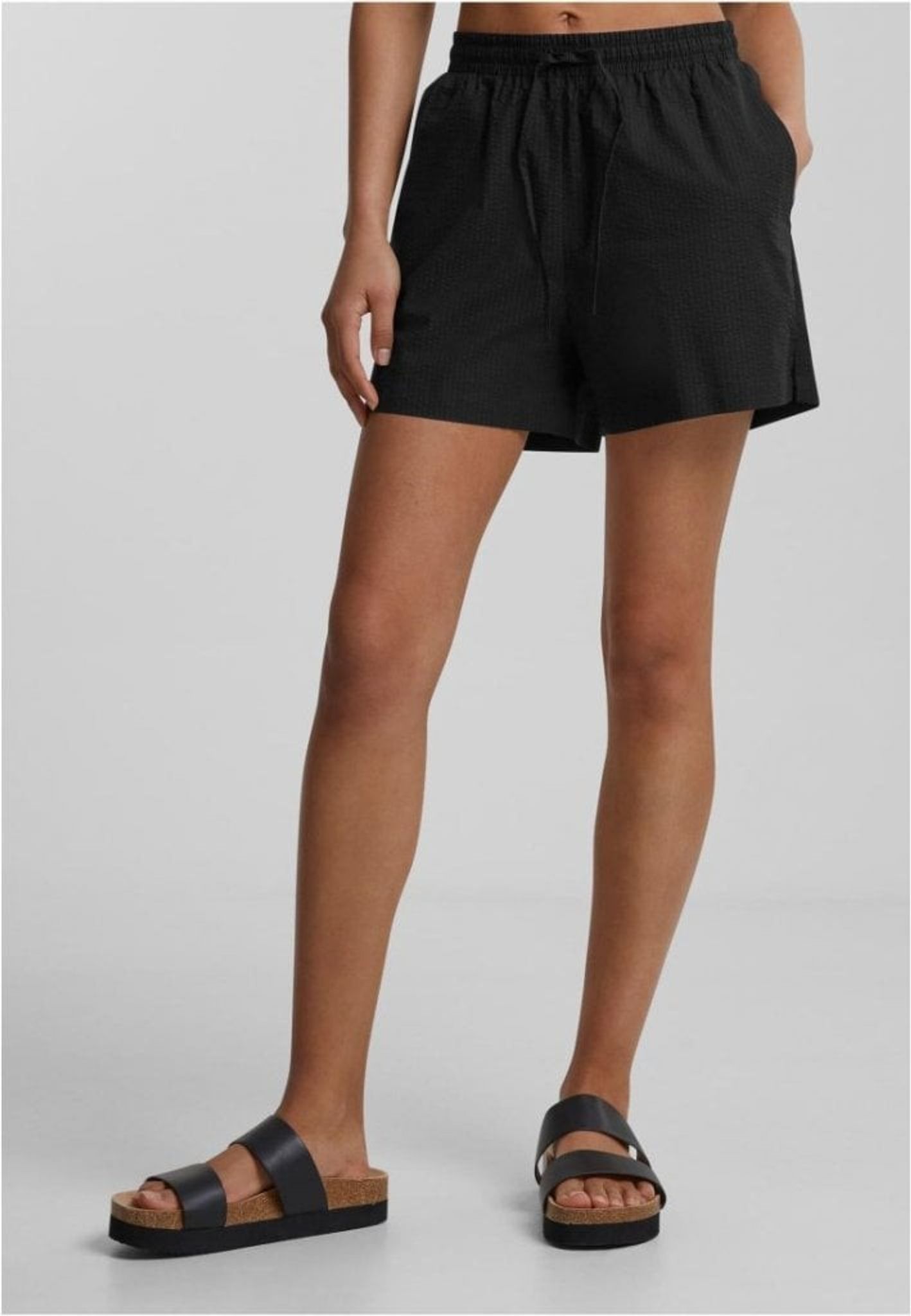 Den elastiske snøre i taljen sikrer en skræddersyet pasform, mens de praktiske sidelommer giver ekstra opbevaringsplads. Det monokrome design gør disse shorts til en alsidig beklædningsgenstand, der nemt kan kombineres med forskellige toppe.
