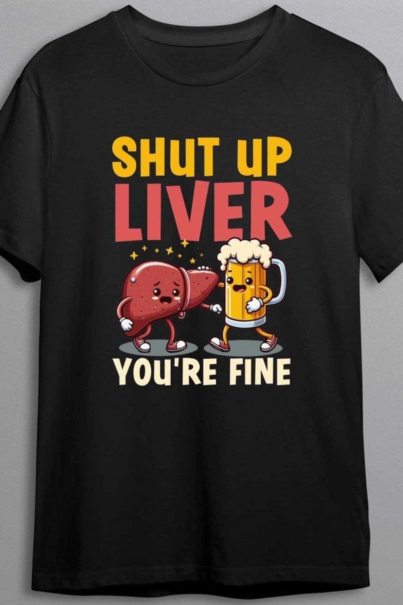 Leveren brokker sig, men hvem lytter egentlig? Med denne sjove T-shirt viser du, at du har dine prioriteter på plads – og en øl i hånden. Det tegneserieinspirerede design viser en bekymret lever, der forsøger at protestere, men bliver venligt, men bestemt, afvist af et glad og skummende ølkrus. Perfekt til after-work, pubture og enhver lejlighed, hvor grin og god stemning er velkomne.